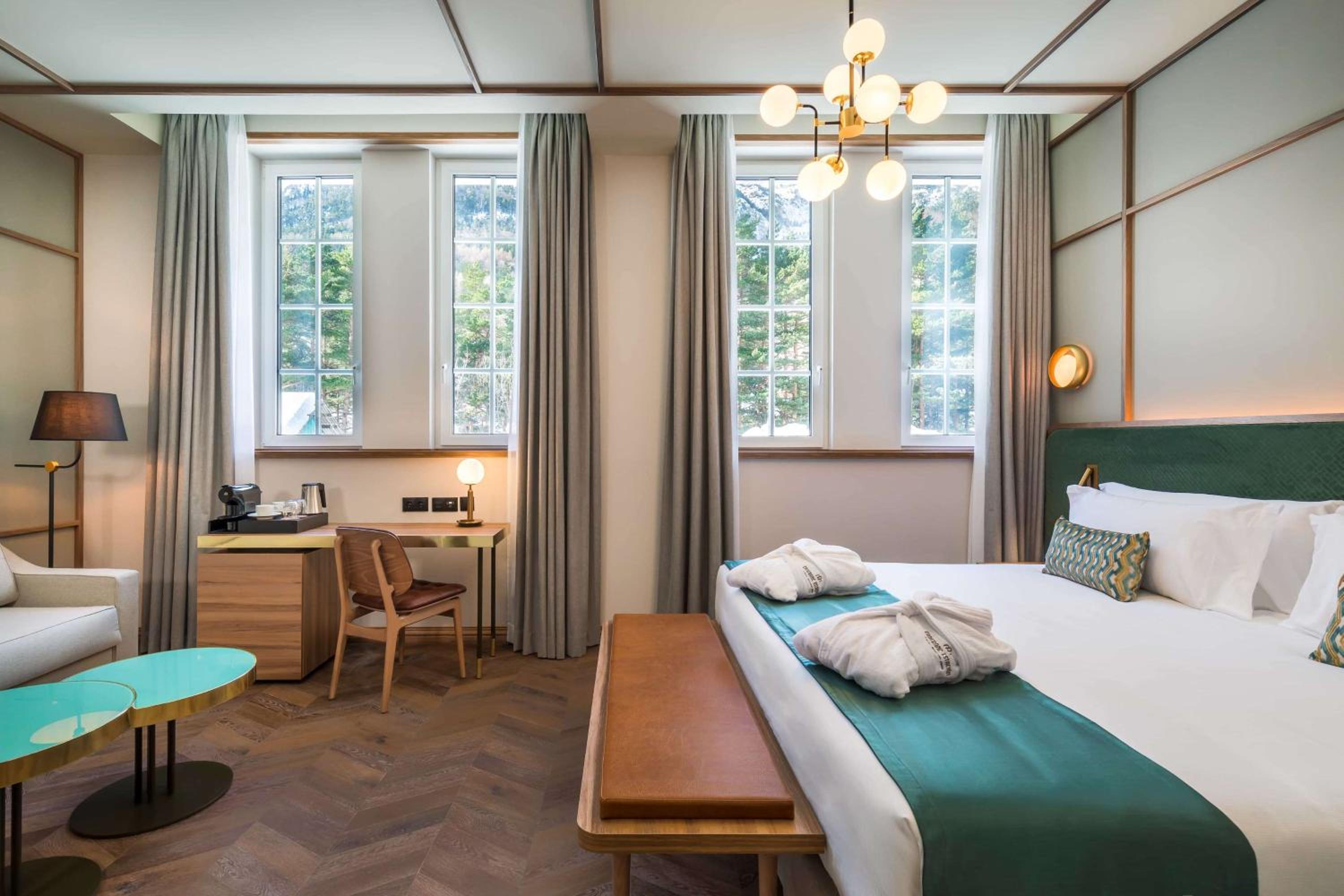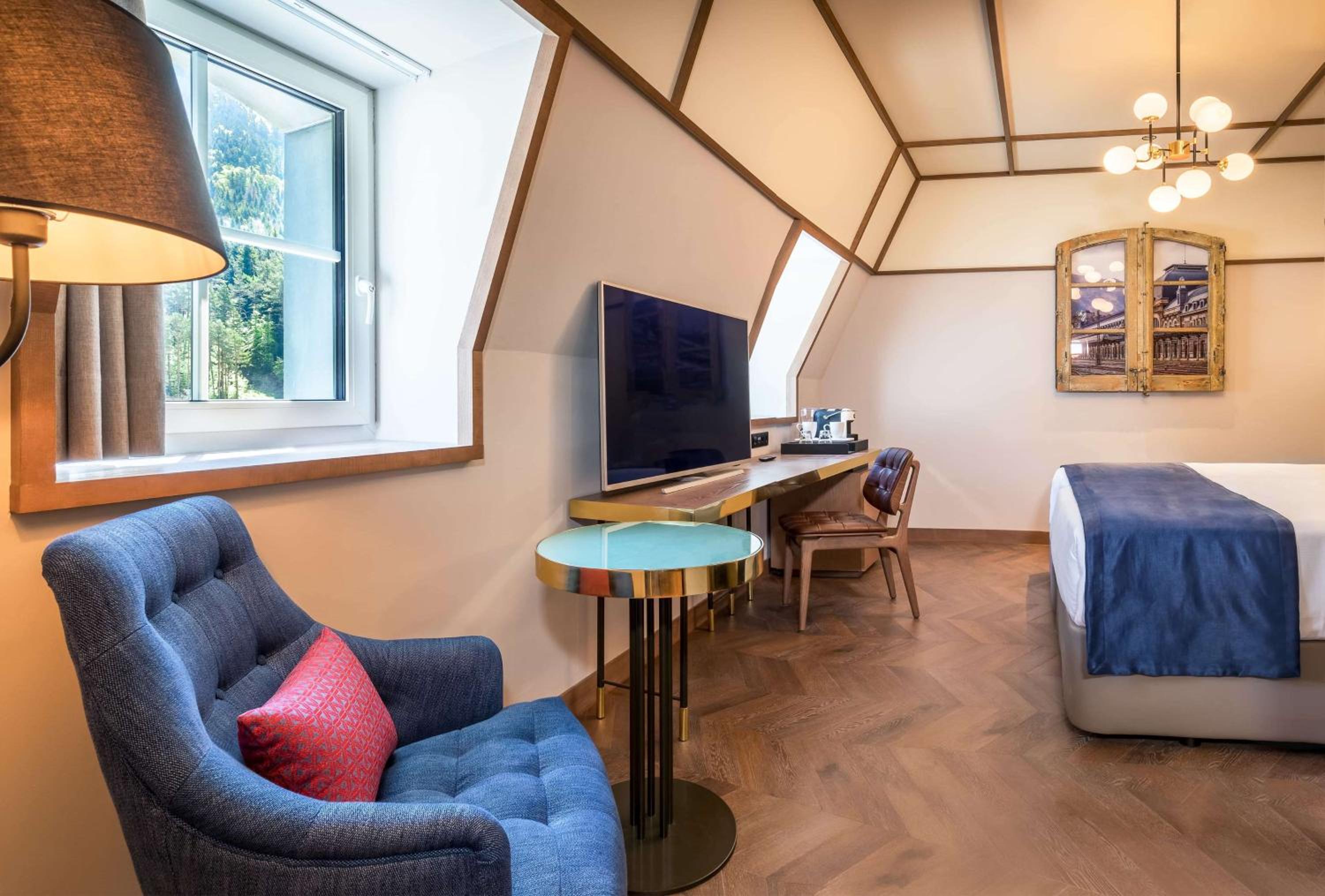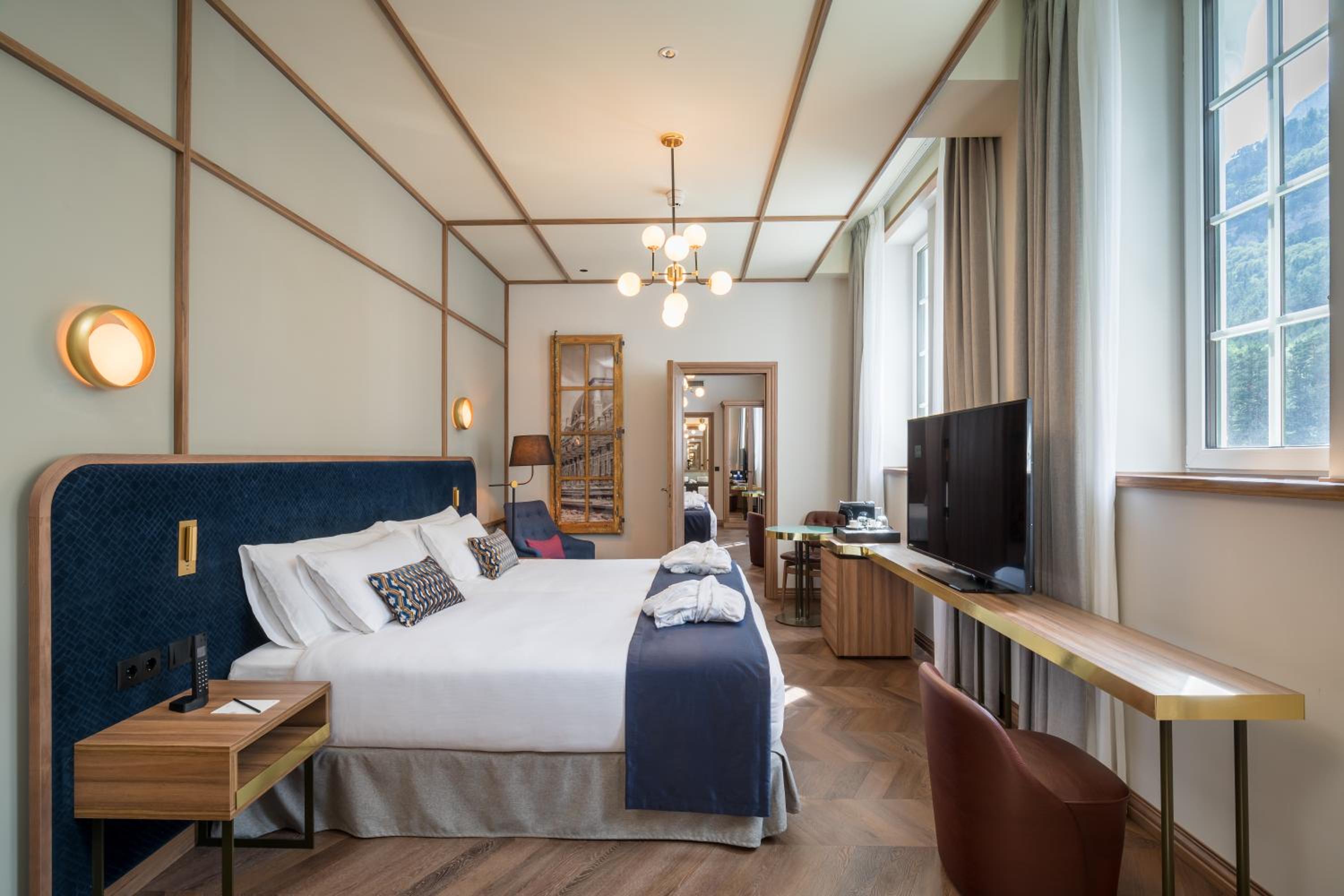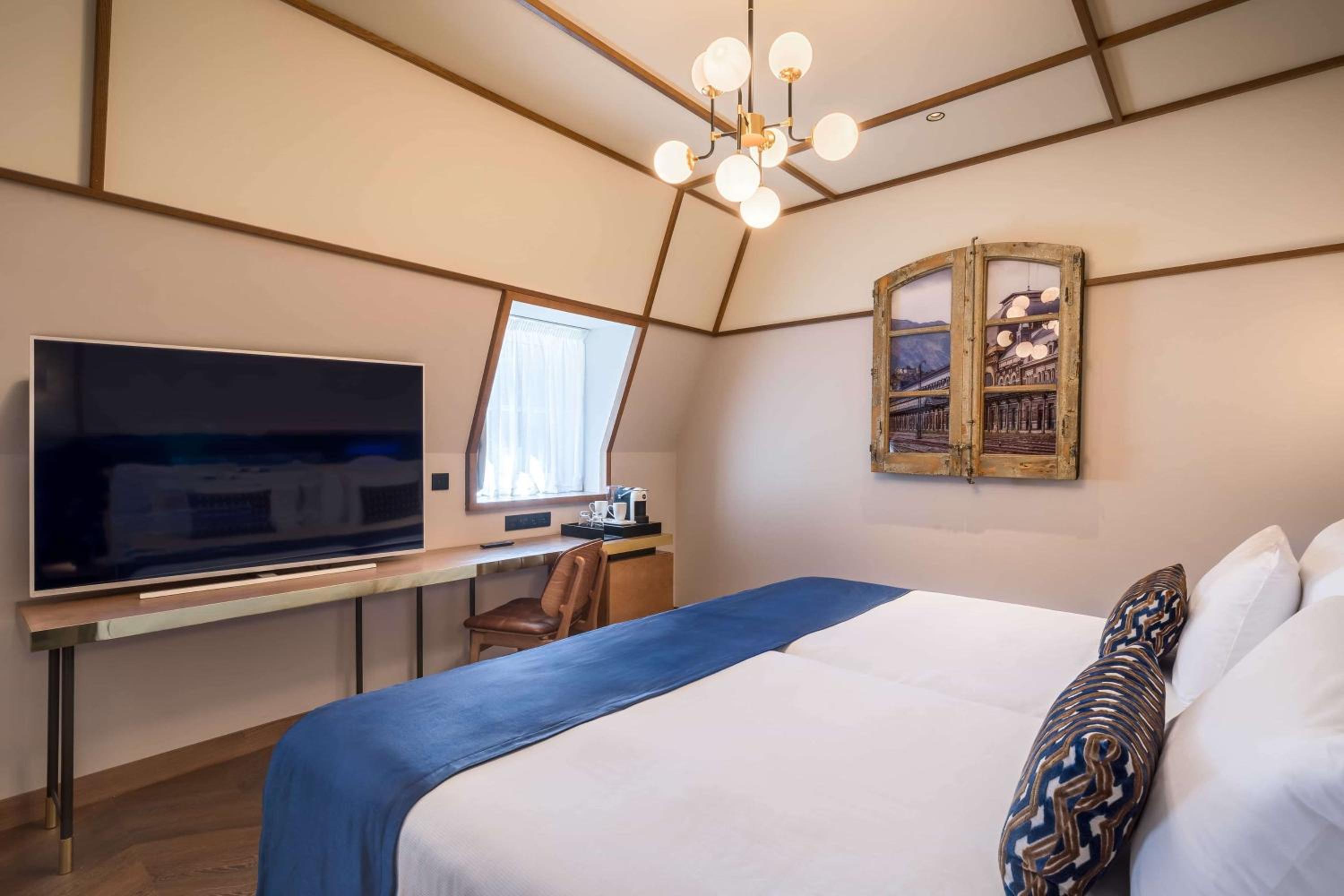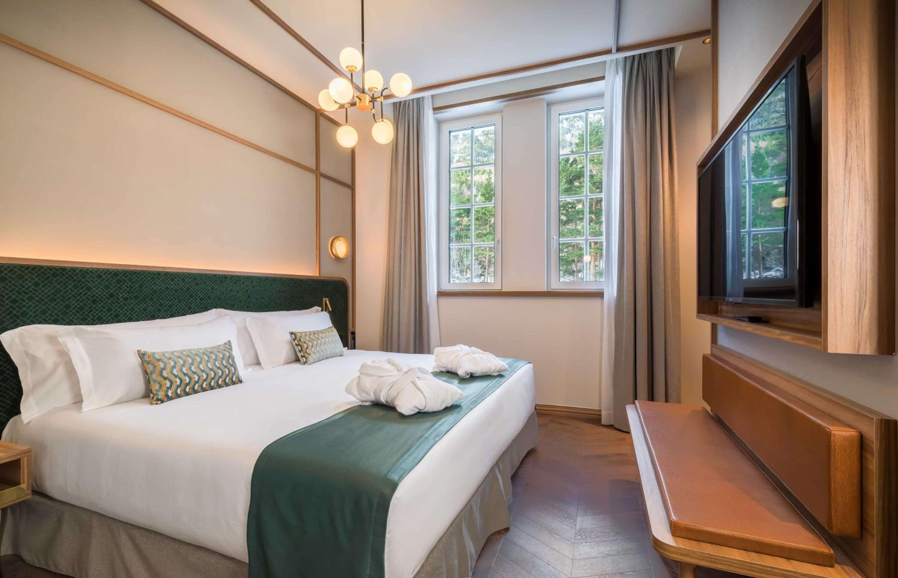 Indulge in 5-star luxury at Canfranc Estación, a Royal Hideaway Hotel - Gran Lujo. With air-conditioned rooms equipped with top-notch amenities, including a coffee machine and a flat-screen TV, your comfort is our priority.