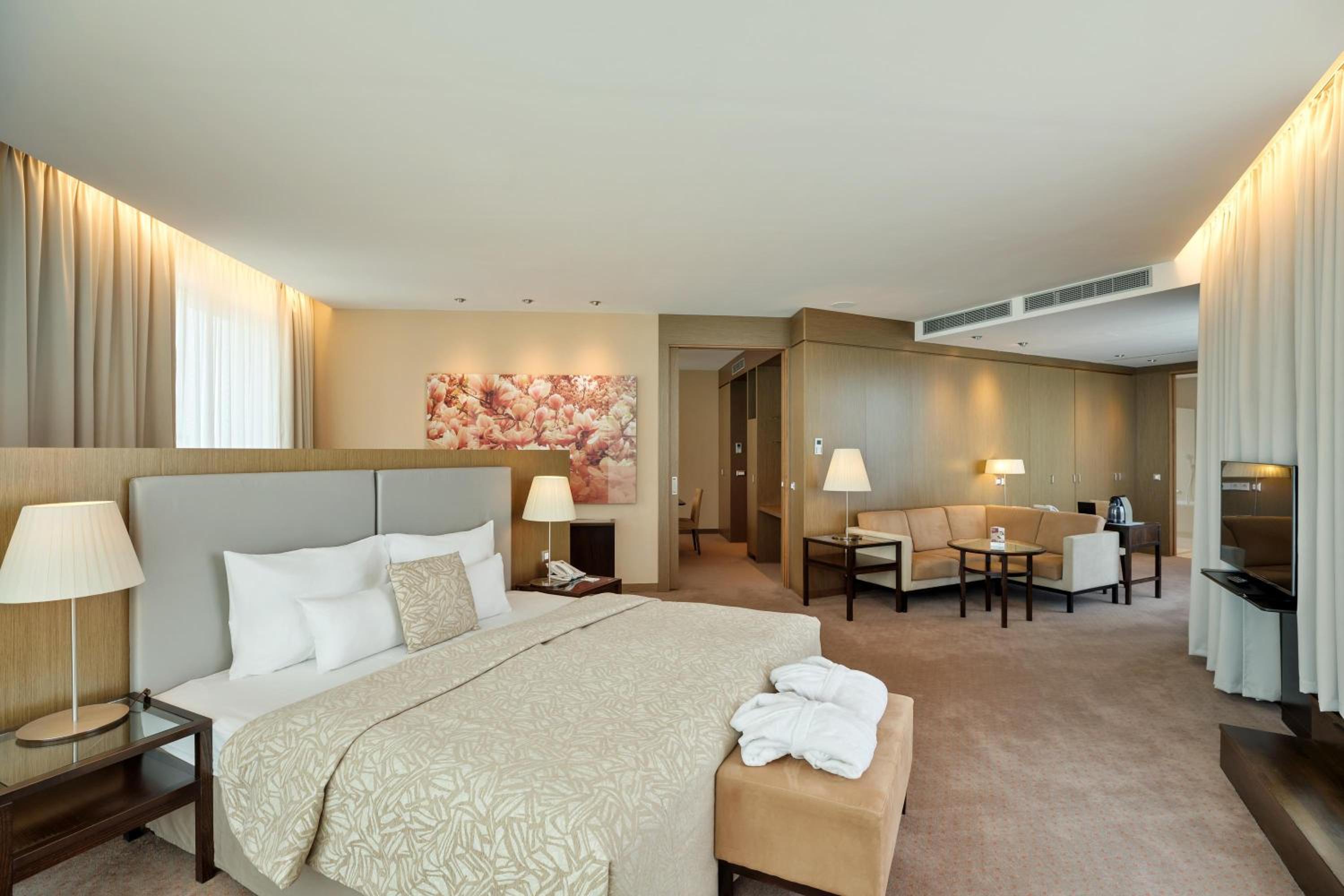 Indulge in spacious rooms at least 32 m² in size, equipped with individual air conditioning and a laptop-size safe. Relax in the generous bathrooms featuring a bidet for added comfort.