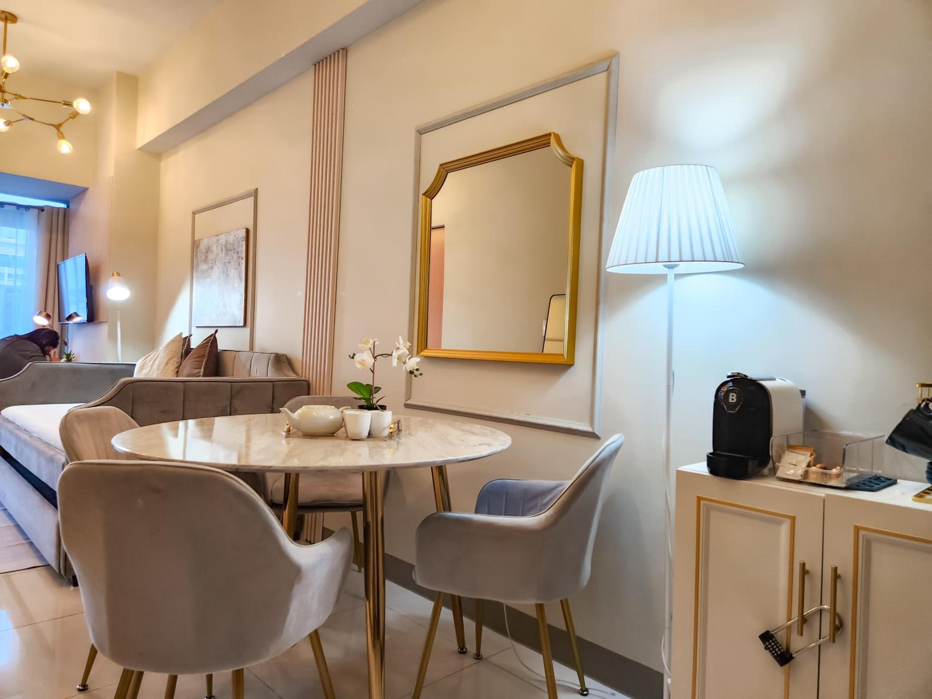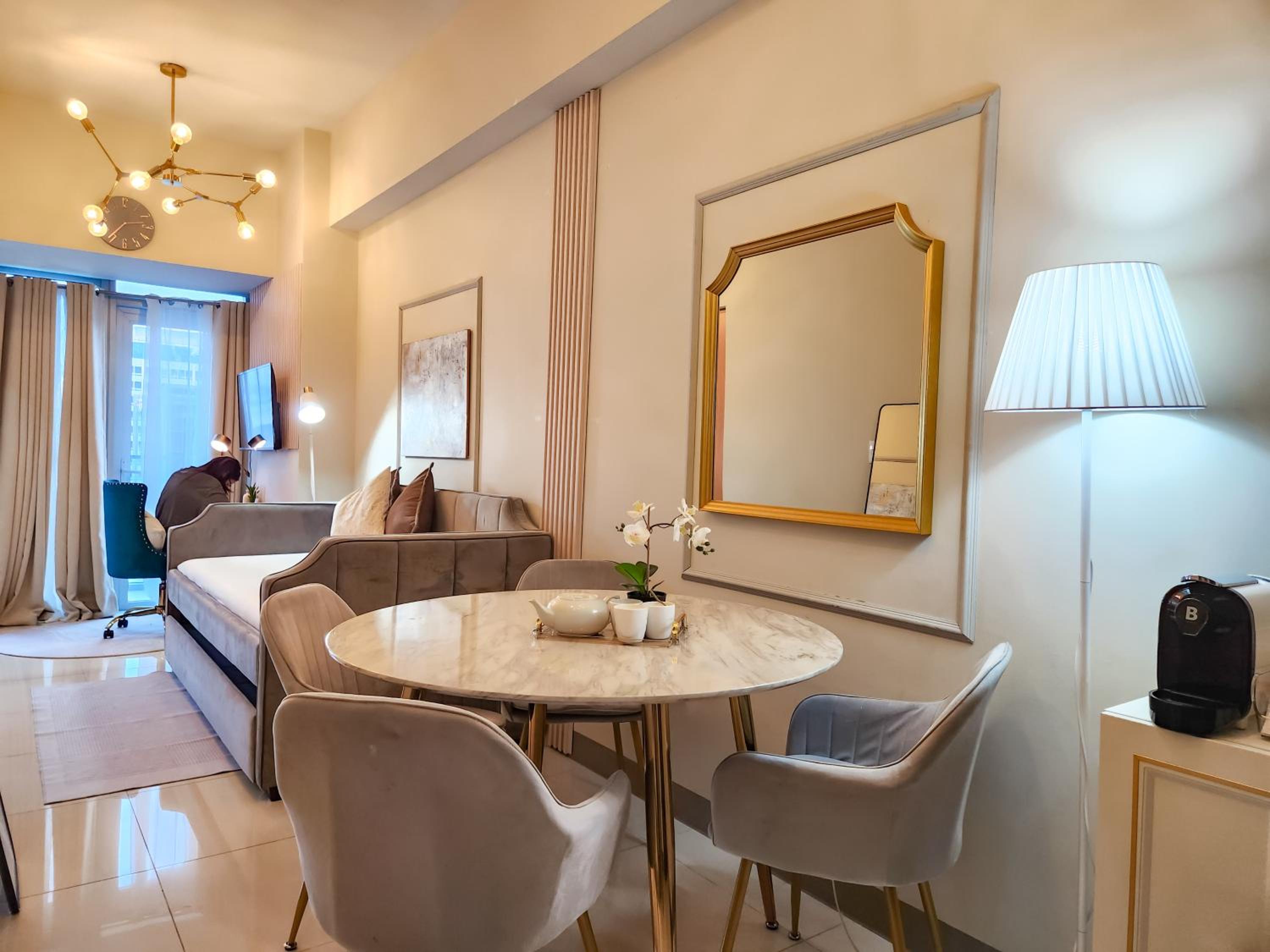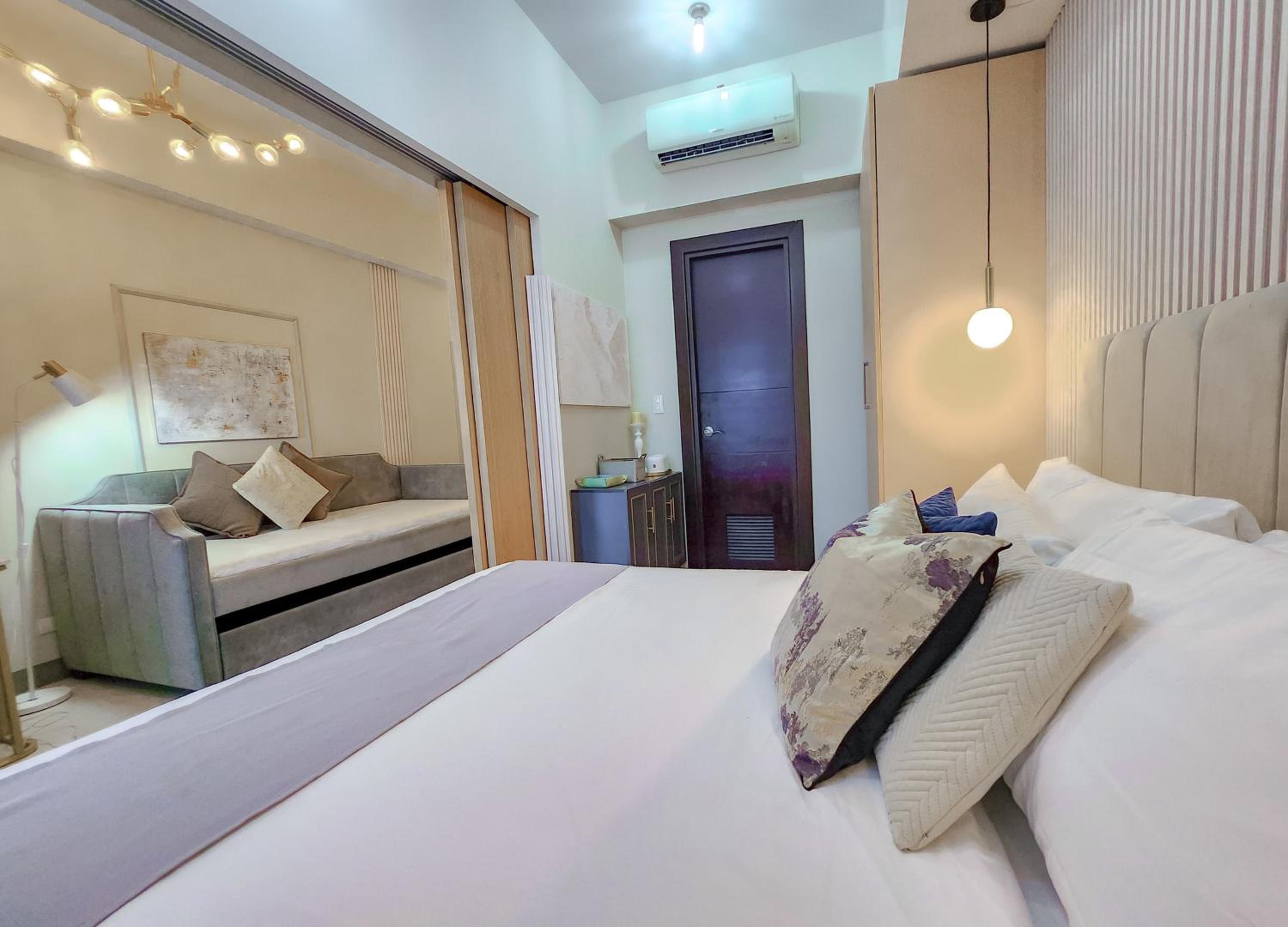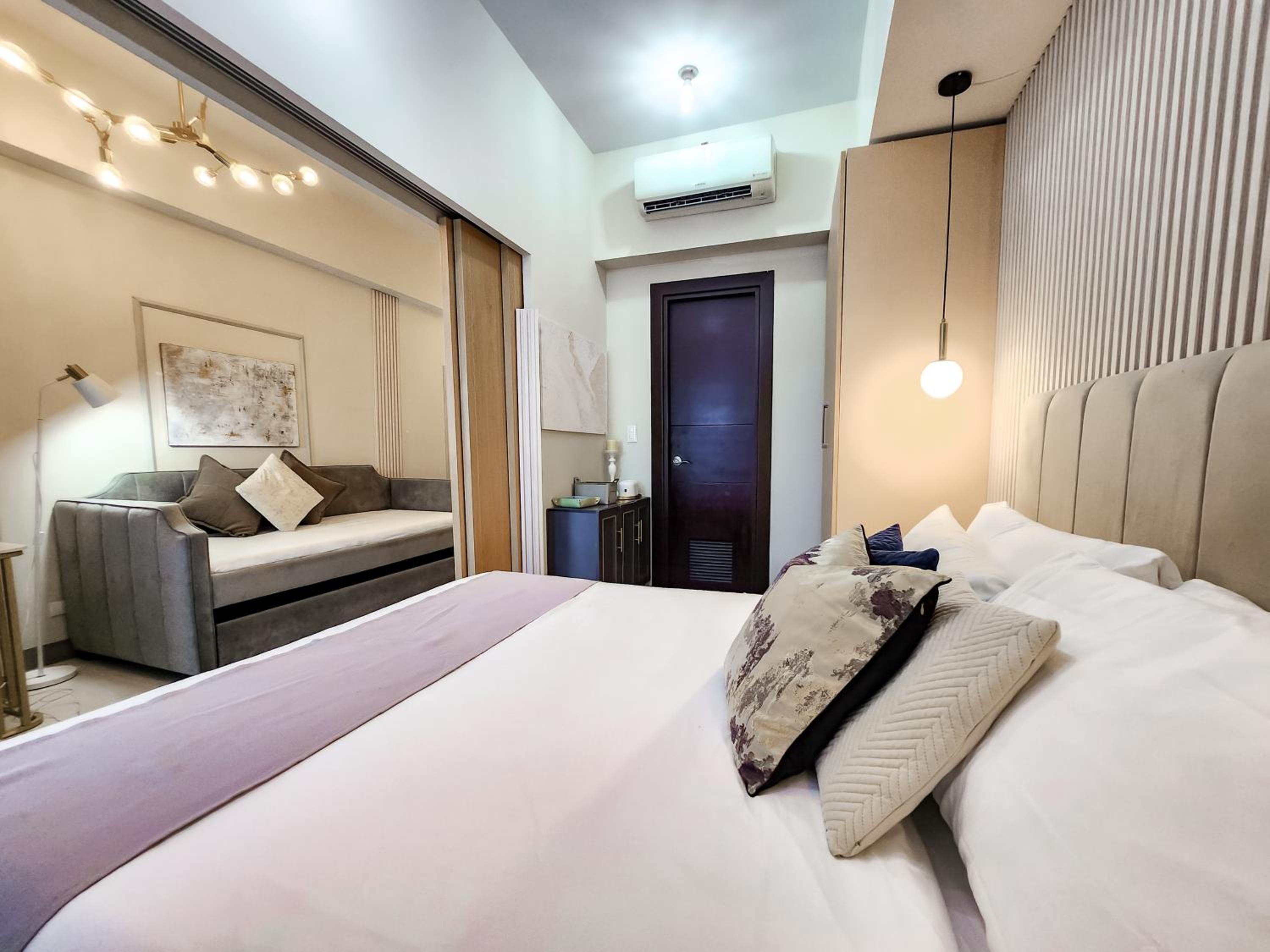 Indulge in luxury and convenience at LUXESTAYSMNL Parisian Charm 1BR Suite Pool Gym 400MBPS WiFi Netflix Amazing City View. Book now for an unforgettable experience!