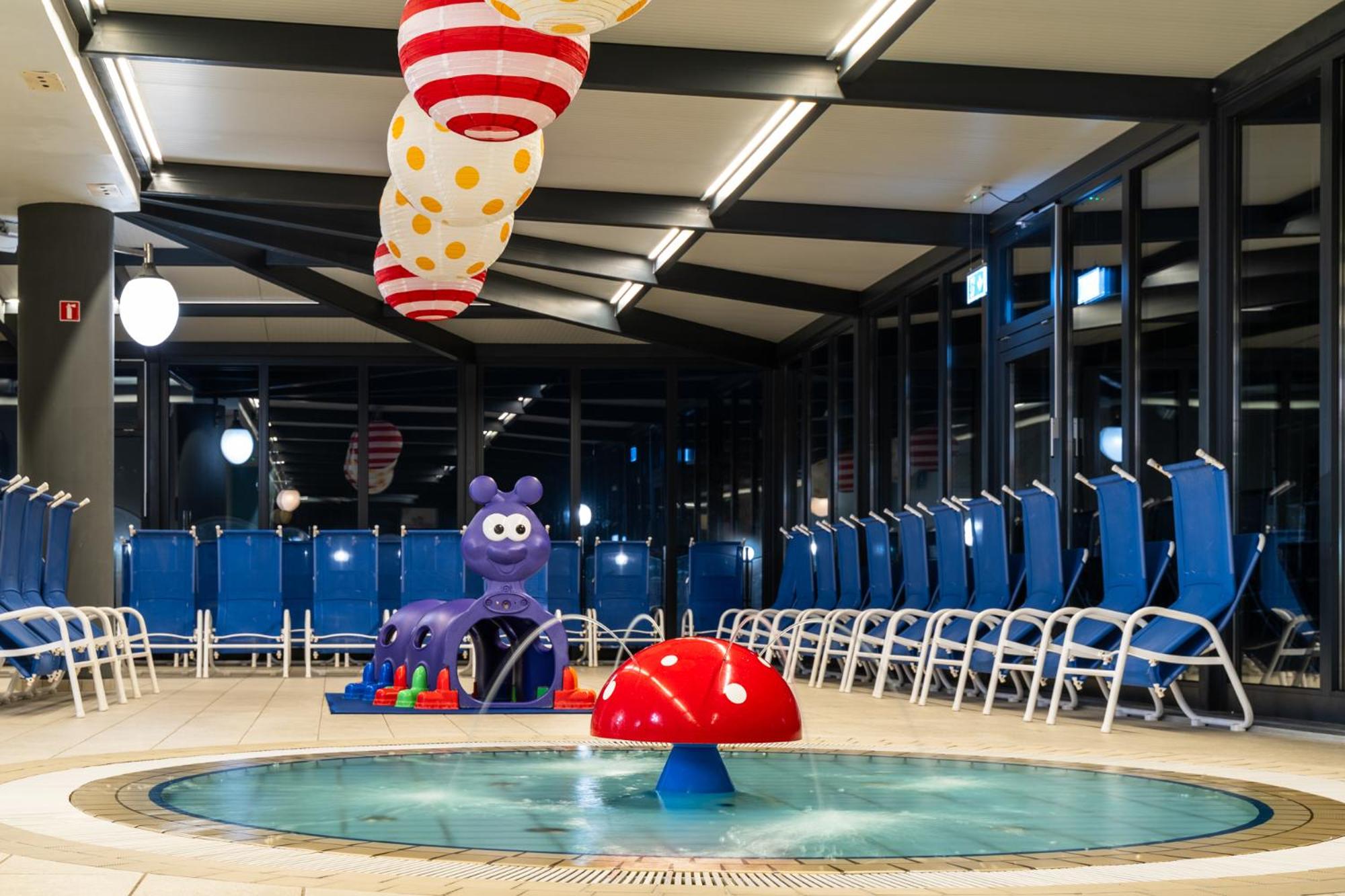 Guests can indulge in a variety of thermal water treatments at the wellness area, including herbal baths and different saunas. The indoor and outdoor swimming areas, along with the outdoor heated pool, provide relaxation. Children can have a blast at the water park and playgrounds.