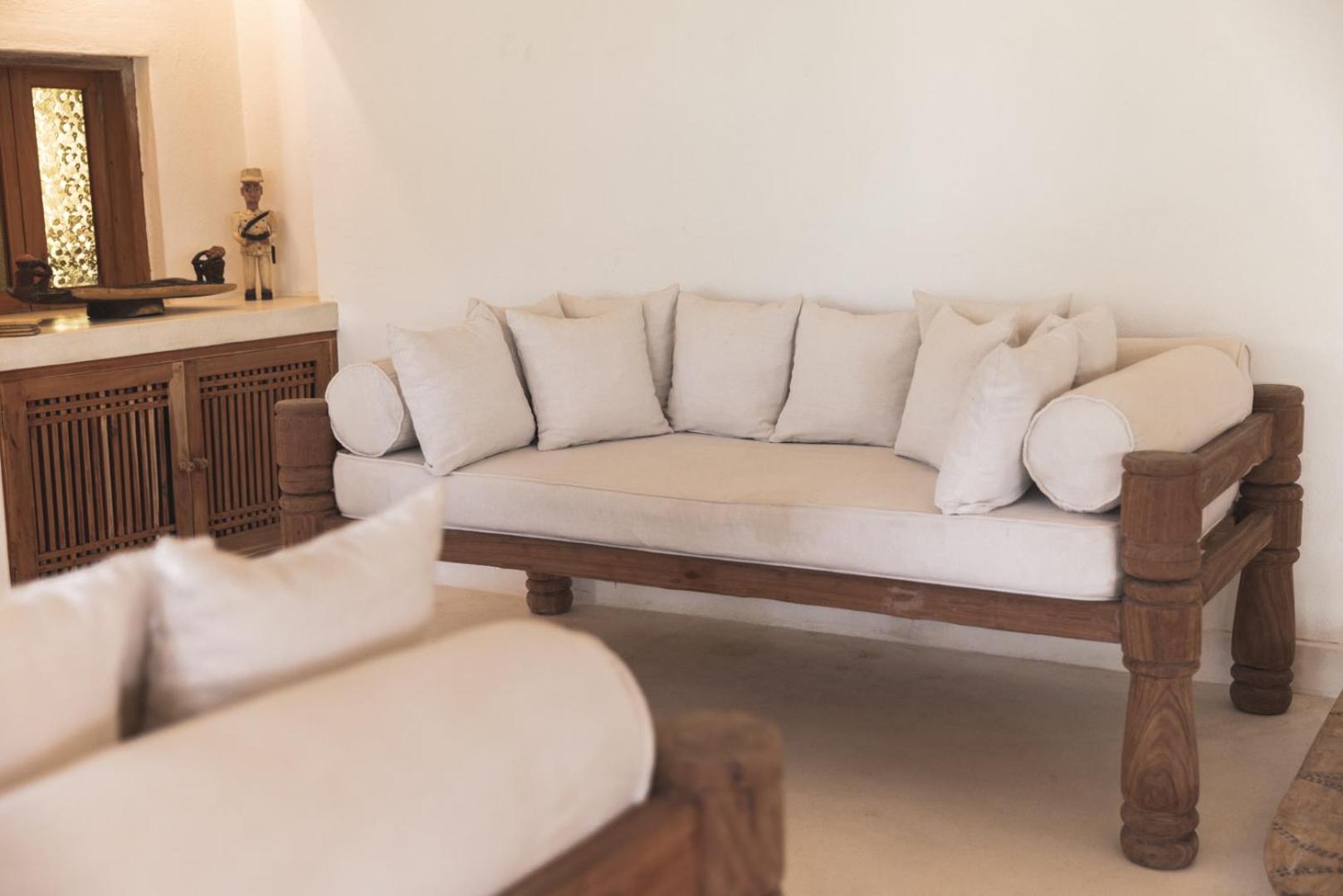 The room was very clean and bed was comfortable. The kitchen staff were amazing- excellent breakfast (with real coffee) and they cared very much about providing high quality service. The outdoor area was very pleasant for chilling. They provided filtered drinking water which is appreciated. There are a few restaurants along the beach which are about 20 minutes walk. Easy to get boda boda on the main road to get to town.