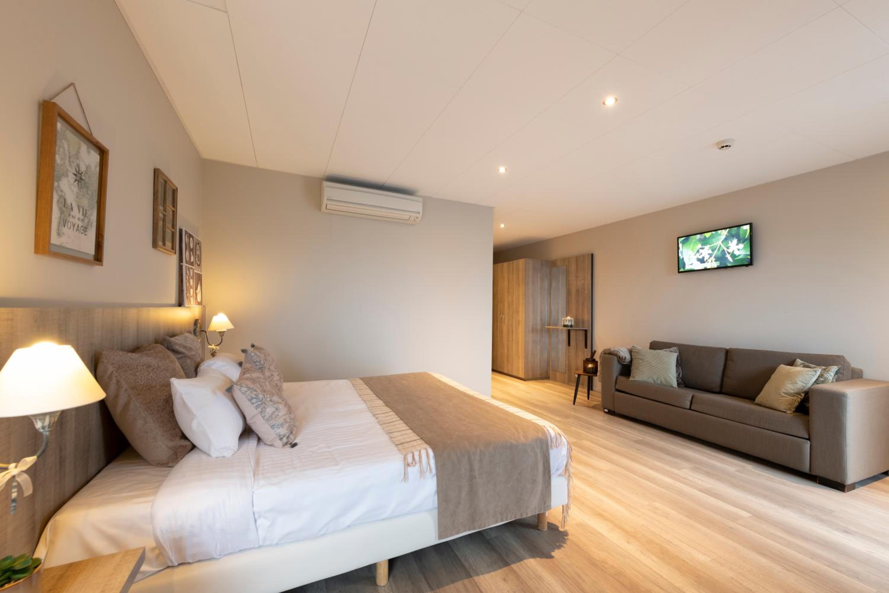 Nous avons déplorer le lit double qui se séparait à tout moment ce qui rendait notre repos inconfortable essayez de trouver une solution pour y remédier