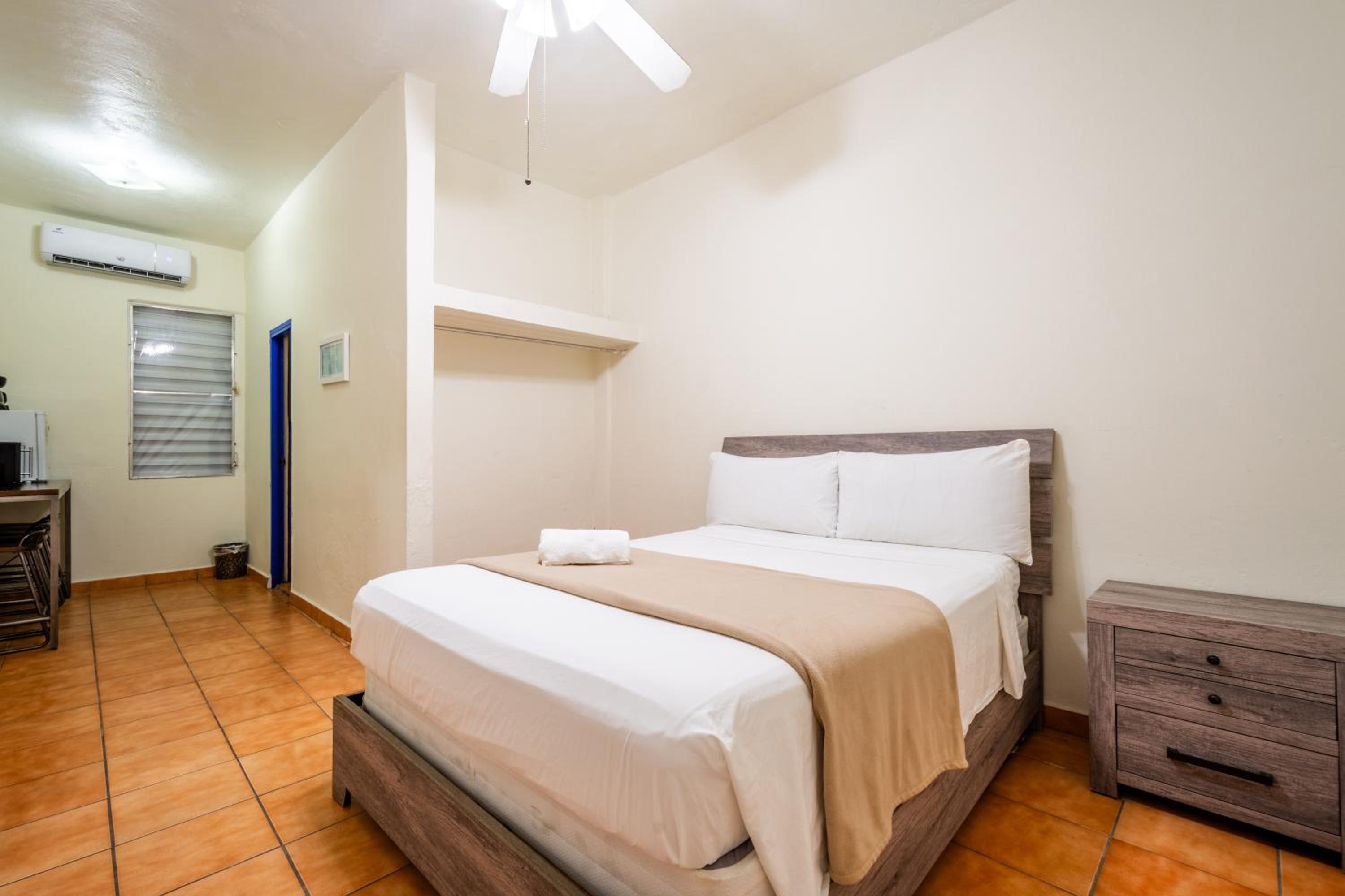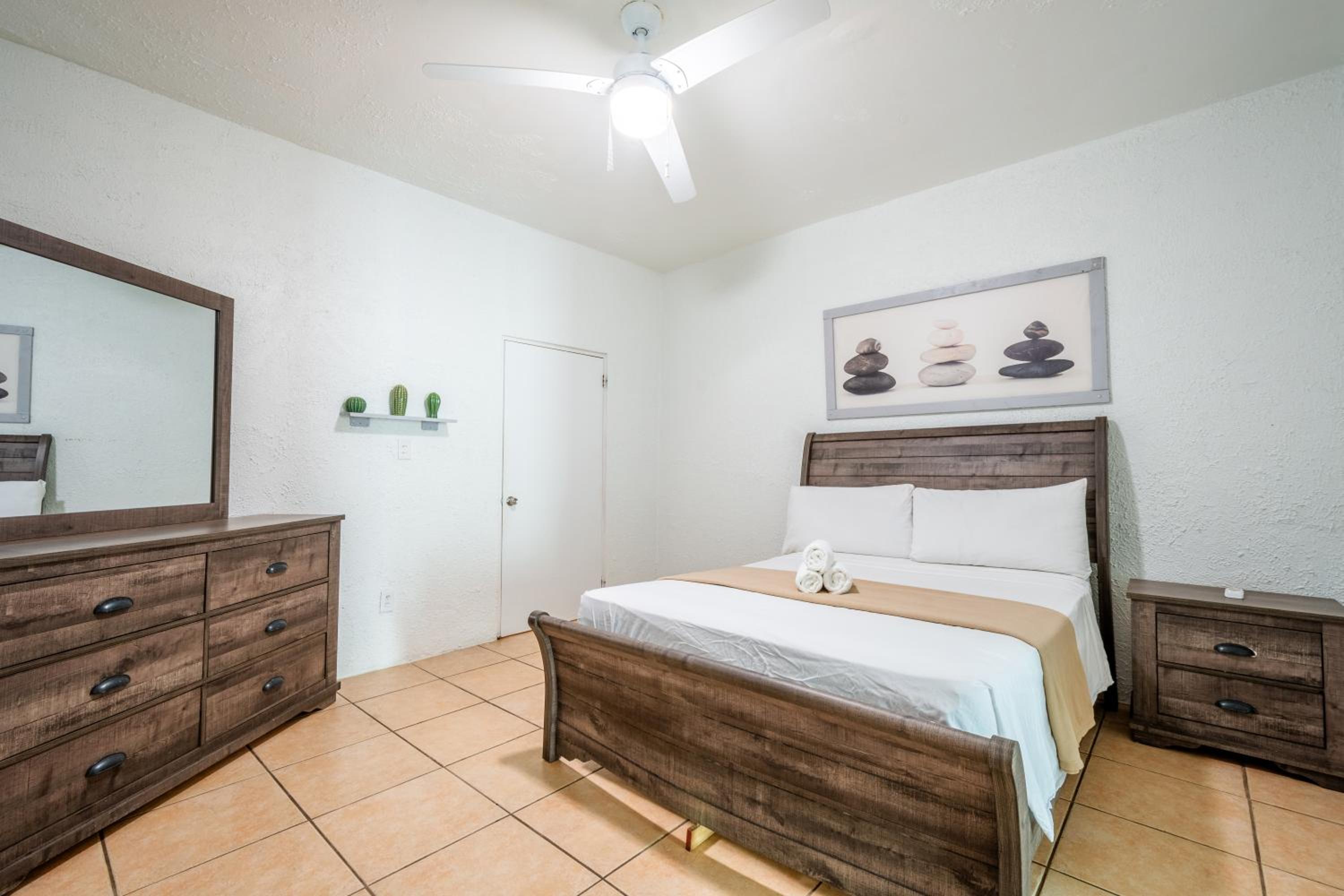 The pool had black mold all over it. It needs to be properly treated & cleansed. The main reason we stayed was for the pool and we couldnt even enjoy it. The bed was not comfortable. Too much light got in the room. & bugs were coming in from front door since it has an opening at the bottom.