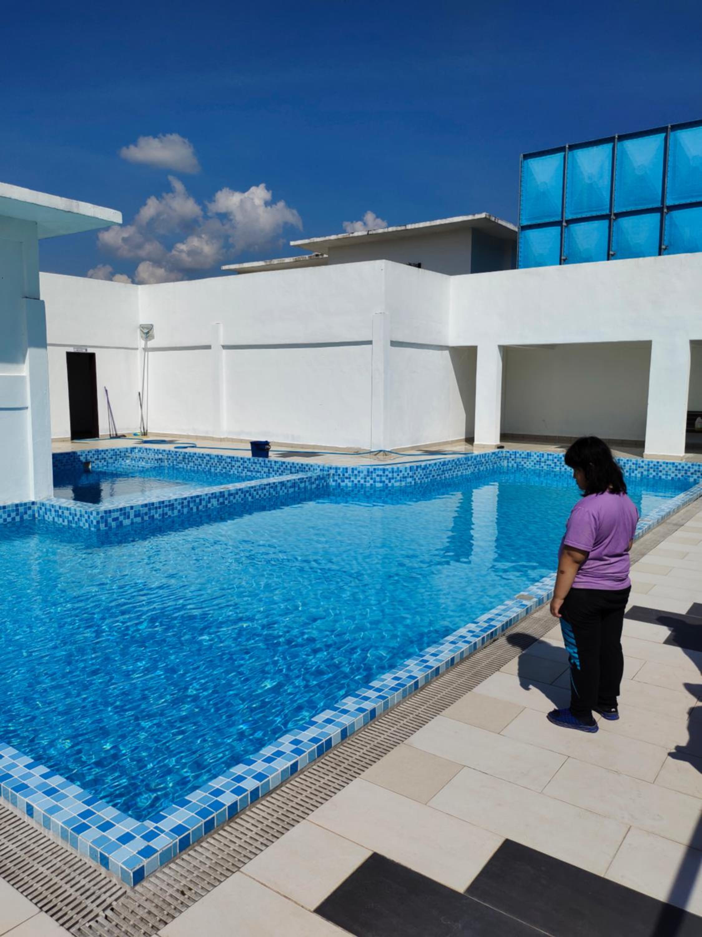 The pool looks creepy. To get to it, one needs to pass through the top floor which looks abandoned, is very dirty and looks very bad.
