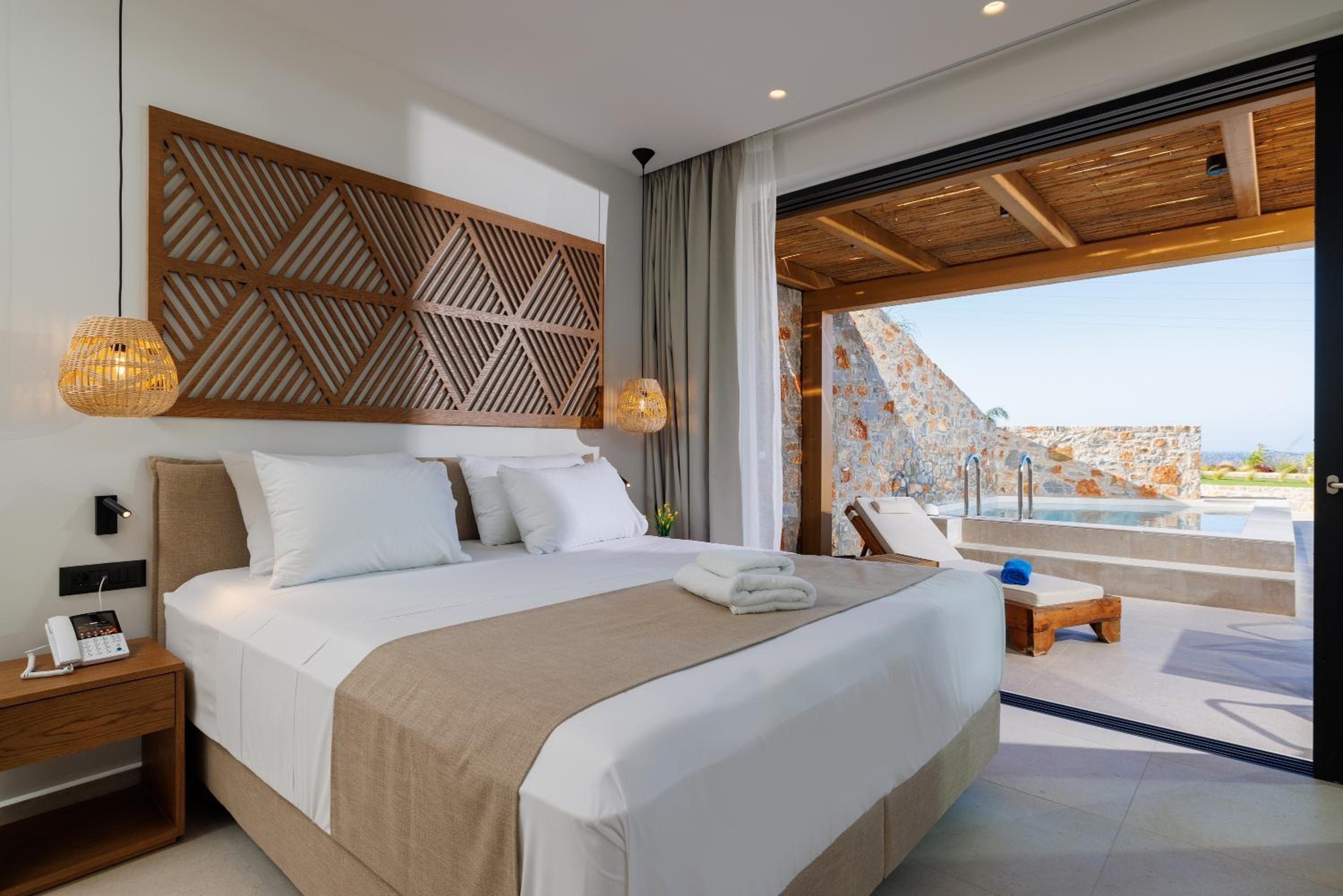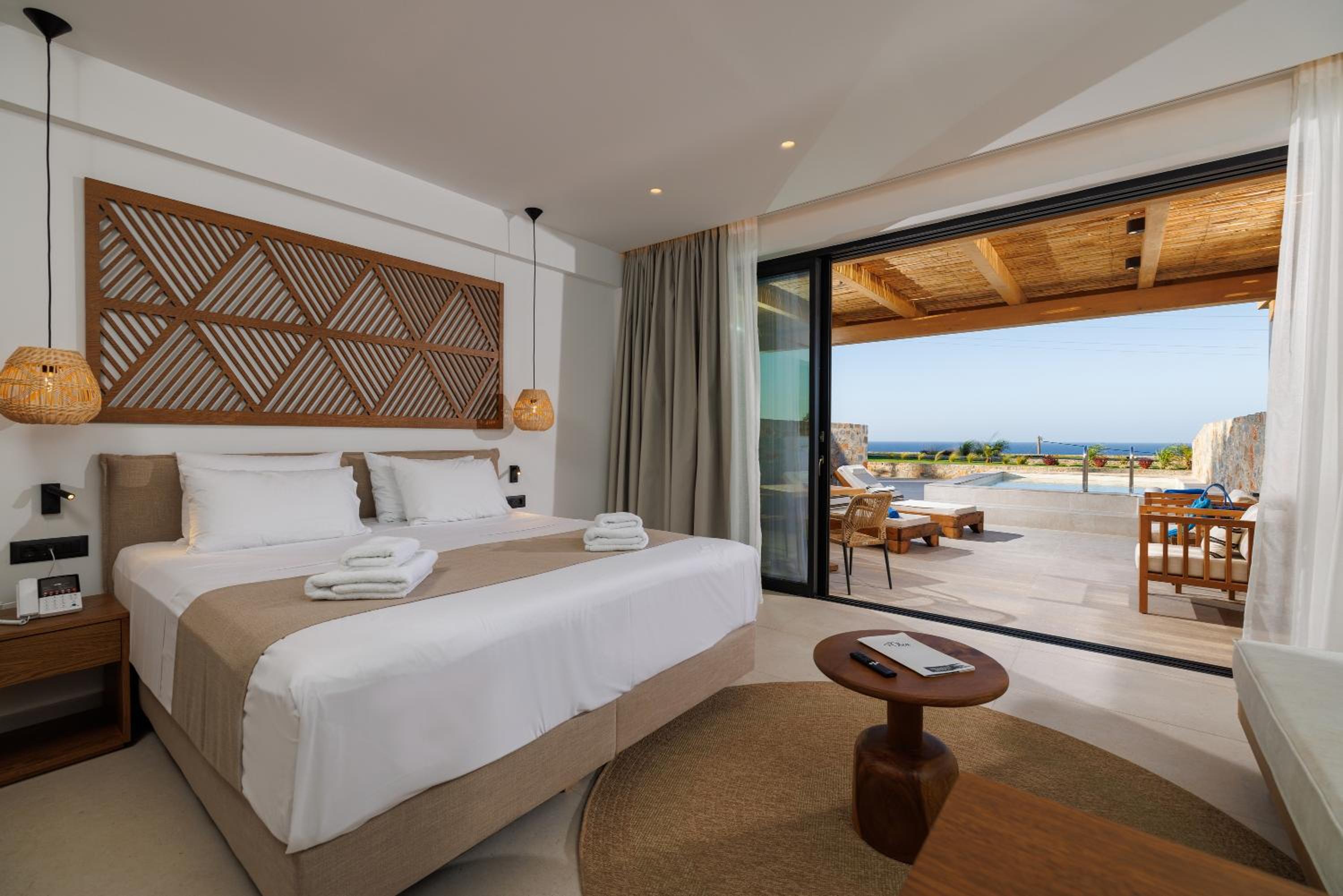 Indulge in air-conditioned rooms with modern amenities, private terraces, and stunning pool views. Some rooms even offer breathtaking sea views for a truly unforgettable stay.
