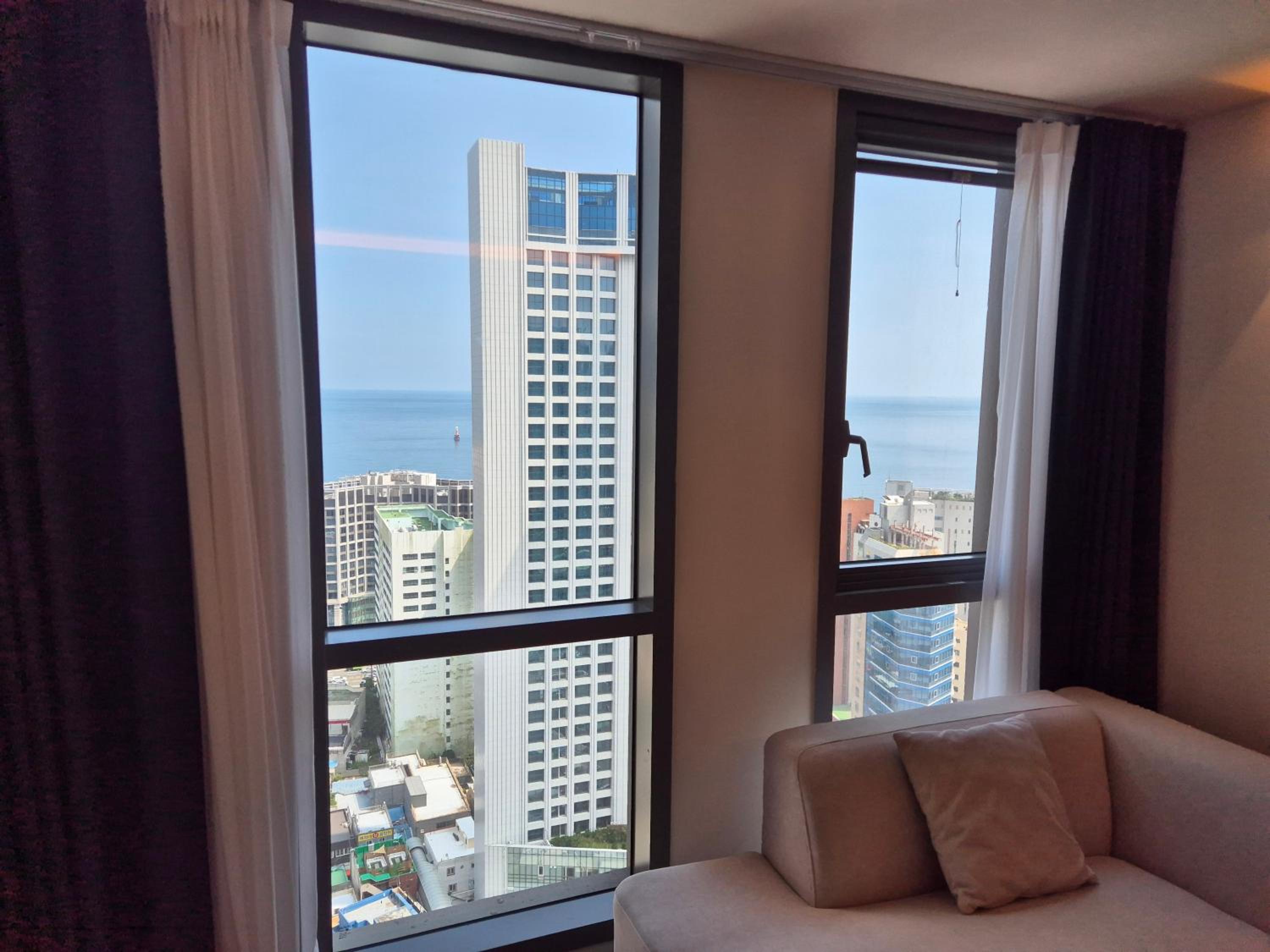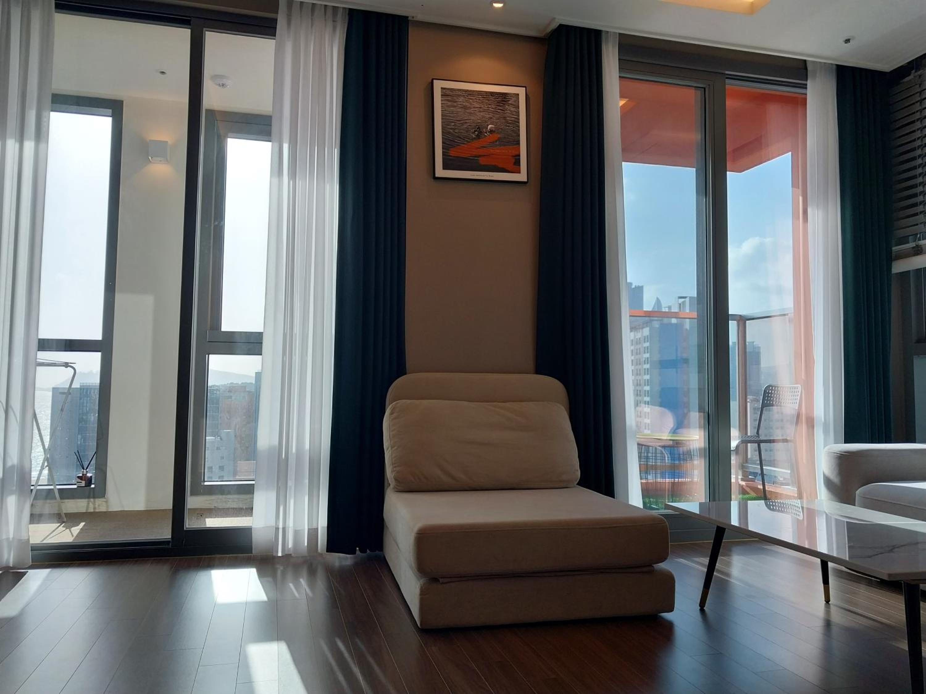 我們這次入住31樓,景色絕佳的陽台,令人驚艷,從清晨、白天到夜晚都能俯瞰美麗的海雲台