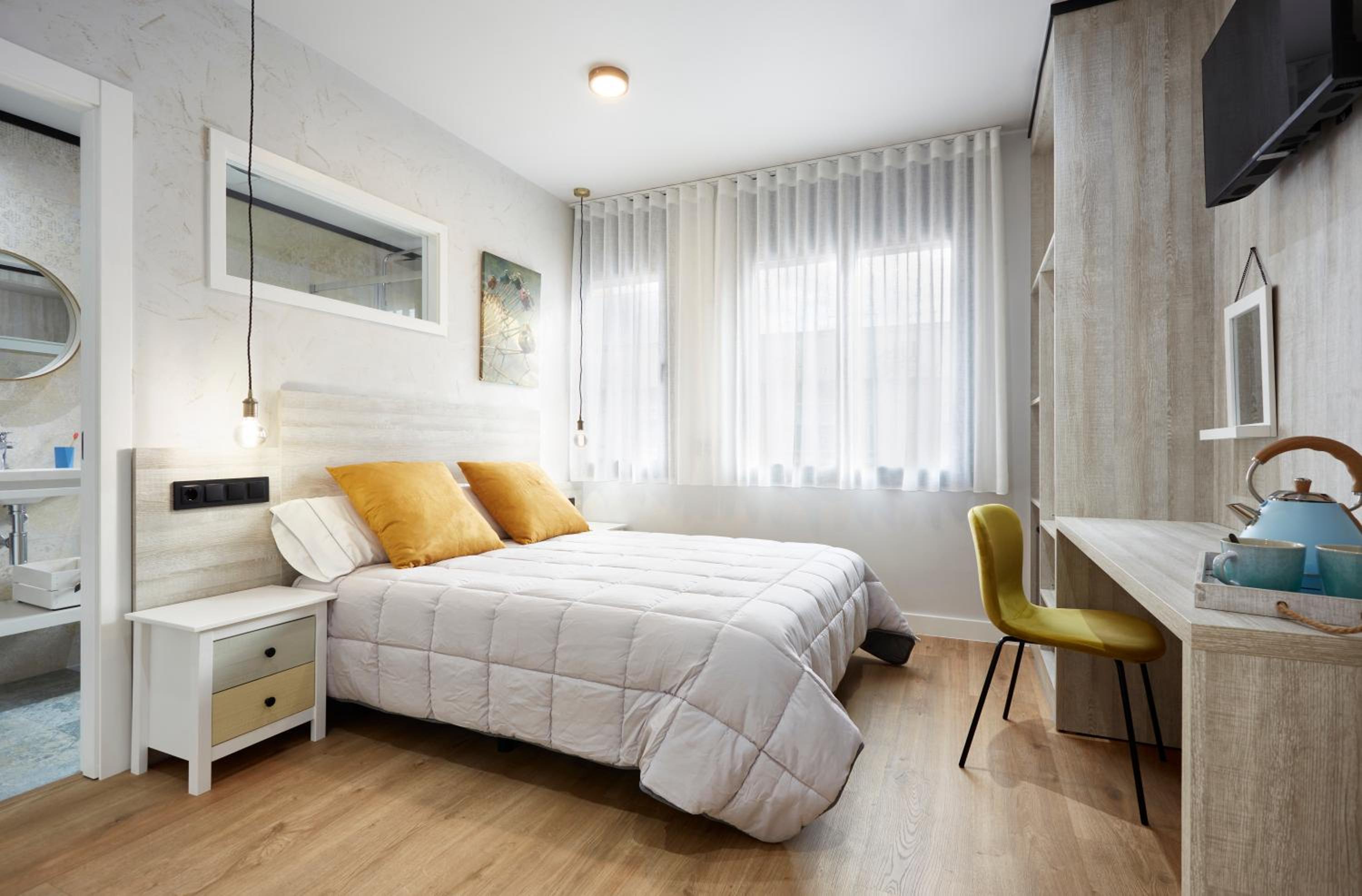 Decoración sencilla pero preciosa, no le falta ningún detalle. Todo muy práctico y limpio. Muy cerca del centro.