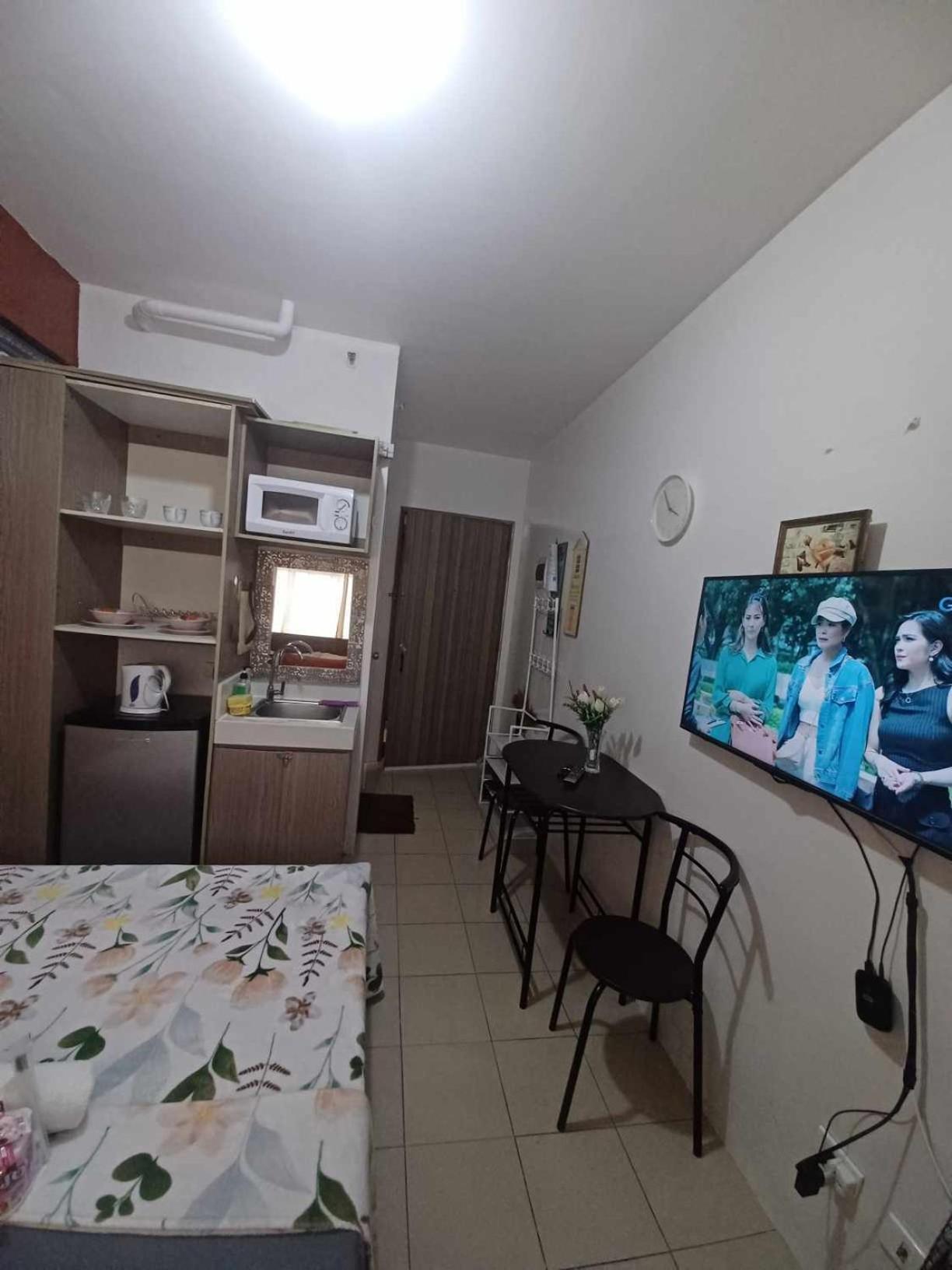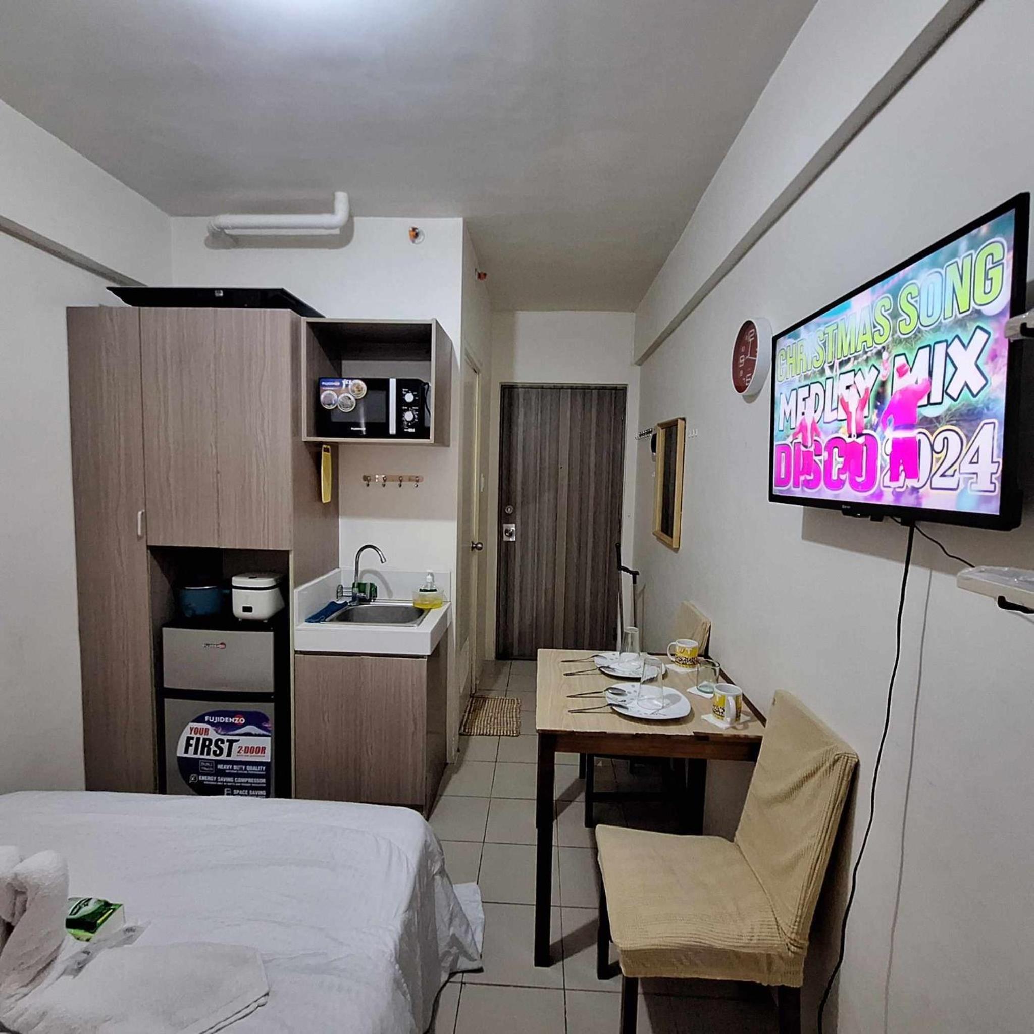 The unit is 100% different from the picture. Unclean floors, cabinet, broken microwave, the refrigerator is the very small one and can’t even keep foods for 2 people