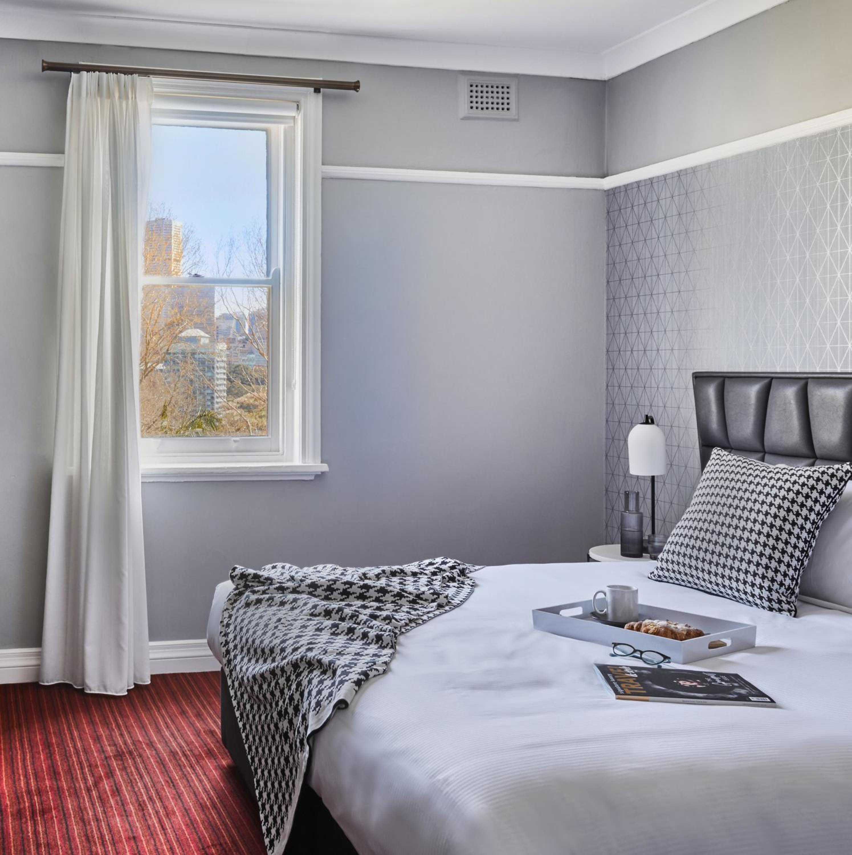 This is a very nicely updated older hotel, with fresh paint and a nice ambiance. It is in easy walking distance to Kings Cross station and shops and pubs. There's a Harris Farms across the road. I particularly liked the little cafe on the ground floor sitting there under trees with lovely gentle music was great.