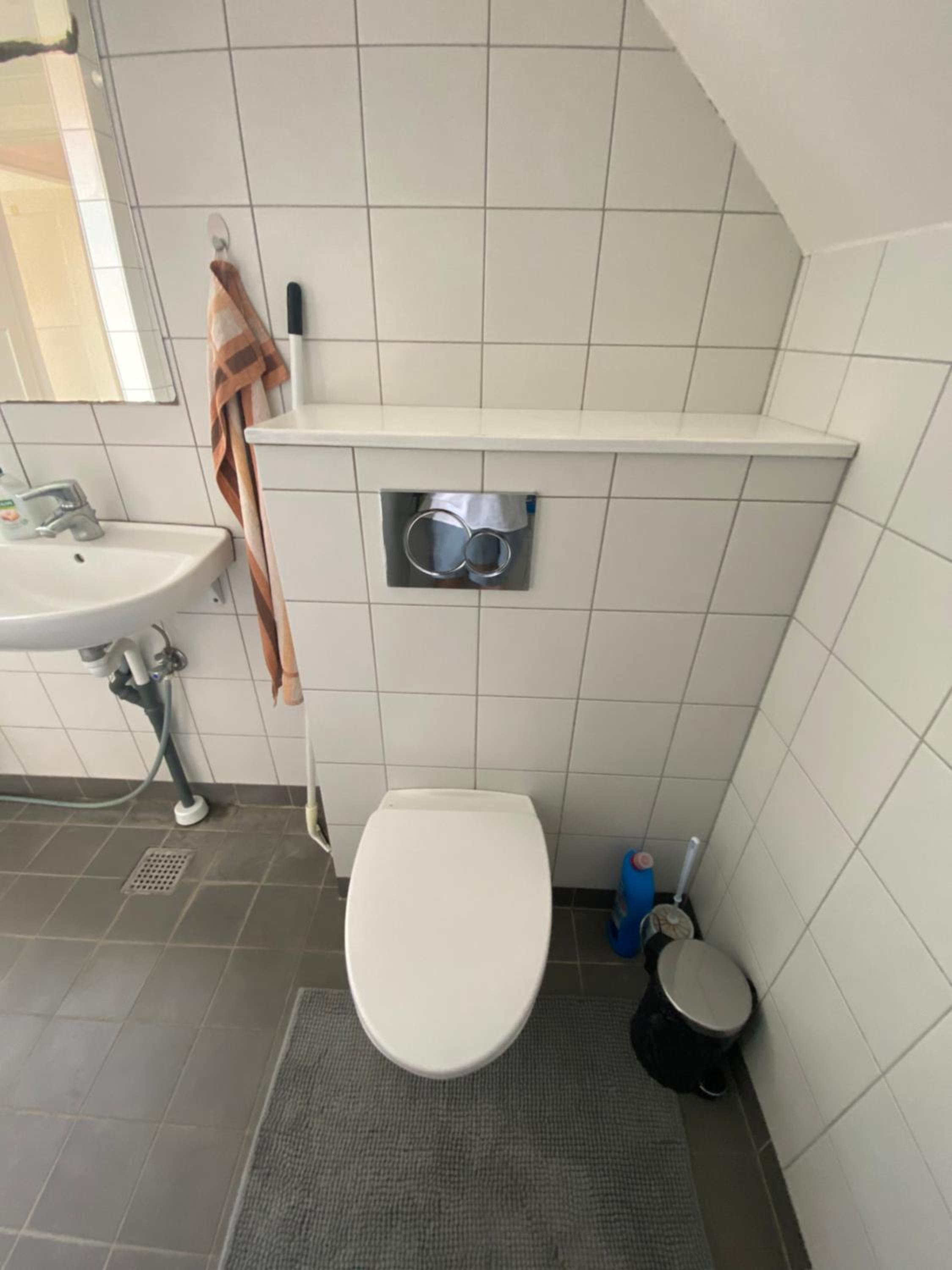 Der var vand over alt på gulvet efter et bad og meget begrænset tryk på vandet, så det tager en krig at vaske hår.