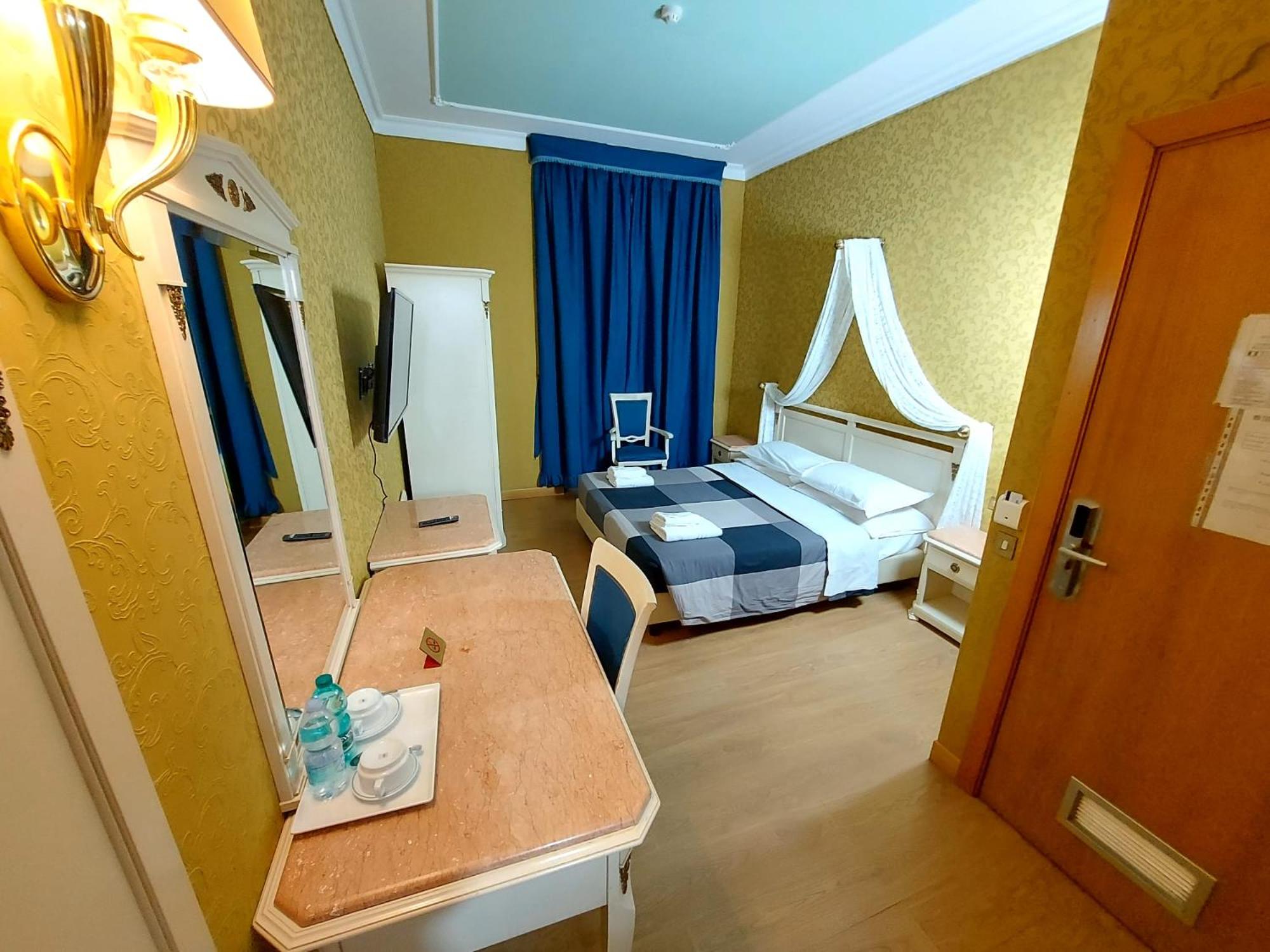 Κεντρικότατο ξενοδοχείο δίπλα στο σταθμό terminine παλιό το κτίριο αλλά δεν θα τα αγοράσεις κιόλας σημασία έχει τα δωμάτια ήταν καθαρά.Ιδανική τοποθεσία για εξορμήσεις από εκεί.Ολα τα μέσα μεταφοράς στα 300 μέτρα