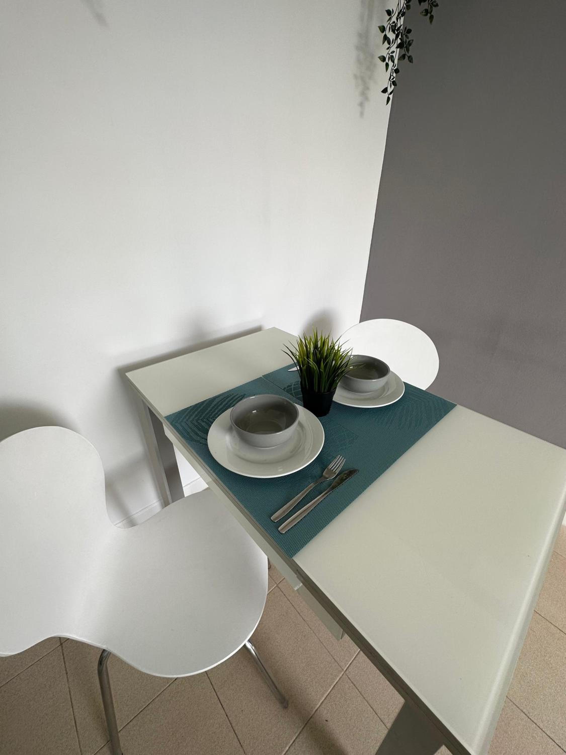 Balkon od wschodu, więc słoneczko od rana, zawsze było miejsce do zaparkowania. Mały apartament, ale dla dwóch osób w sam raz. Niedaleko od lotniska, na czym nam zależało, więc nie można mieć pretensji że słychać samoloty