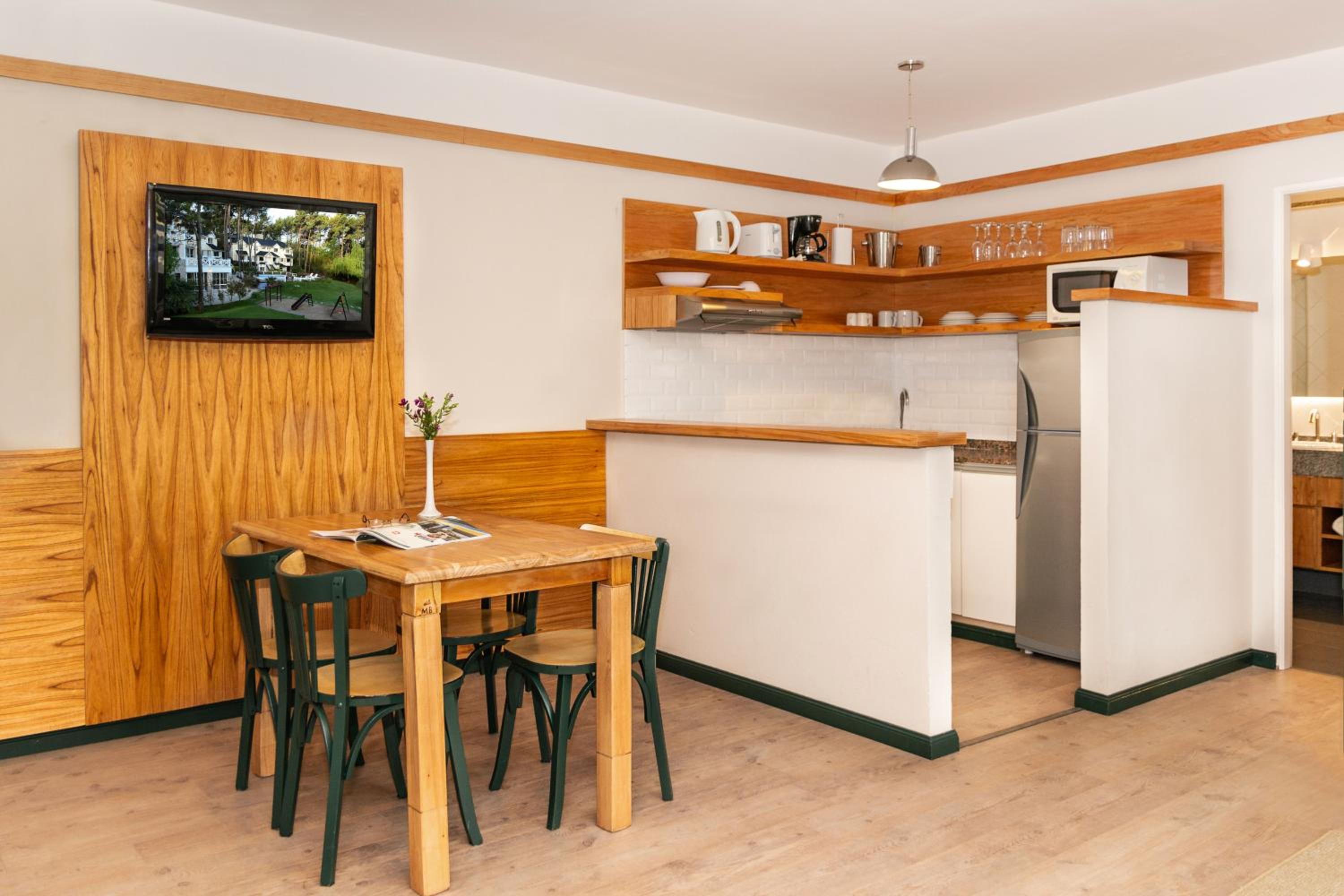 Miradores del Bosque Apart & Spa offers a range of luxurious amenities, including an indoor pool, hot tub, and full-day security. Guests can enjoy air-conditioned units equipped with modern conveniences such as a coffee machine, microwave, and flat-screen TV.