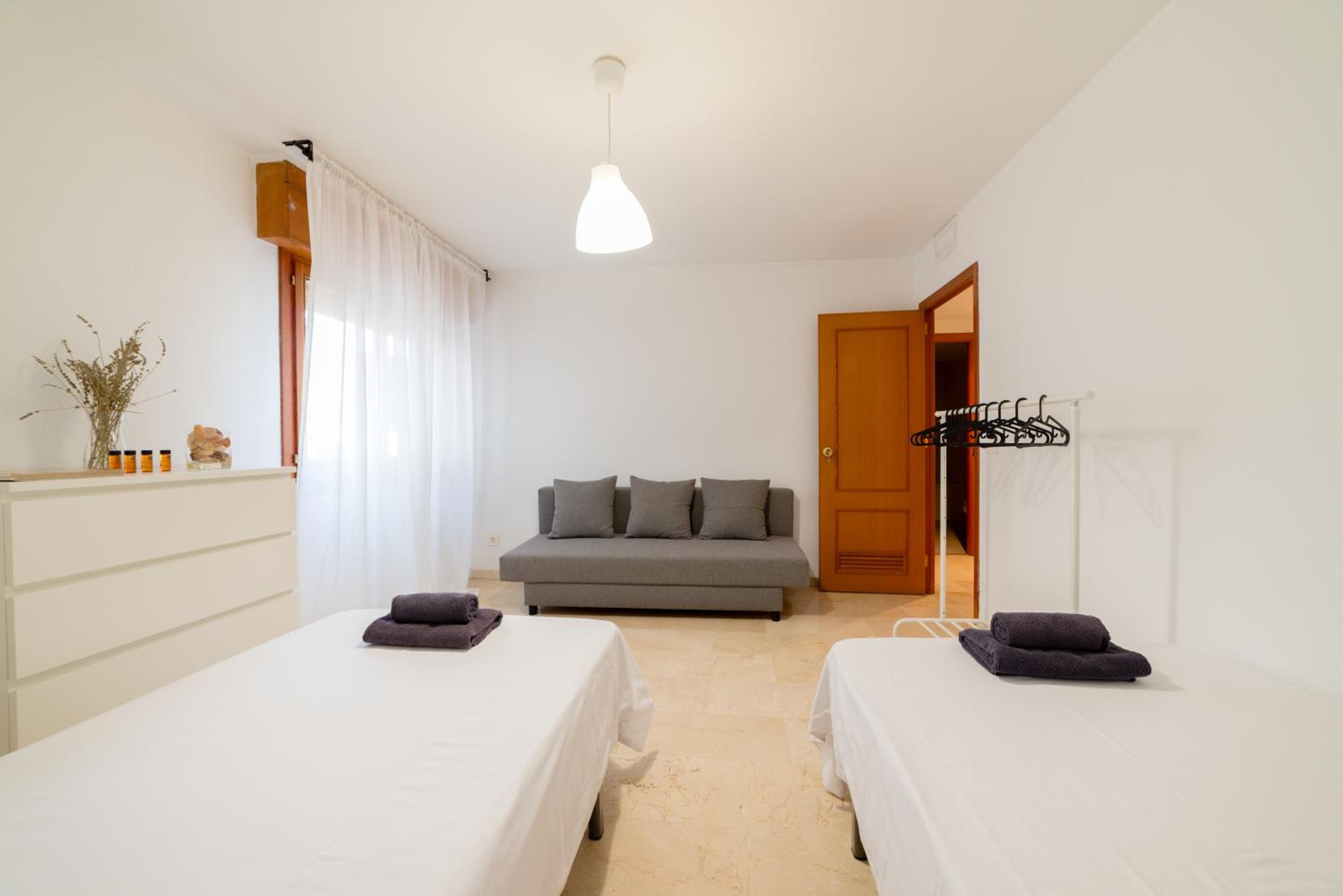 piso como cuando entras.en un piso semiamueblado de alquiler, sin sillas ni perchas en cuarto, perchas en armario que se llevan con las camisetas Primark, no hay donde doblar pantalones
