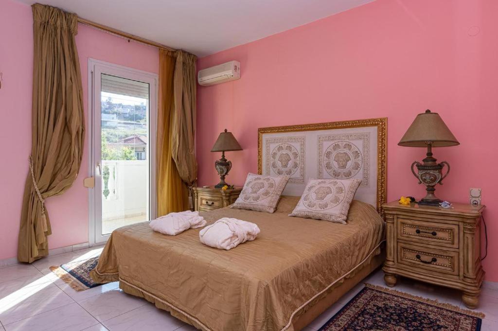 Host was very nice and shown great hospitality. Location offered a great view of the mountains, valley and city of Heraklion. Rooms were very spacious, with classic decor. There was a nice local small town just few minutes of walking (or driving) from the house.