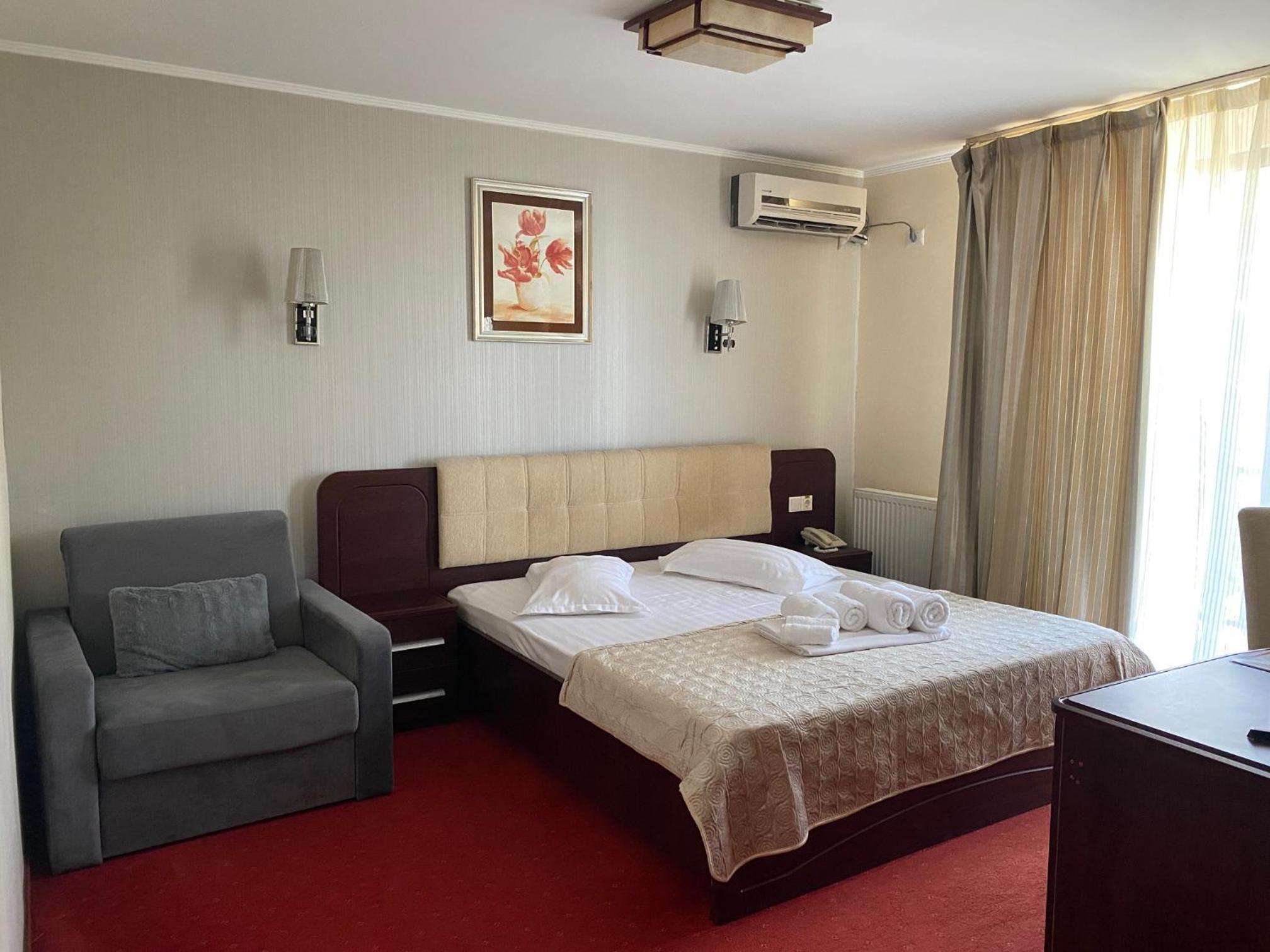Hotelul este situat la doar 5 minute de mers pe jos de plajă. Camera a fost curată, dotată cu aer condiționat, iar zona este liniștită. Micul dejun este potrivit pentru cei mai puțin pretențioși. In preț este inclus atât sezlong pe plajă, cât si loc de parcare. Raportul calitate-preț este bun, mai ales având in vedere poziția foarte bună față de mare.