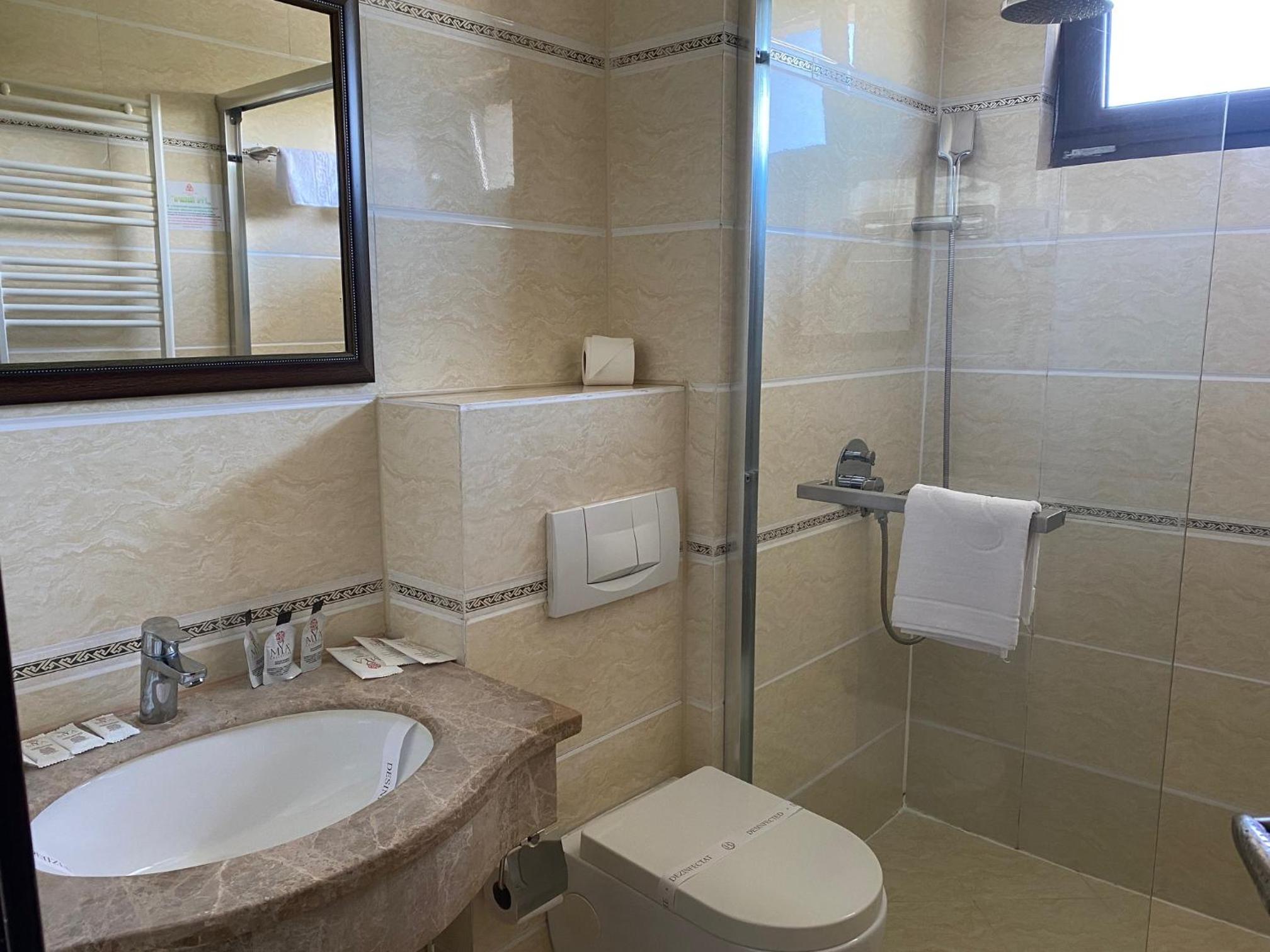 In camera am găsit și o canapea micuța extensibila numai buna pentru un copil micuț .Aerul condiționat era funcțional chiar daca părăseai camera, apa la baie era caldă mereu. Doamnele de la recepție erau foarte drăguțe și de ajutor