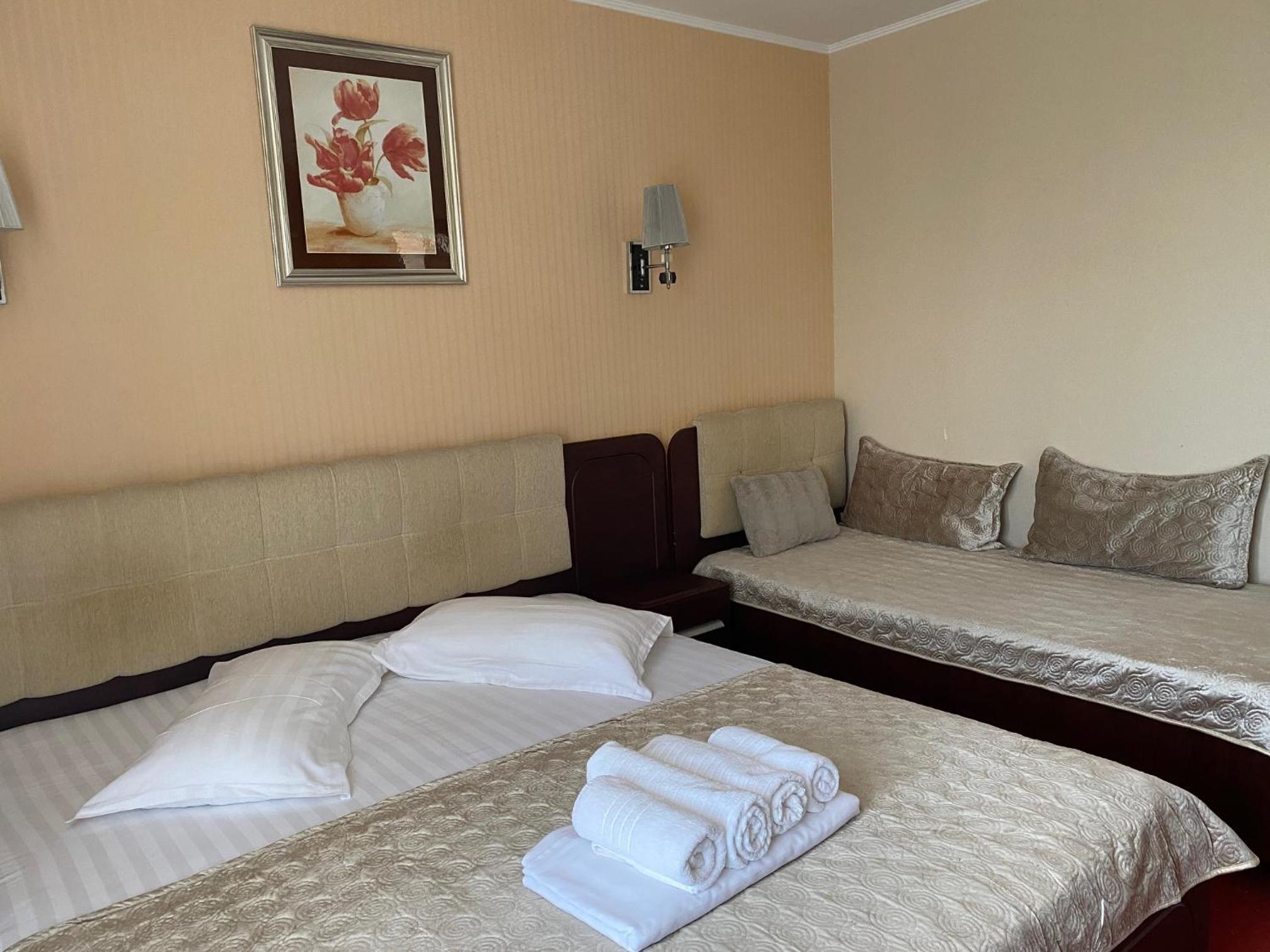 Sezlonguri pe praja privata, parcare gratuita, aer conditionat, liniste, personal amiabil, mic dejun consistent si bun. Peste drum de plaja. Recomand