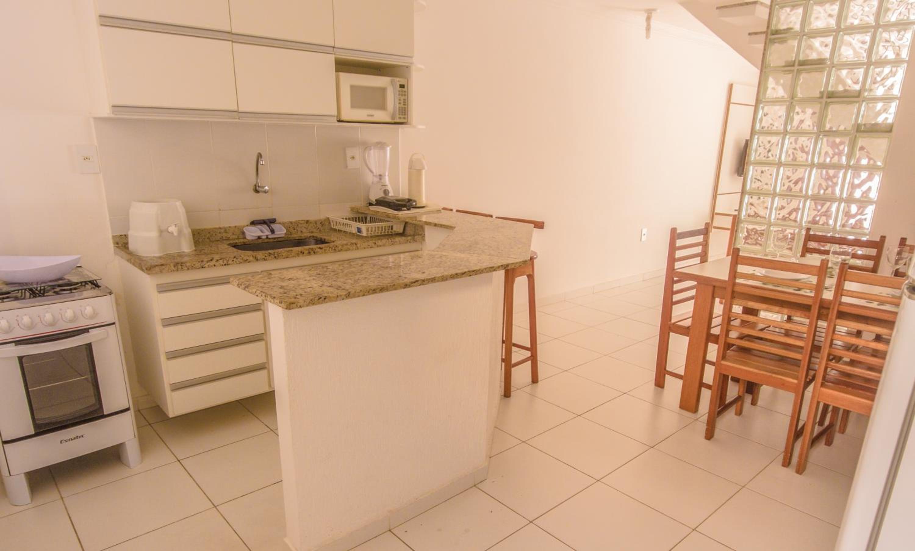 Os utensílios da cozinha estão completos e novos, geladeira e fogão novinhos. Precisa trocar a frigideira. Local tranquilo para descansar.