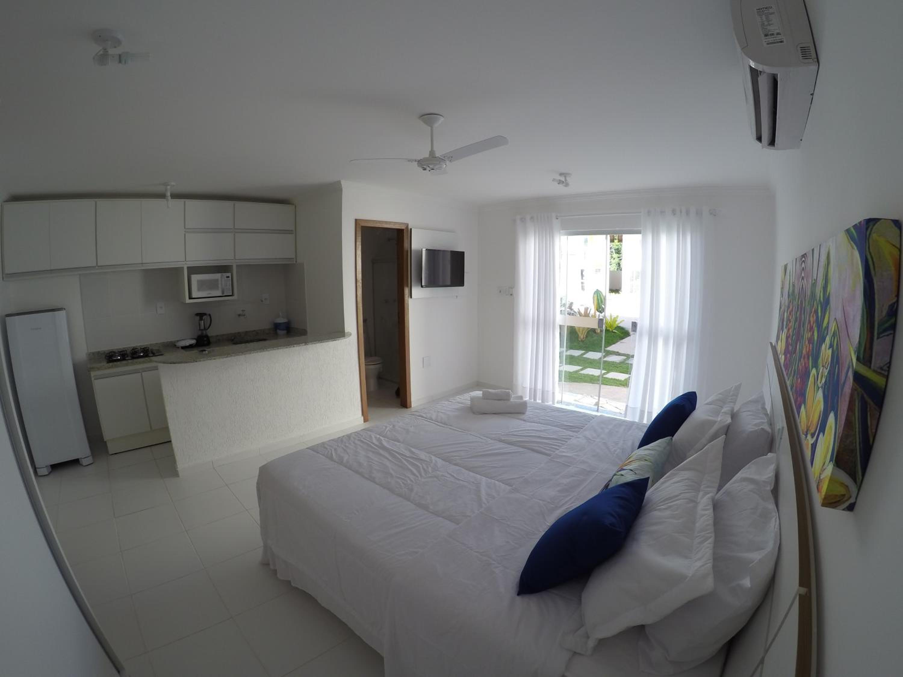 Há muitos recursos dentro do quarto, quarto espaçoso, localização excelente, a piscina é maravilhosa.