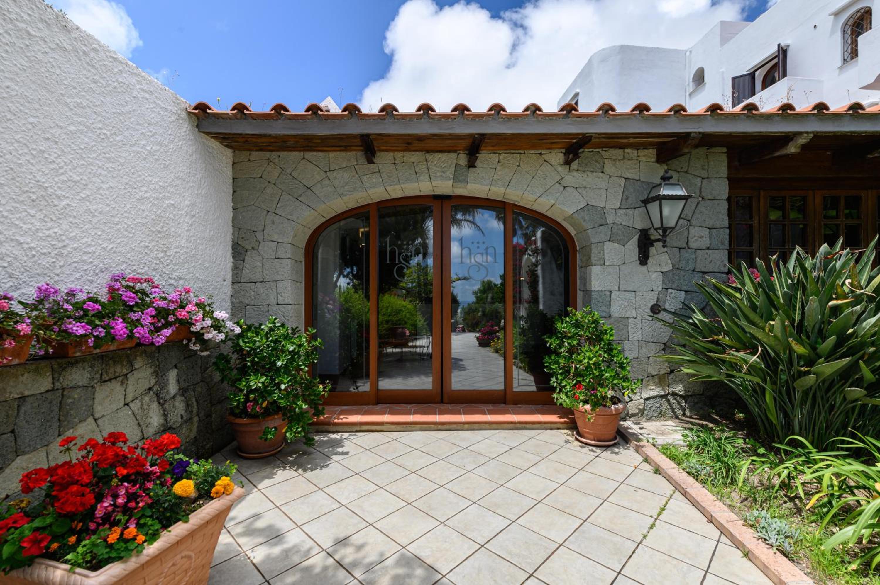 San Nicola is surrounded by tropical gardens with palm trees and colorful flowers. Enjoy a thermal swimming pool, ample sun loungers, parasols, and seating areas.
