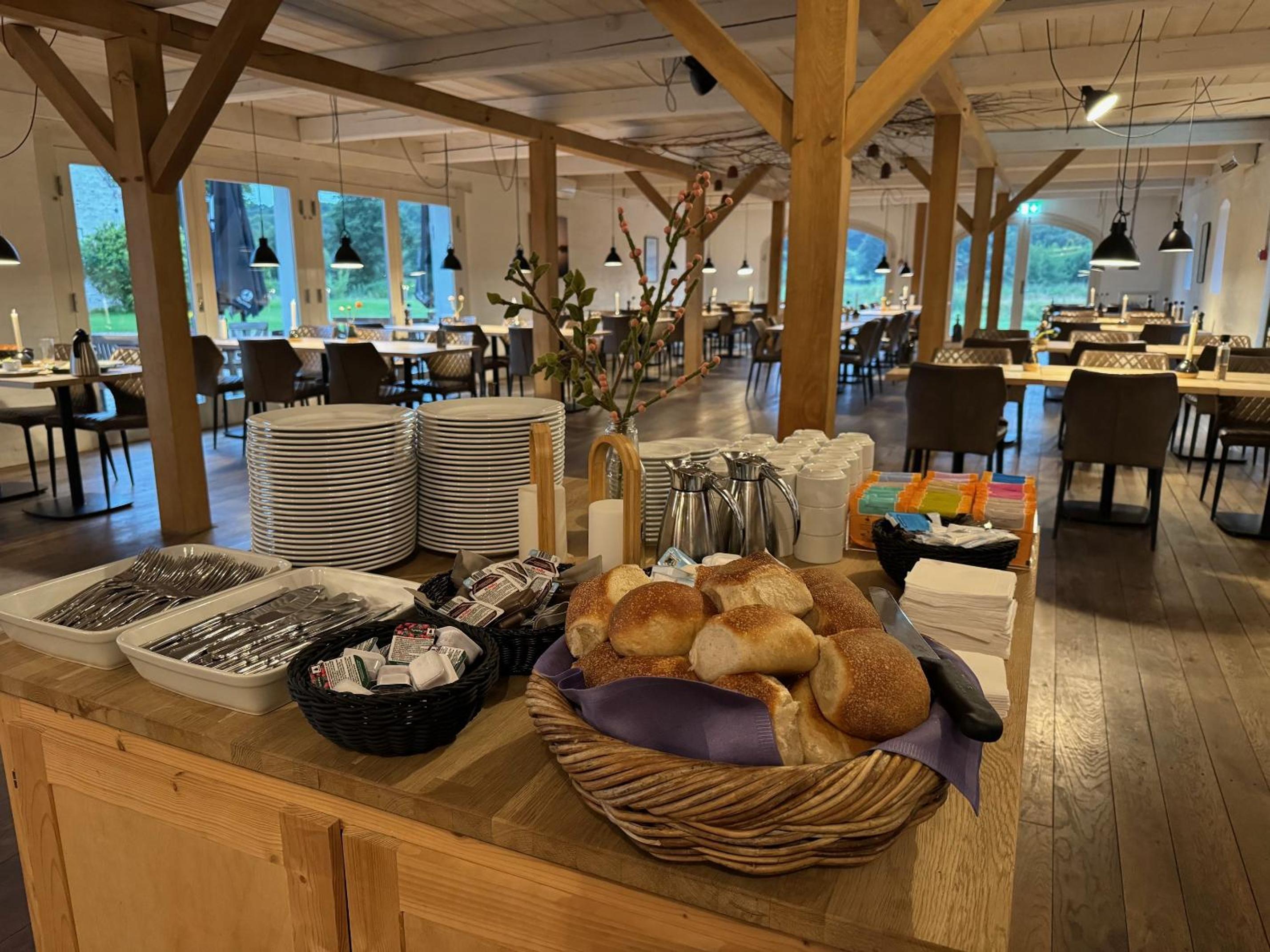 Alt for meget larm i lokalet under morgenmaden så det var umuligt at føre en samtale. Vi gik efter 15 minutter.