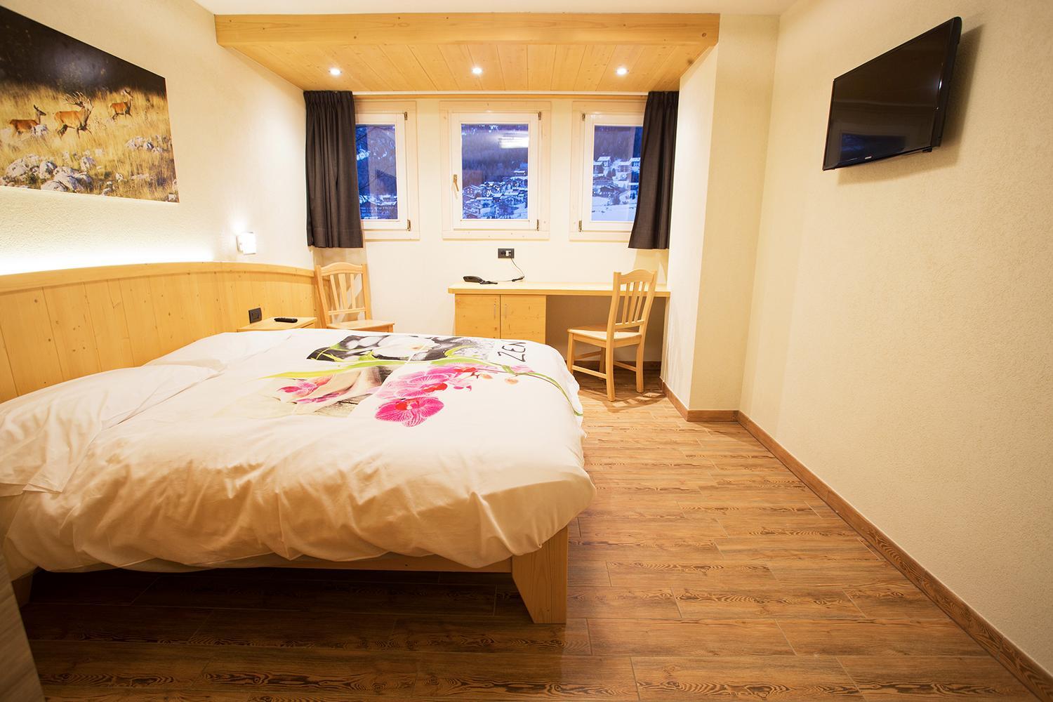 Wake up to breathtaking mountain views from our rooms, each featuring a flat-screen TV with satellite channels. Enjoy the simple décor and wooden furnishings, creating a cozy and inviting atmosphere.