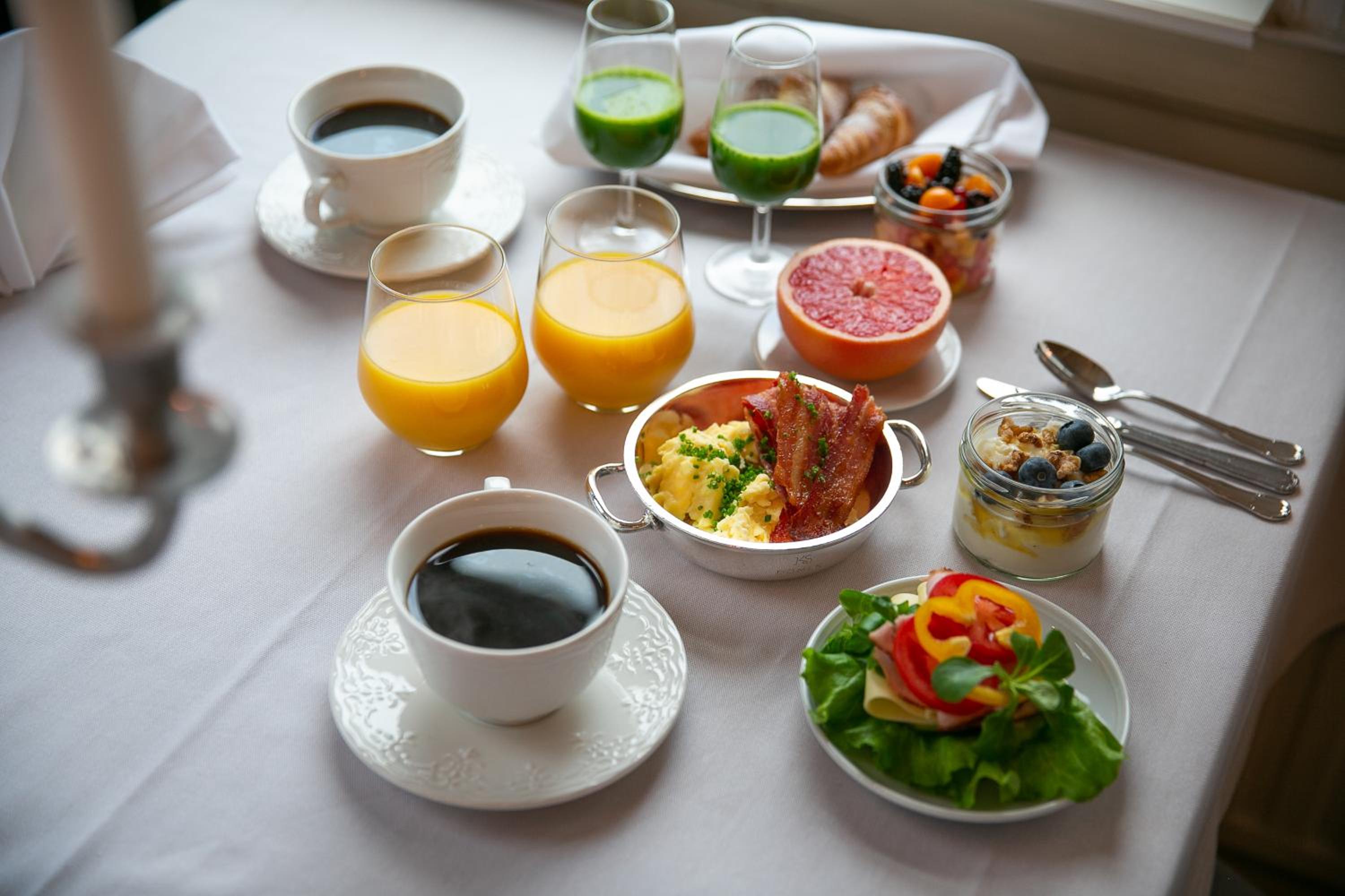 Frukosten var mycket god. Det fanns mycket att välja på. Middagen var utsökt god med tryffeltema. Mycket trevlig personal!