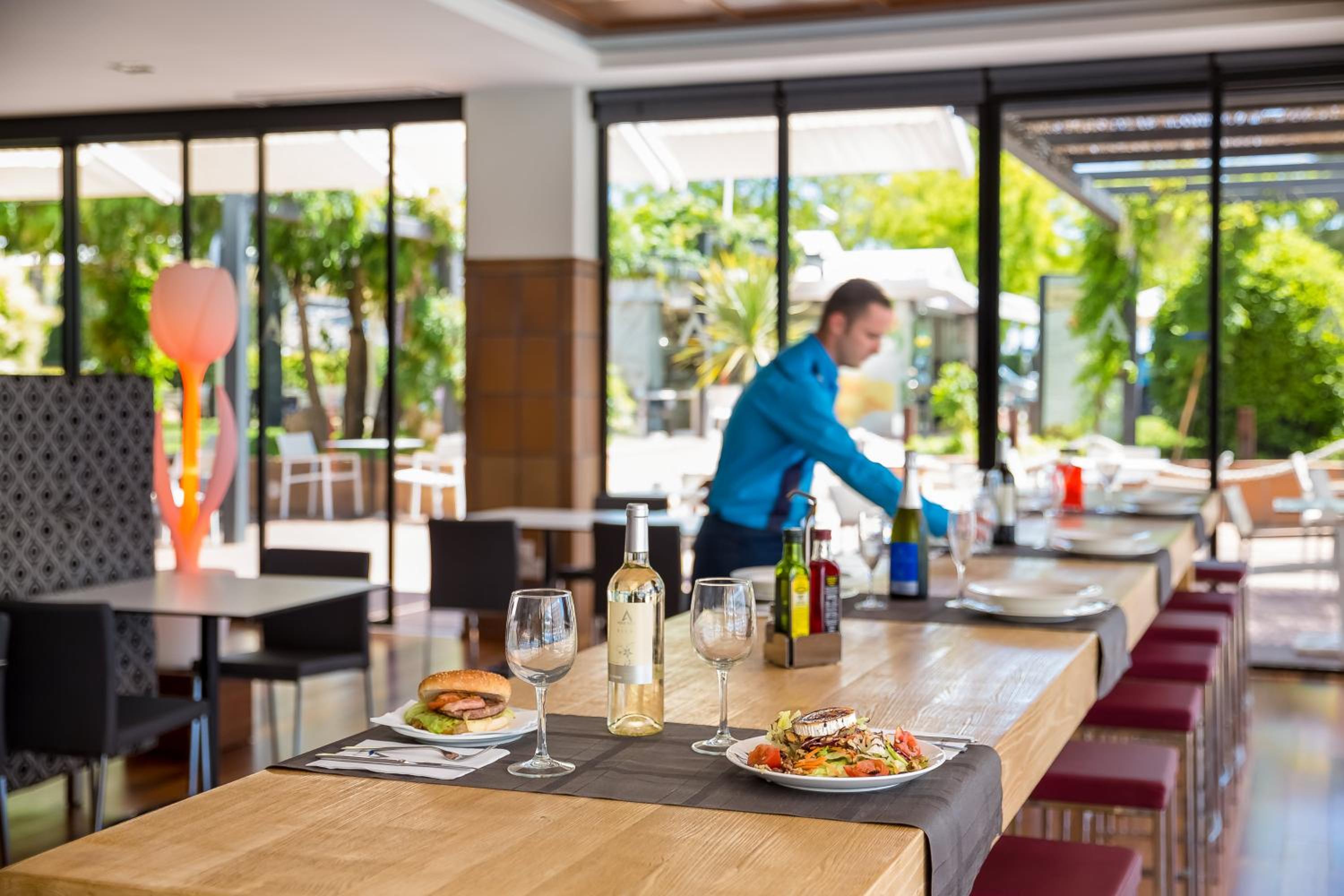 Savor a delicious buffet breakfast and Mediterranean cuisine at the hotel's restaurant. With three bars on-site, guests can unwind with a refreshing drink after a day of exploring the nearby resort center and charming villages.