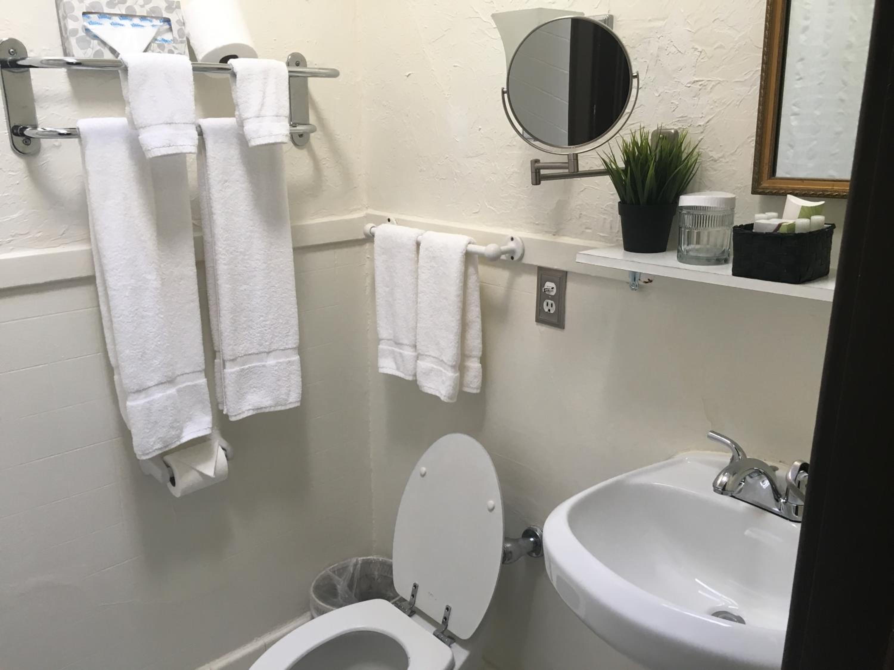 The rooms are small like bed and breakfast type. The bathroom is really small. With no mirrors bad lighting. It’s not totally bad but just not for us. If you’re looking for location then this is the place.