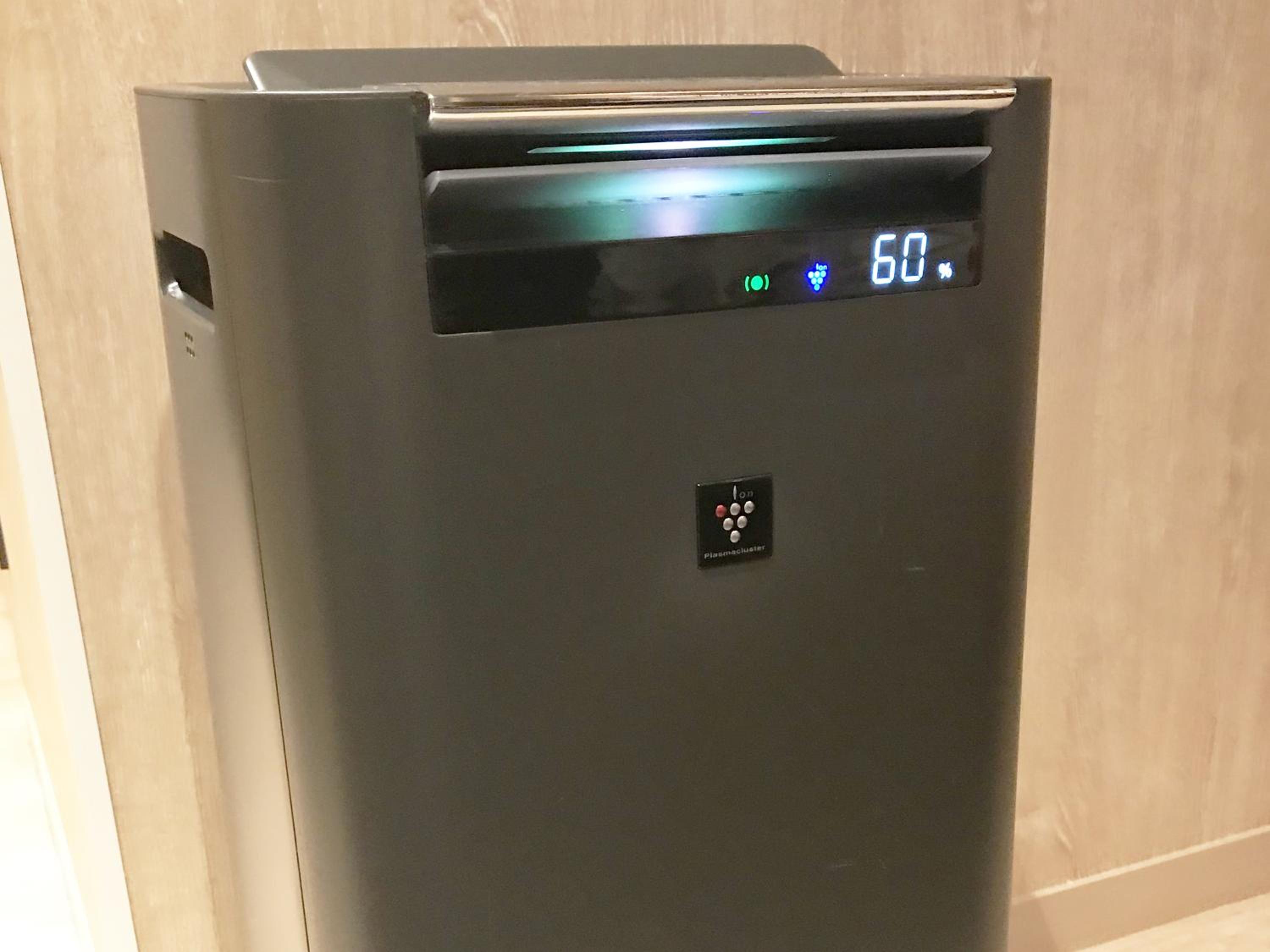 The heater is in the center of the living room which is probably the best location to put it. But the heated air blows directly to the people below it. The hotel put a humidifier to help the sleeping area in a comfortable humidity. It the hotel can make the room with even humidity, that will be better.