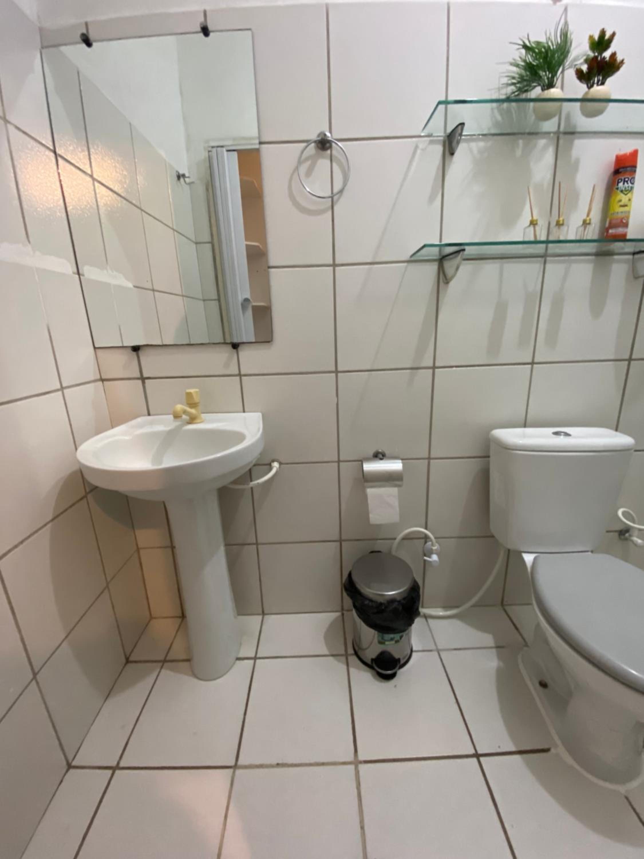 O banheiro da minha unidade estava com alguns canos (tubulação) a mostra, provavelmente por conta de algum reparo hidráulico recente.