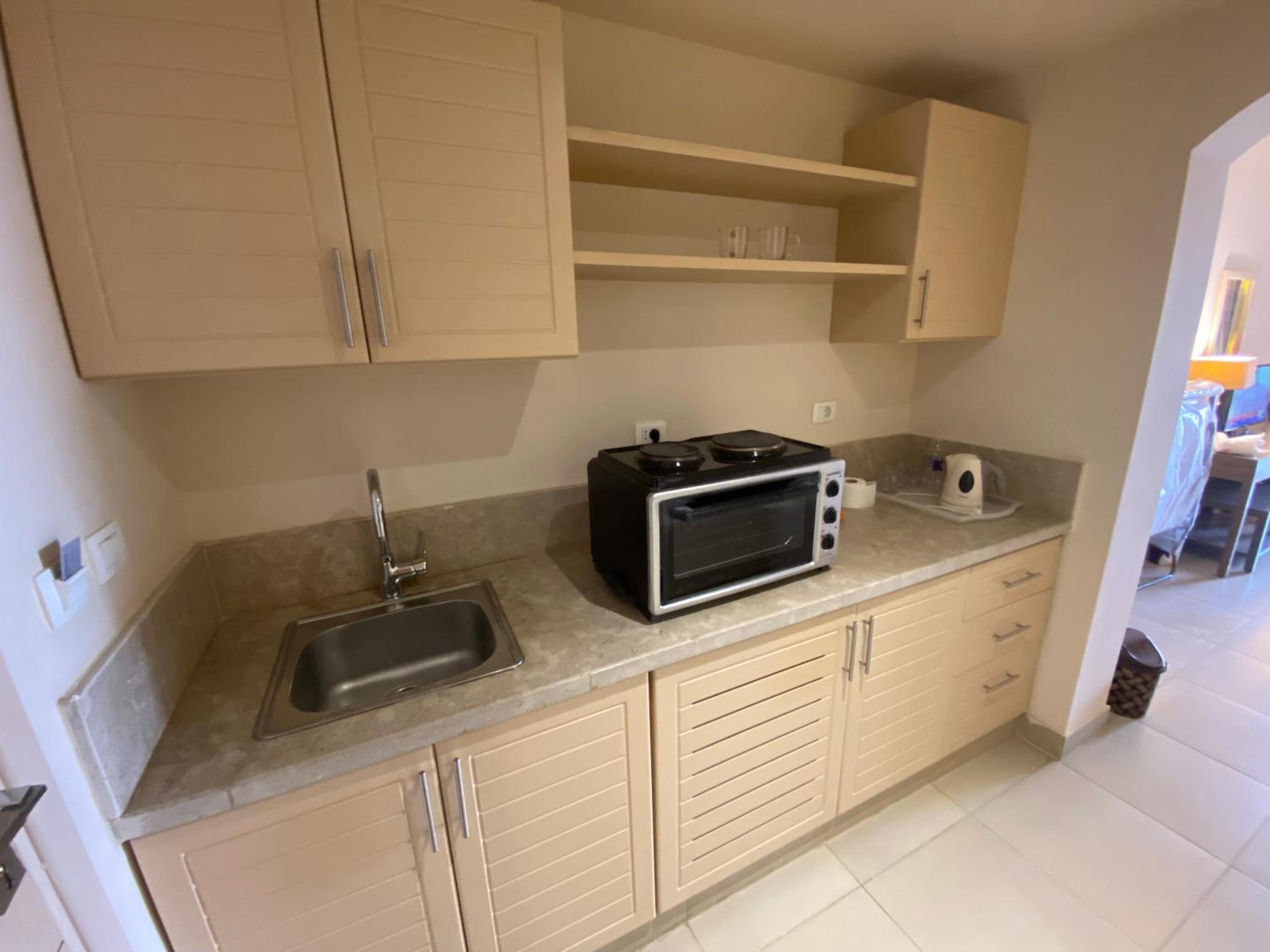 Well. It was not a microwave. I'd brought stuff down from Cairo which would cook easily in a microwave. But it was not. It was this kind of grill thing with hobs on top. I asked about a pan then as I could not use my plastic ware in this apparatus, nor did I even really know how to use it. He said no pan. I said, then how can I cook? As I needed to cook, no breakfast there nor any other aparatus for making food. He did not bring anything for the kitchen and was extremely indifferent to the situation. The studio was quite isolated and I don't drive and there was only one towel given. Etcetc. Basically they had a studio for rent but did not care a hoot about equipping it. So we crossed the road and found an amazing hotel with apartments, they are wonderful people and I am still there.