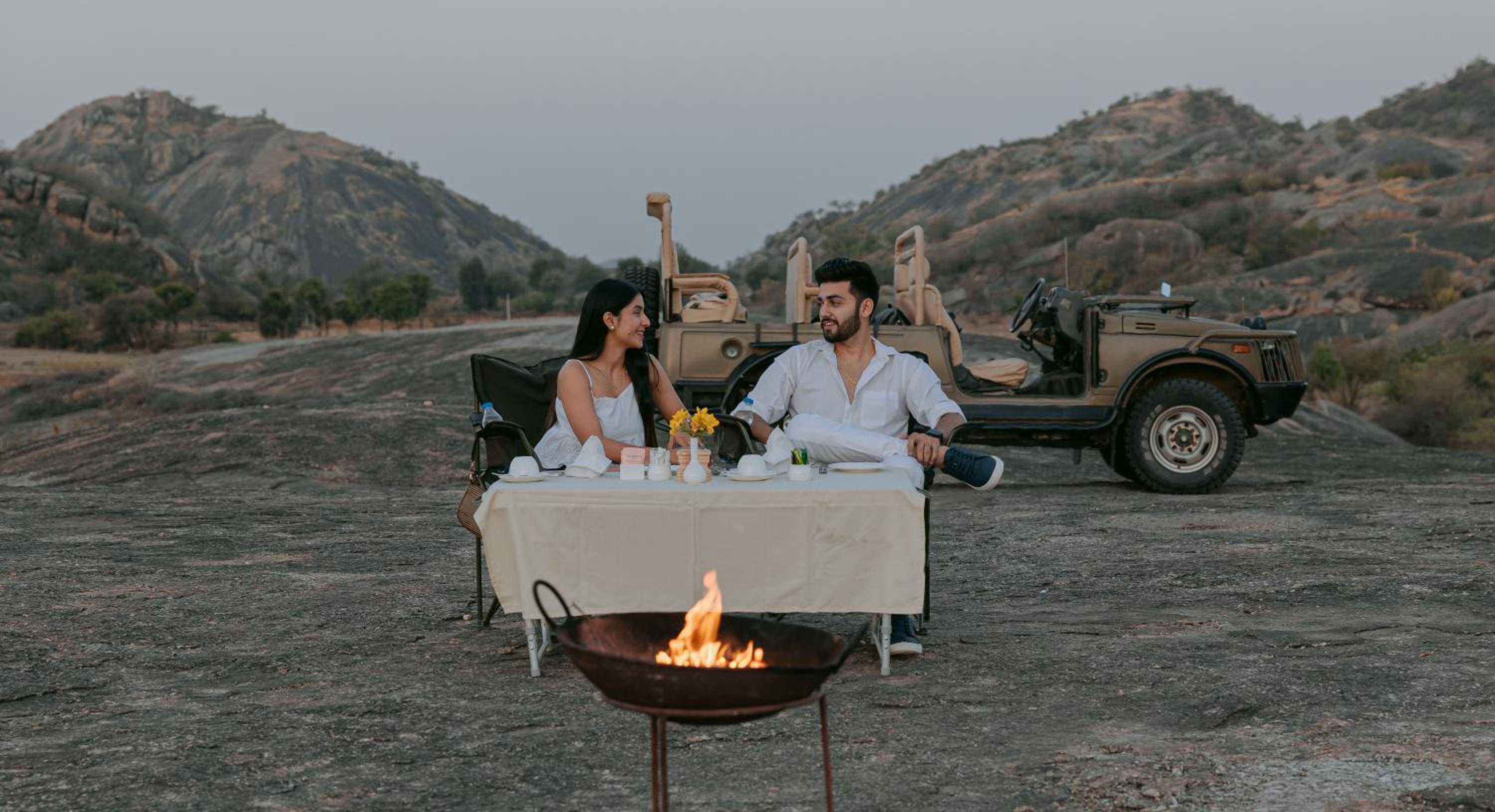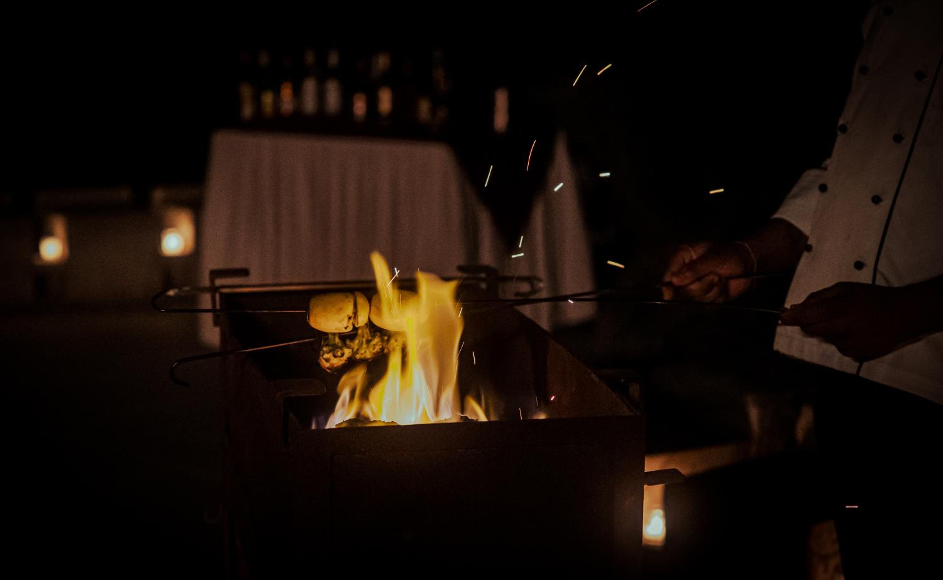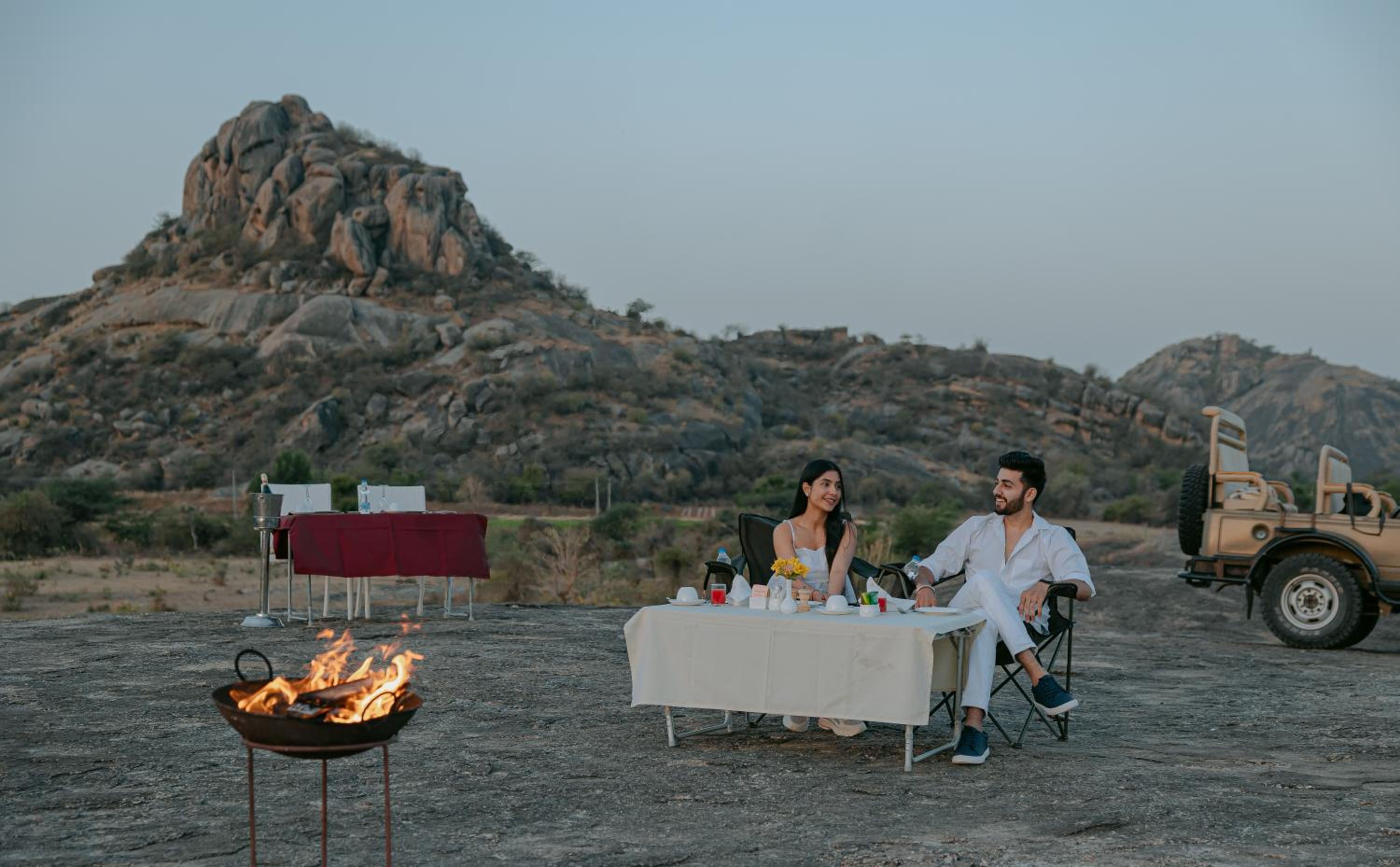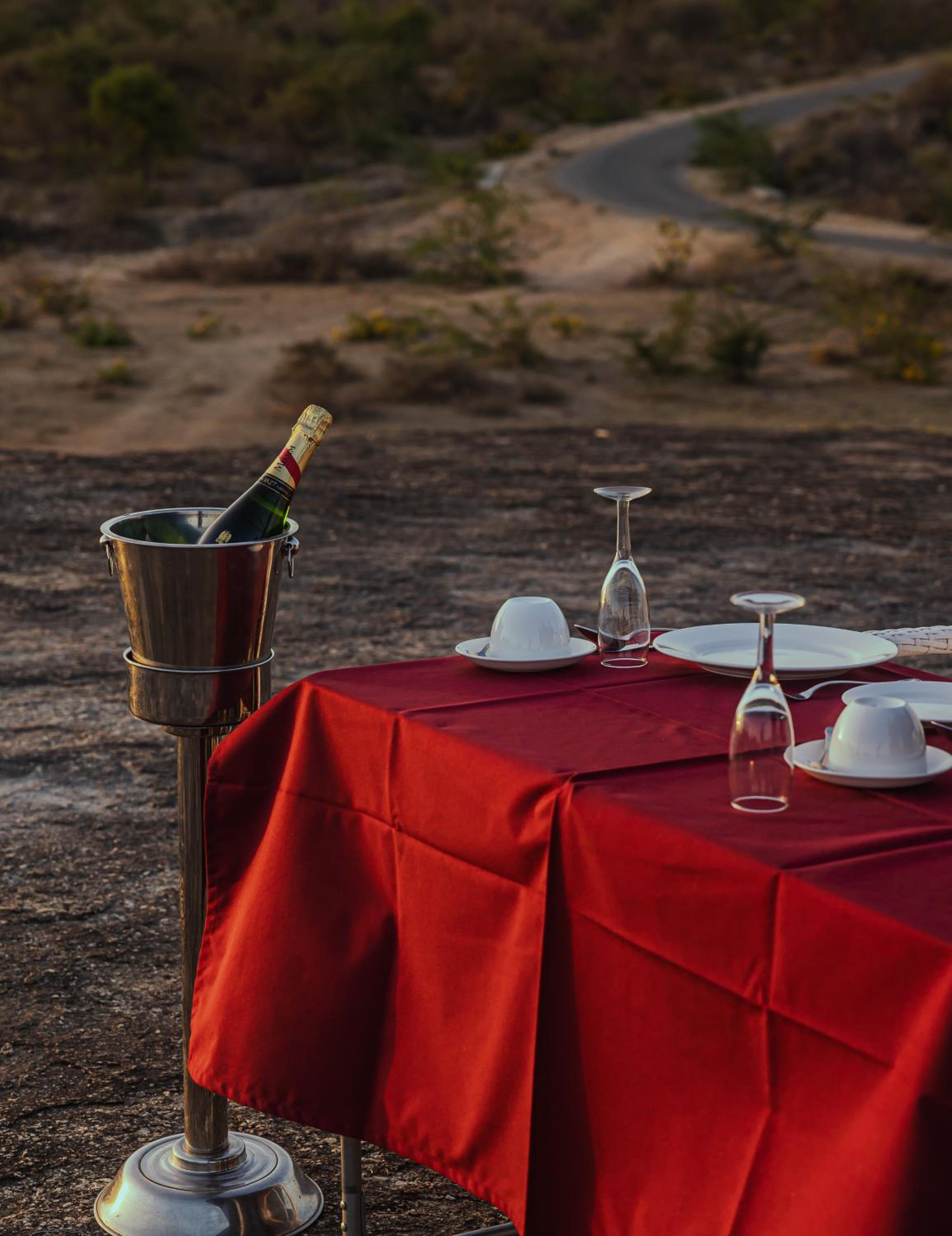 The evening dinners on the terrace overlooking the elephant rock!