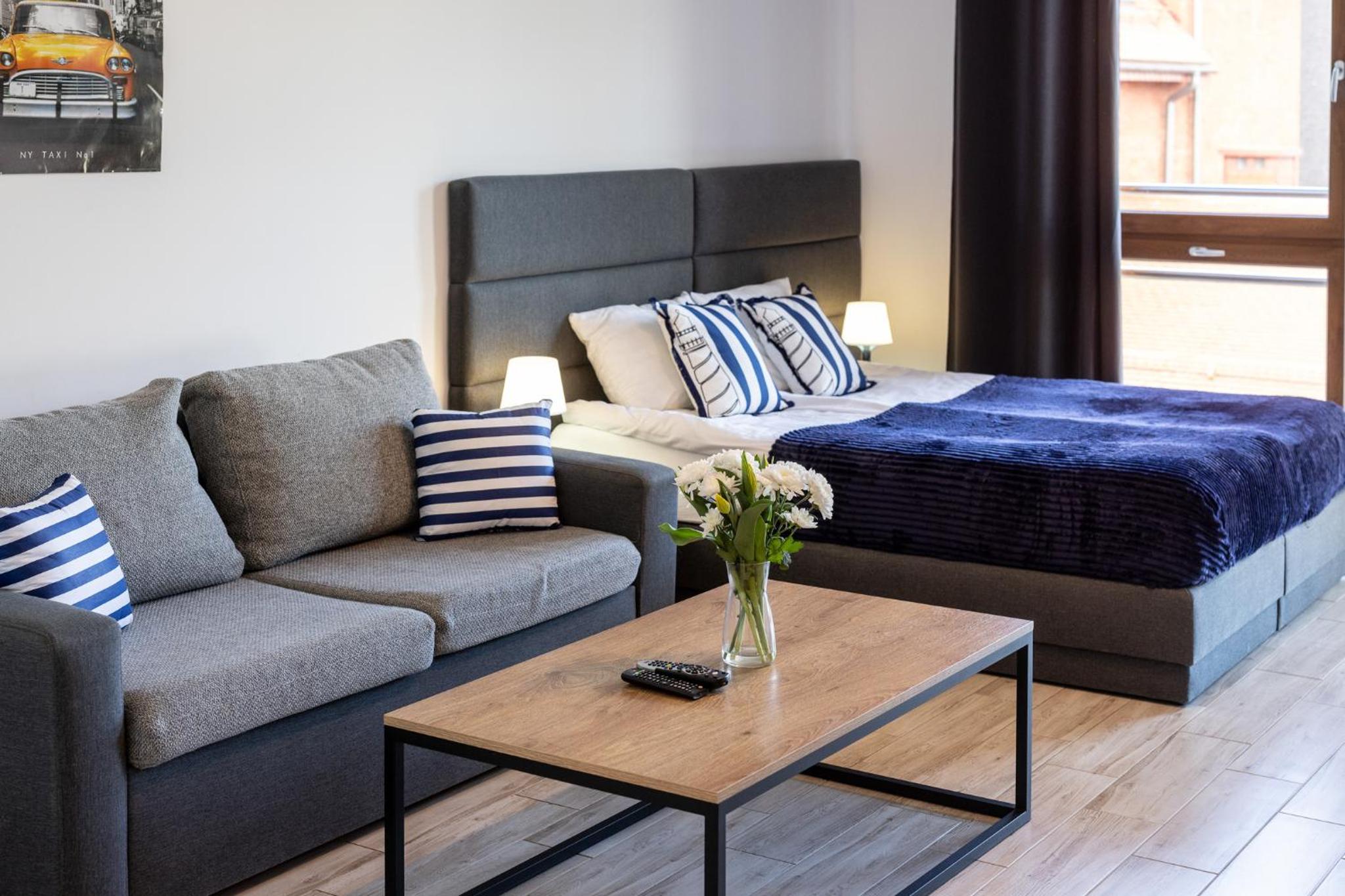 Lokalizacja wyśmienita. Obiekt zadbany. Czysty. Apartament dobrze urzadzony wygodny. Kuchnia wyposażona dobrze. Duży taras ze stolikami i fotelami to super miejsce na wypicie porannej kawy. W recepcji miła pani zawsze chętna do pomocy. Bardzo gorąco polecam ten obiekt.