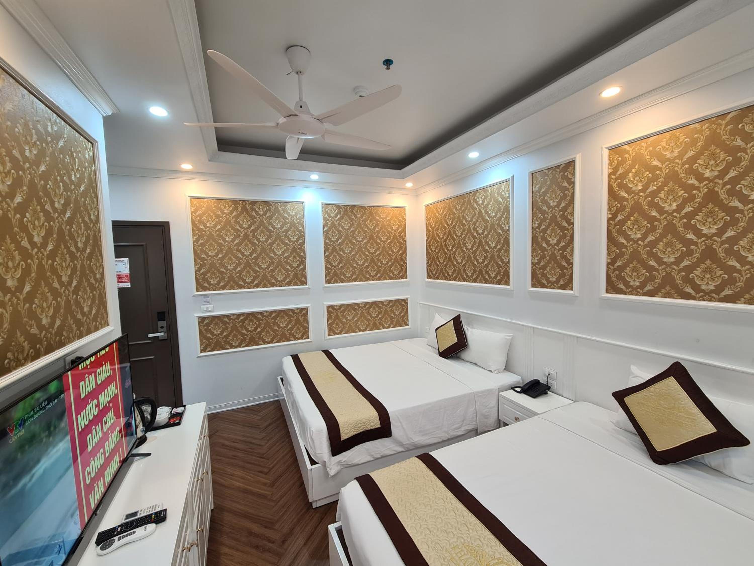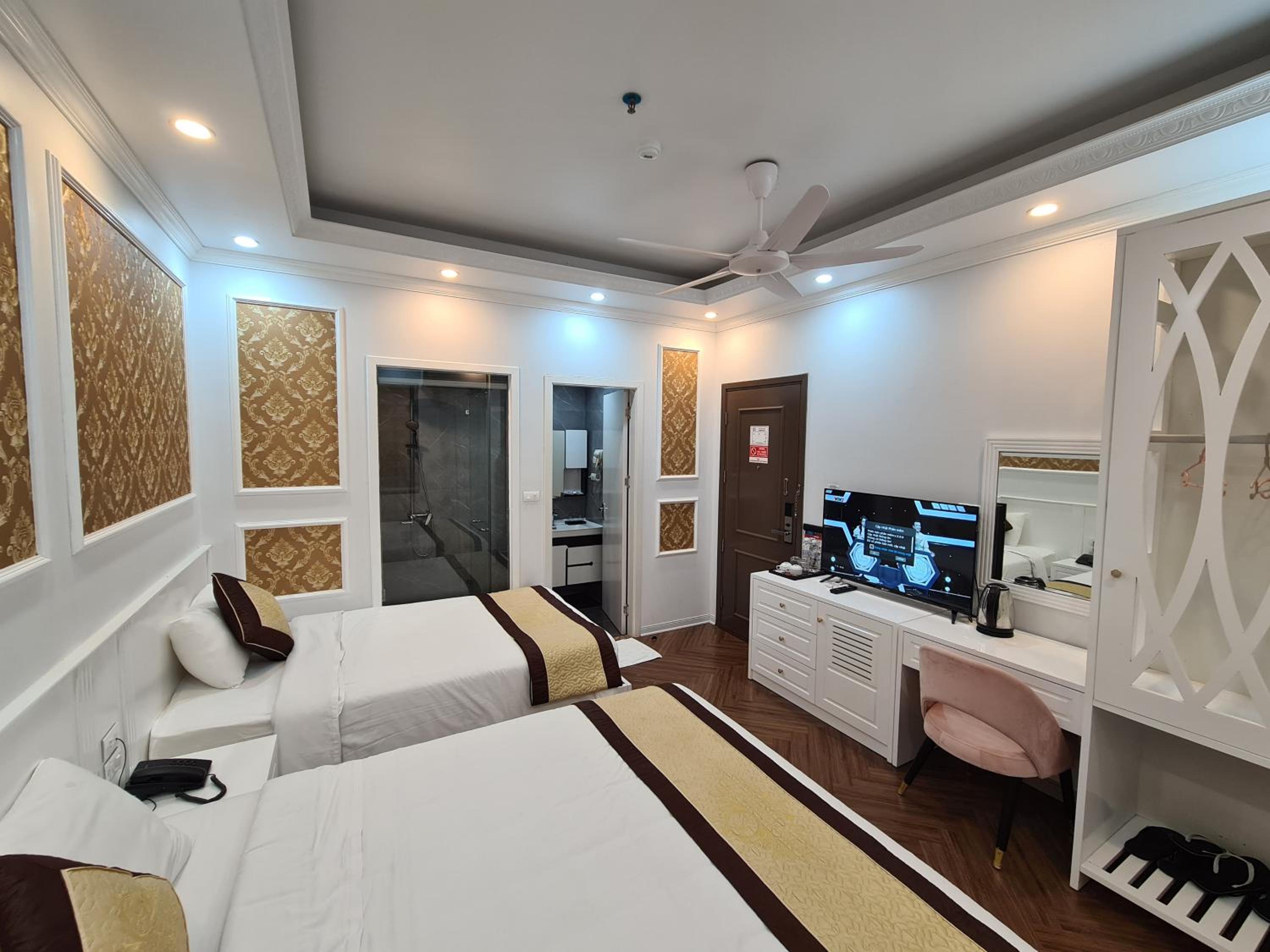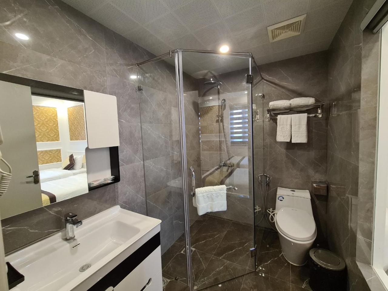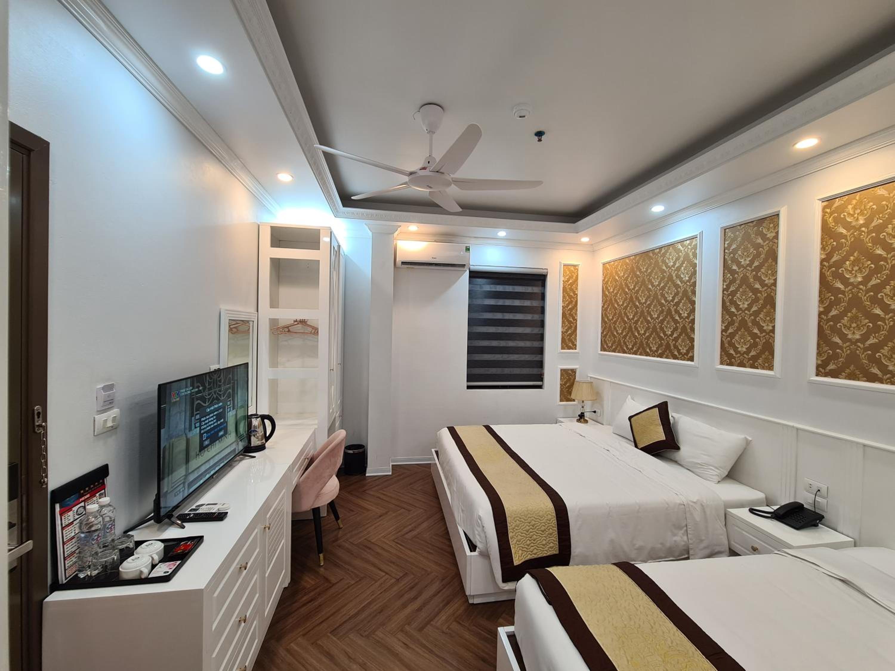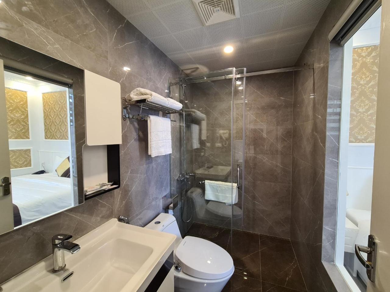 Each room at Khánh Linh Hotel Bãi Cháy Hạ Long is equipped with modern amenities, including air conditioning, a flat-screen TV, and a private bathroom, ensuring a comfortable stay for all guests.