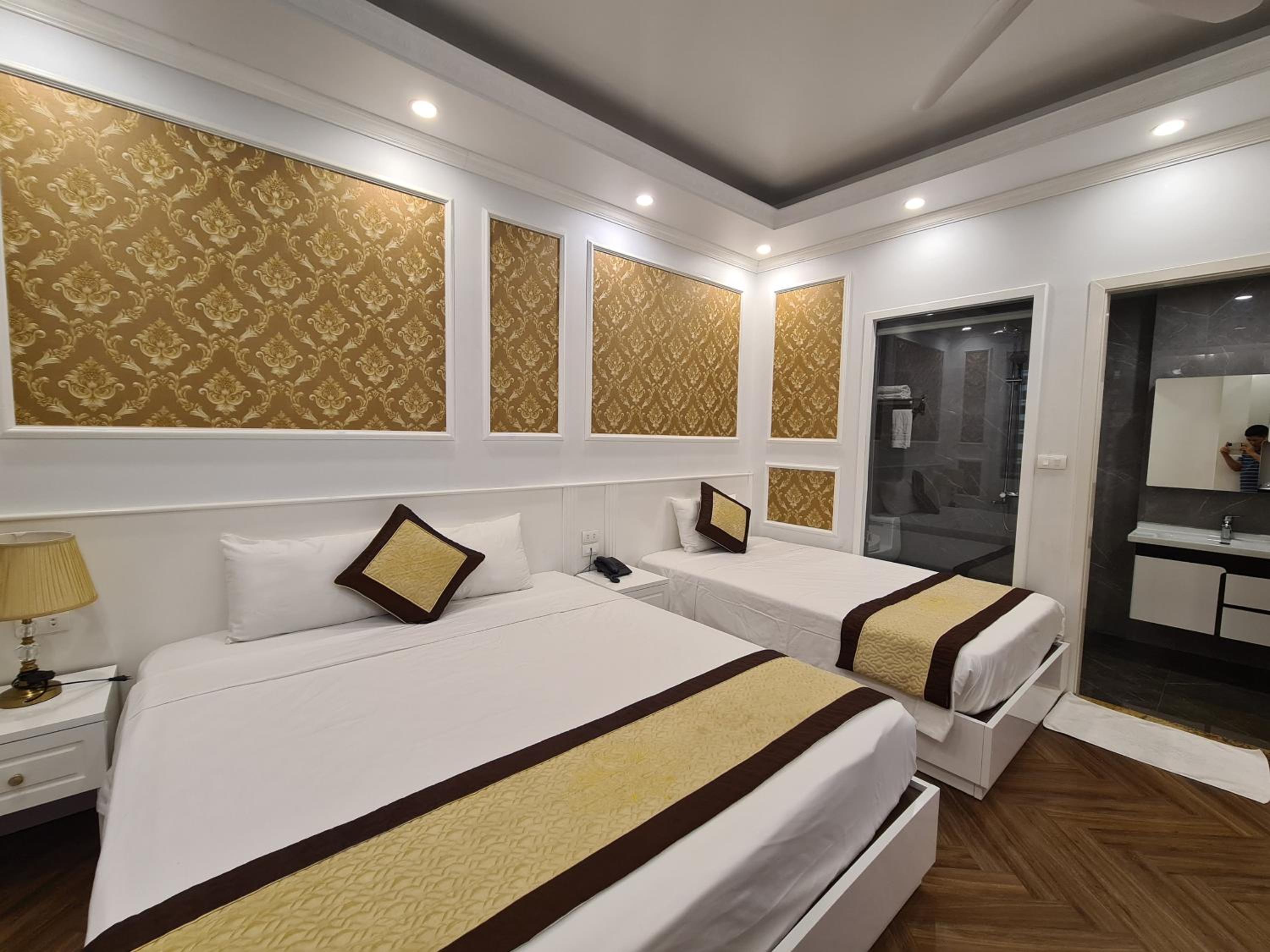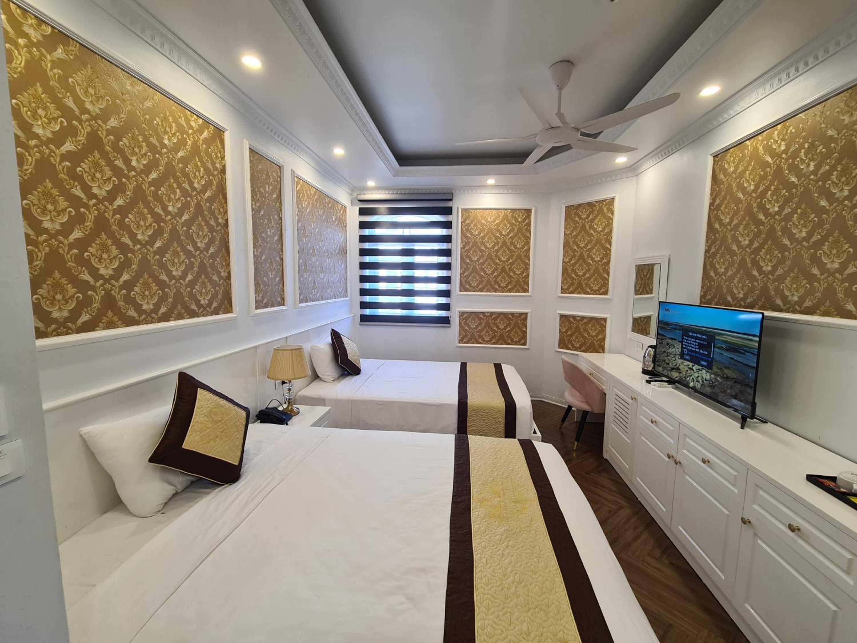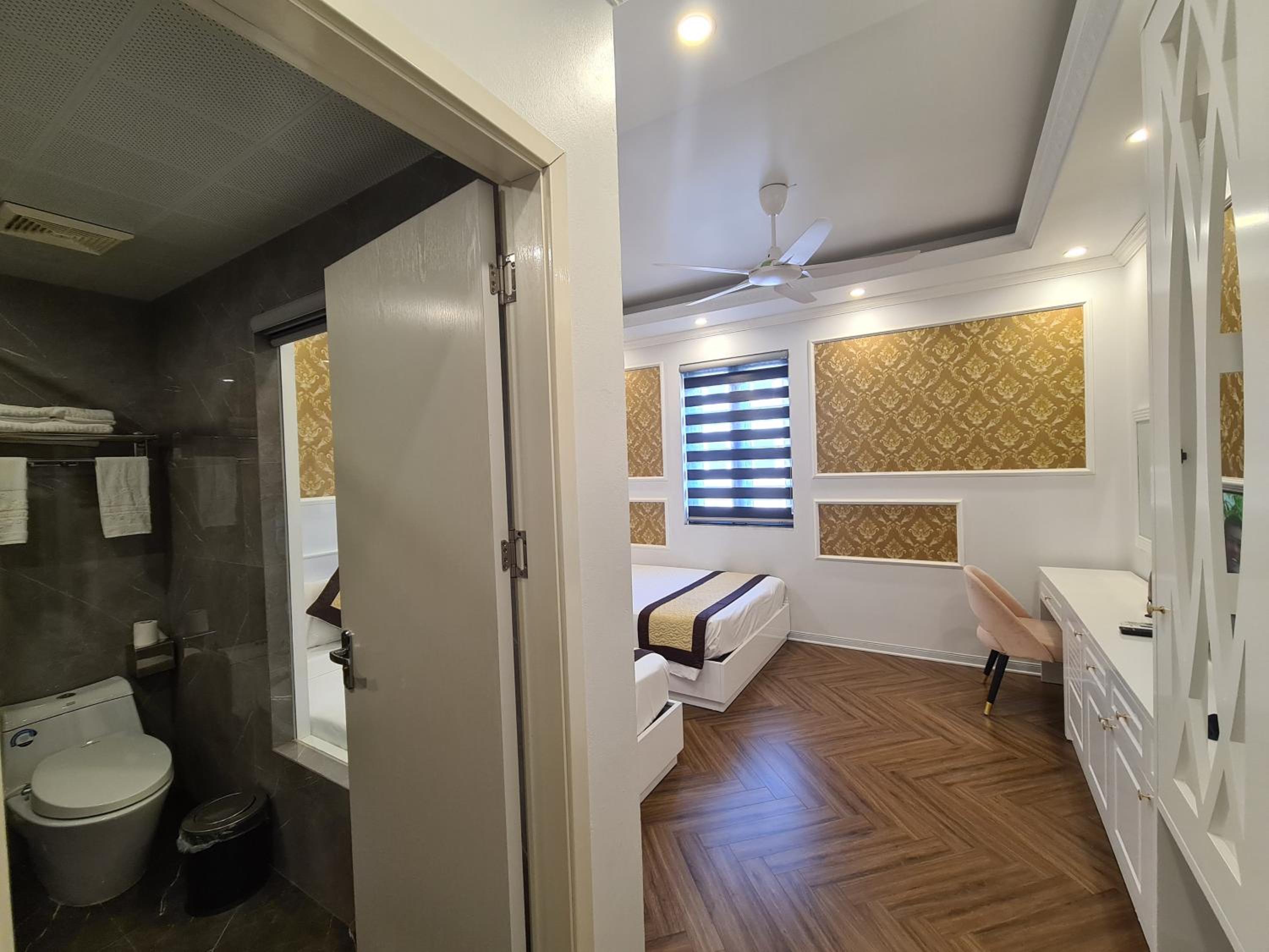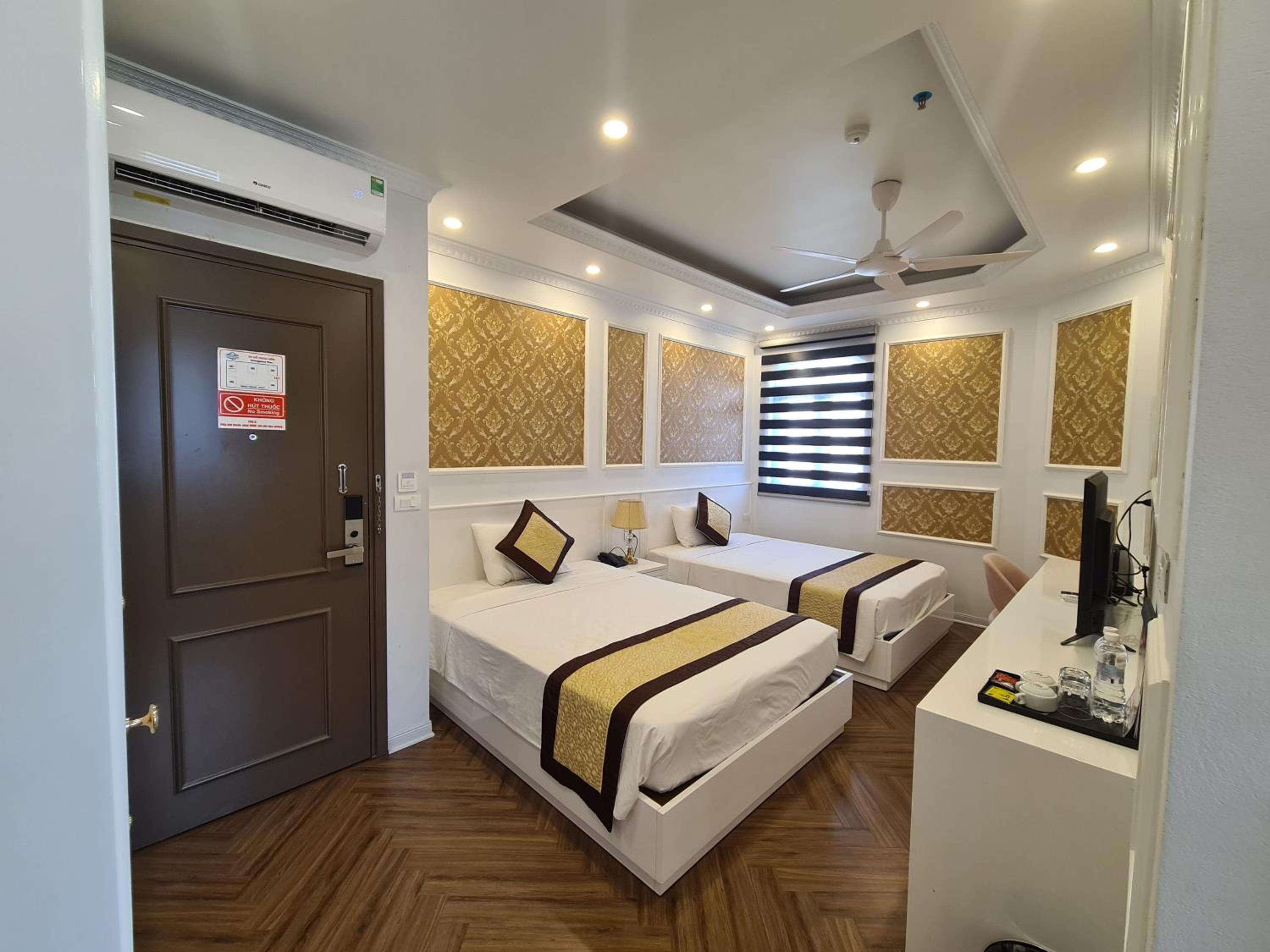 Each room at Khánh Linh Hotel Bãi Cháy Hạ Long is equipped with modern amenities, including air conditioning, a flat-screen TV, and a private bathroom, ensuring a comfortable stay for all guests.