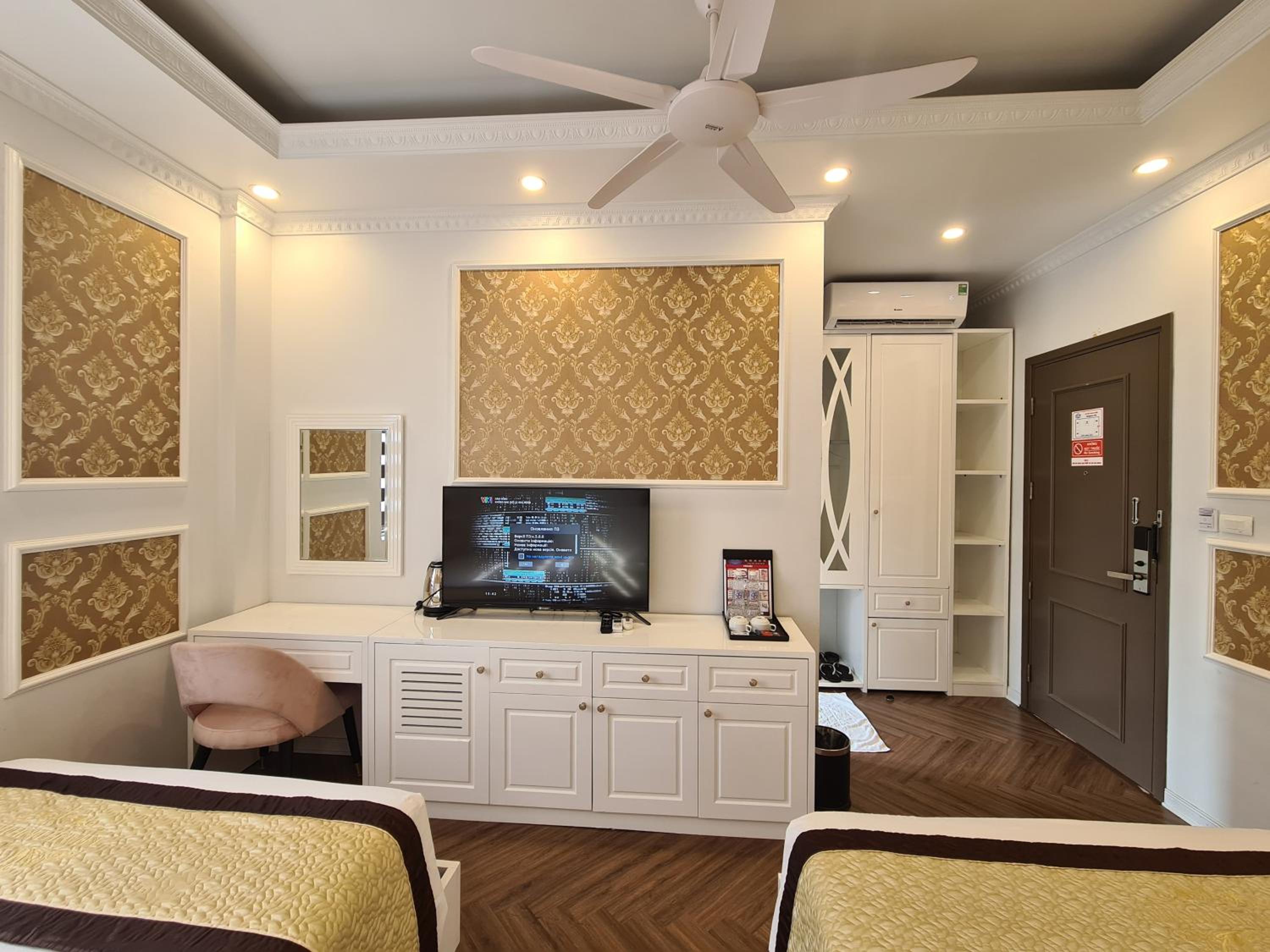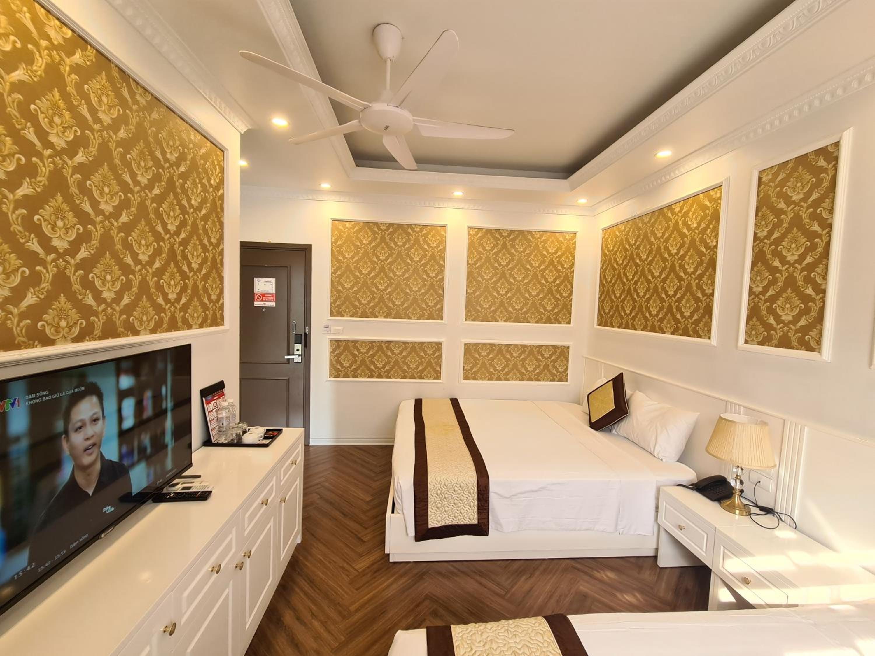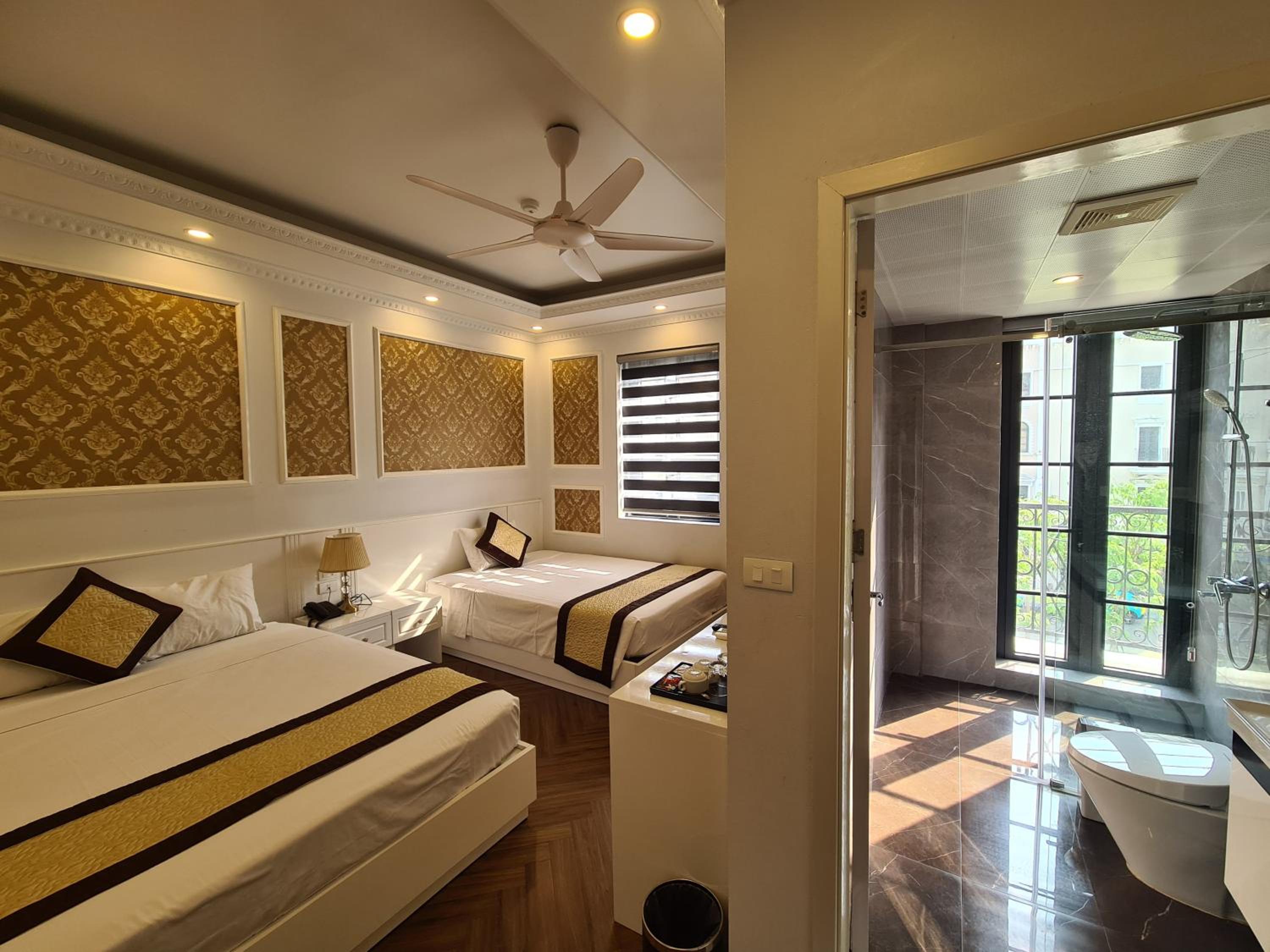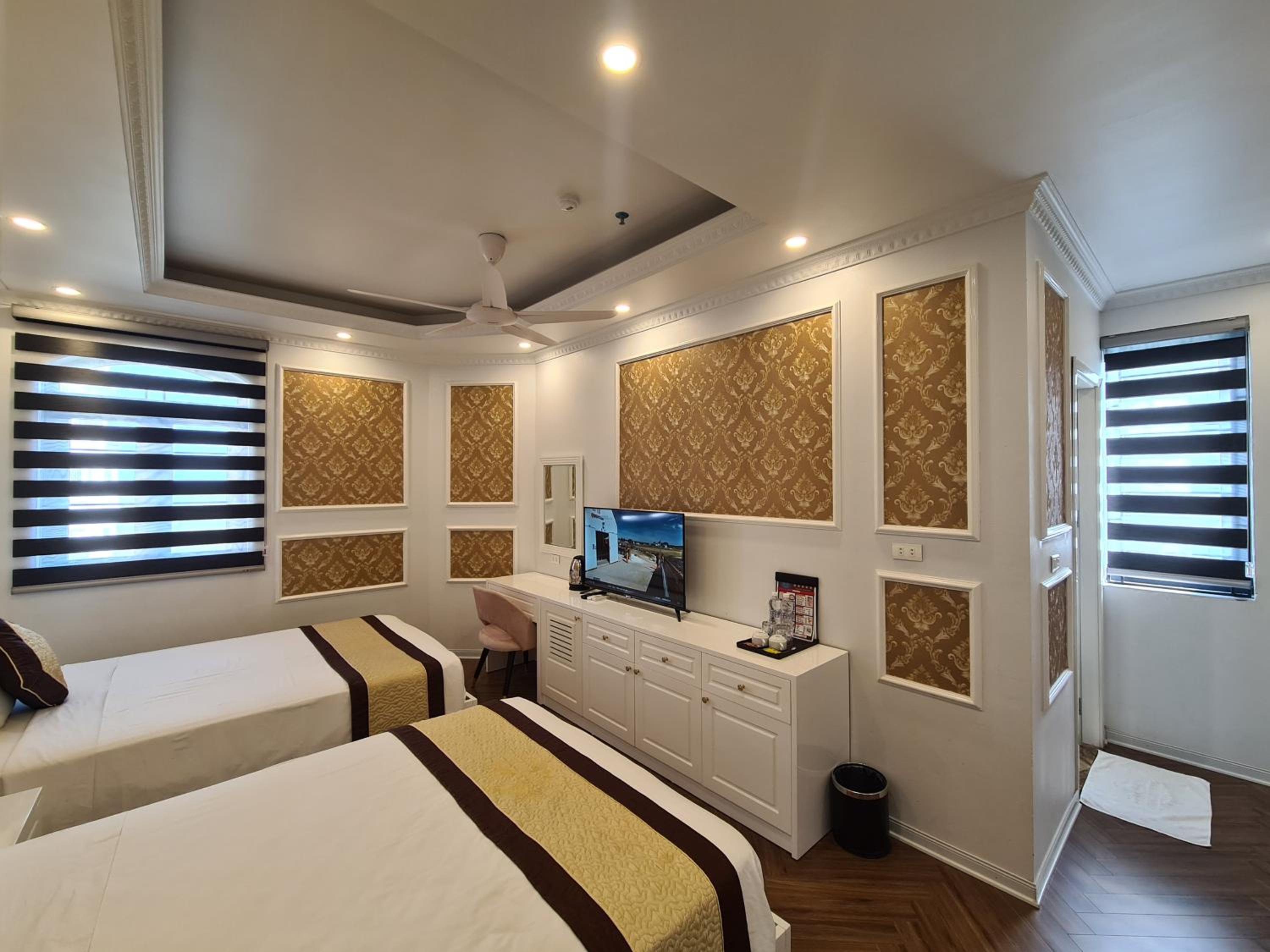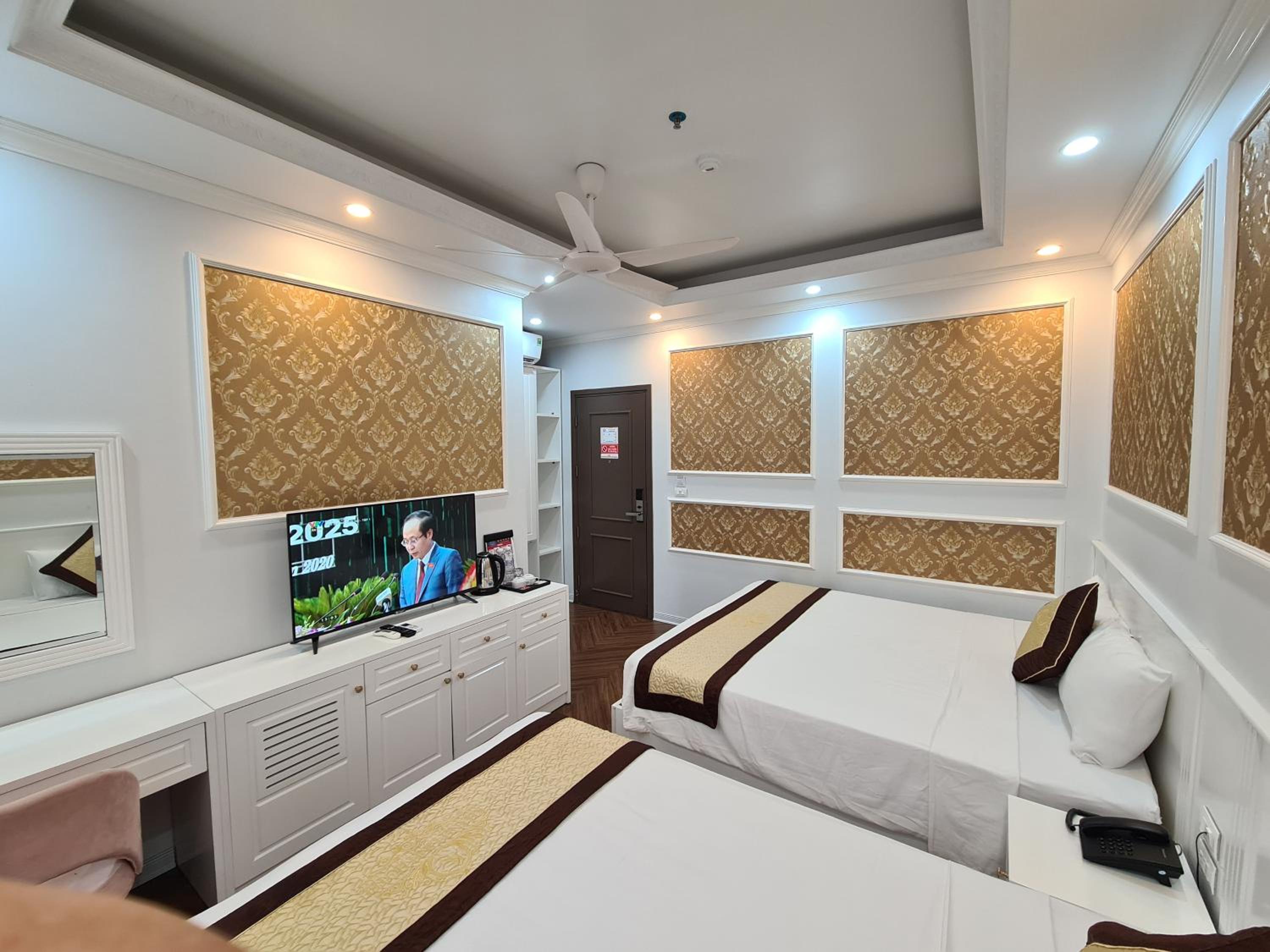 Each room at Khánh Linh Hotel Bãi Cháy Hạ Long is equipped with modern amenities, including air conditioning, a flat-screen TV, and a private bathroom, ensuring a comfortable stay for all guests.