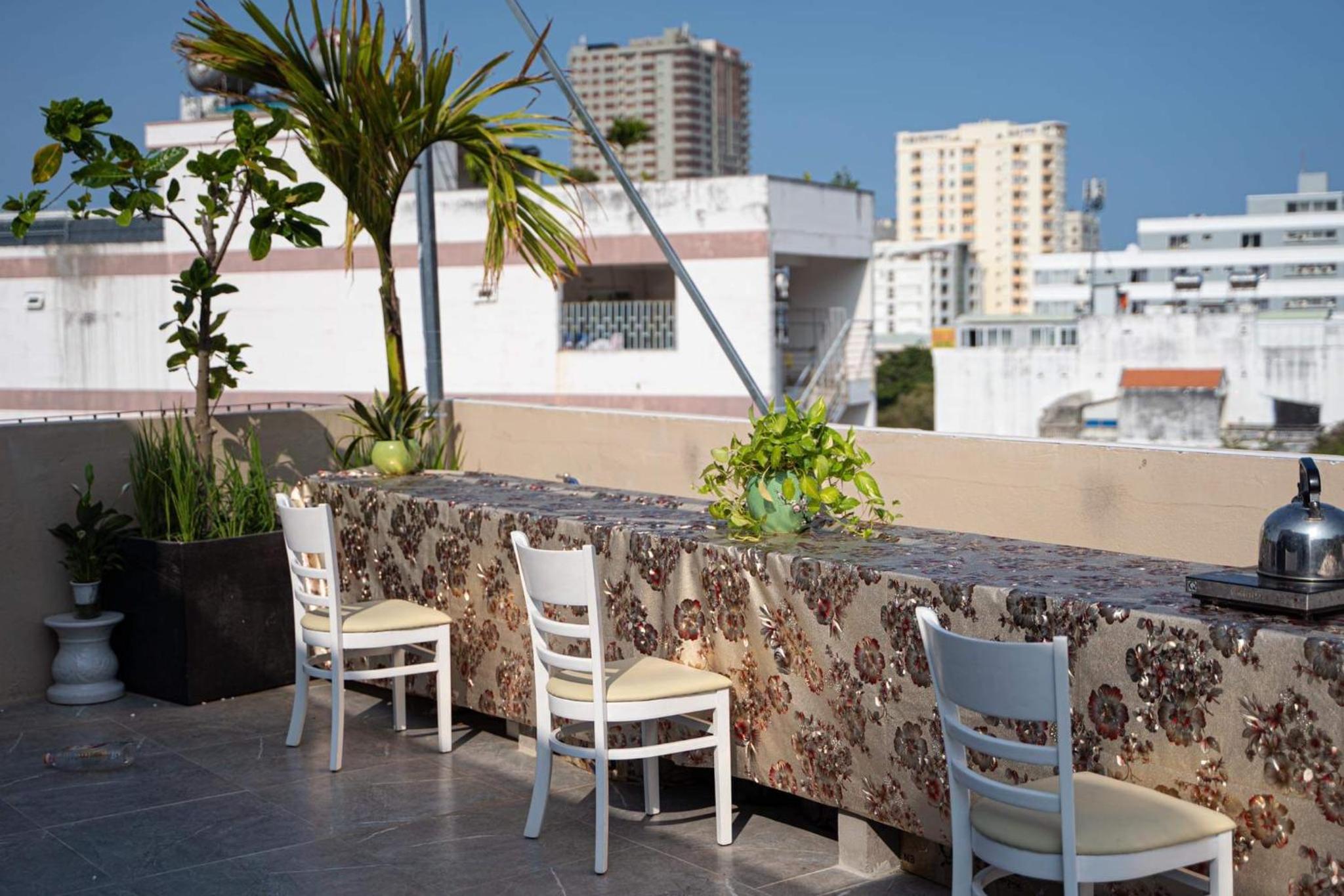 Experience breathtaking terrace and garden views at Sweet Home gần bãi sau in Vung Tau. Enjoy the serene surroundings and relax in comfort while taking in the beauty of nature.