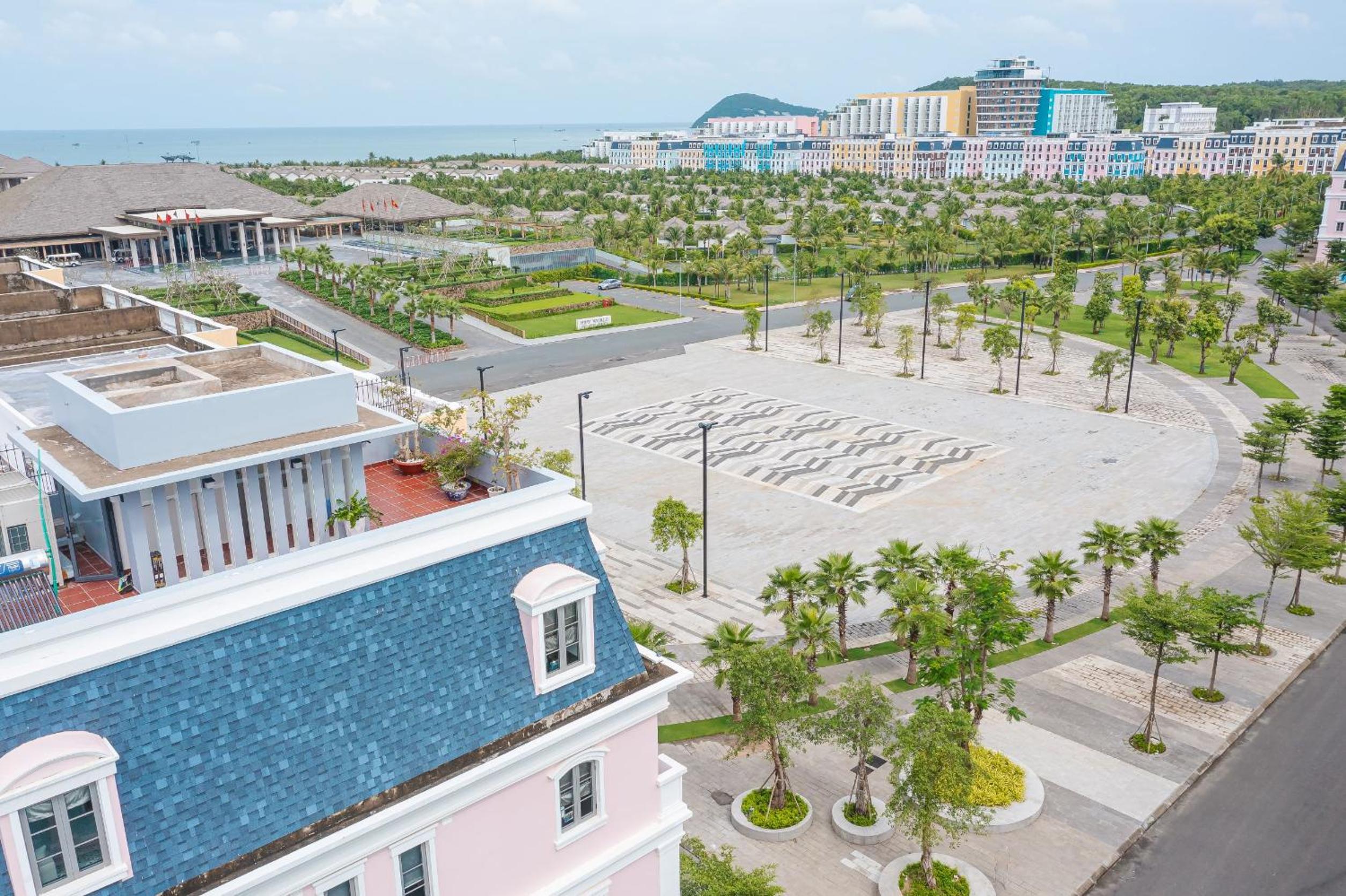В целом район новый, построено много зданий, они стоят пока пустые. В некоторых уже делается ремонт под отели. От соседнего отеля в 100 метрах (New World Phu Quoc Resort) ходят бесплатные автобусы до Sun World (на канатную дорогу).