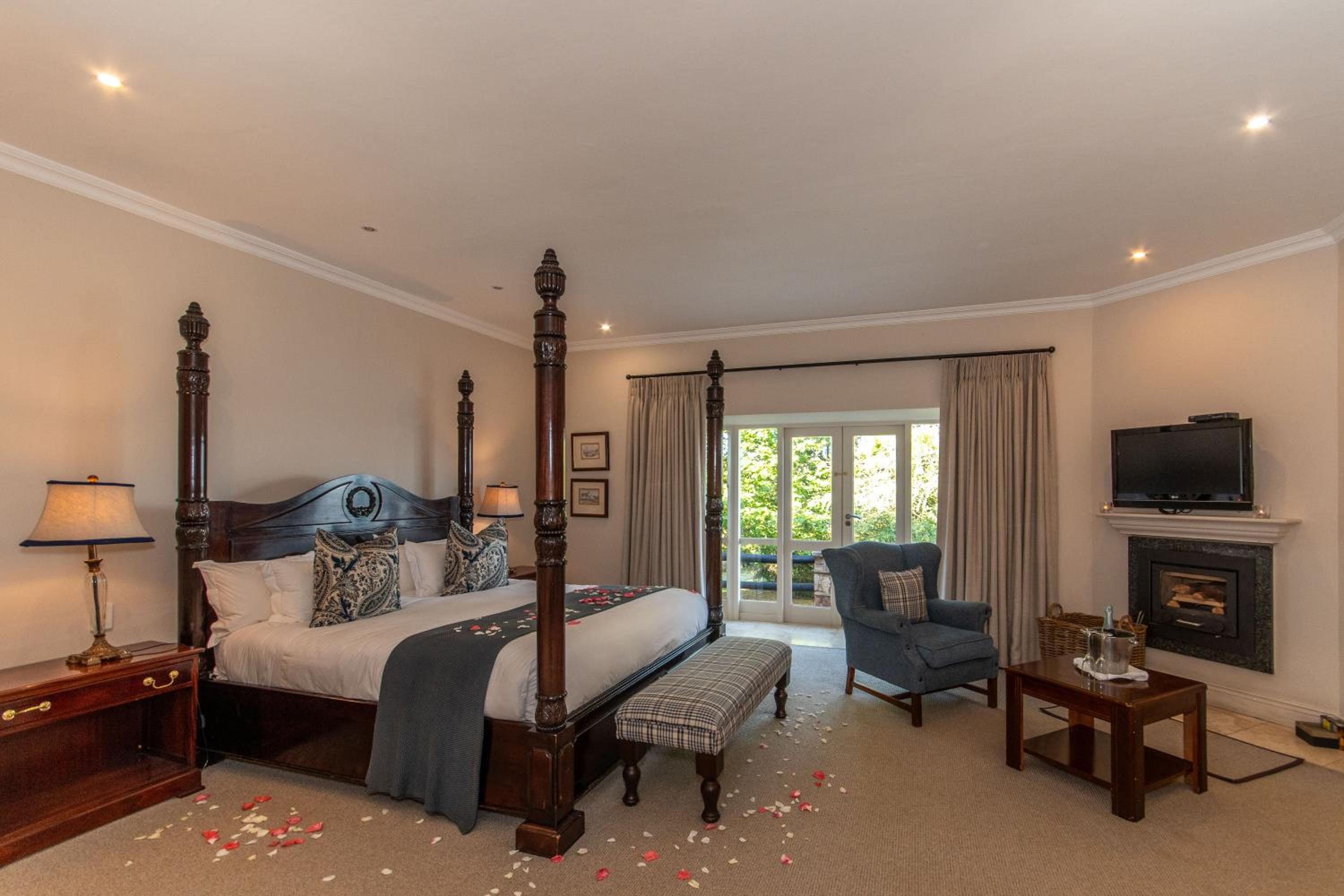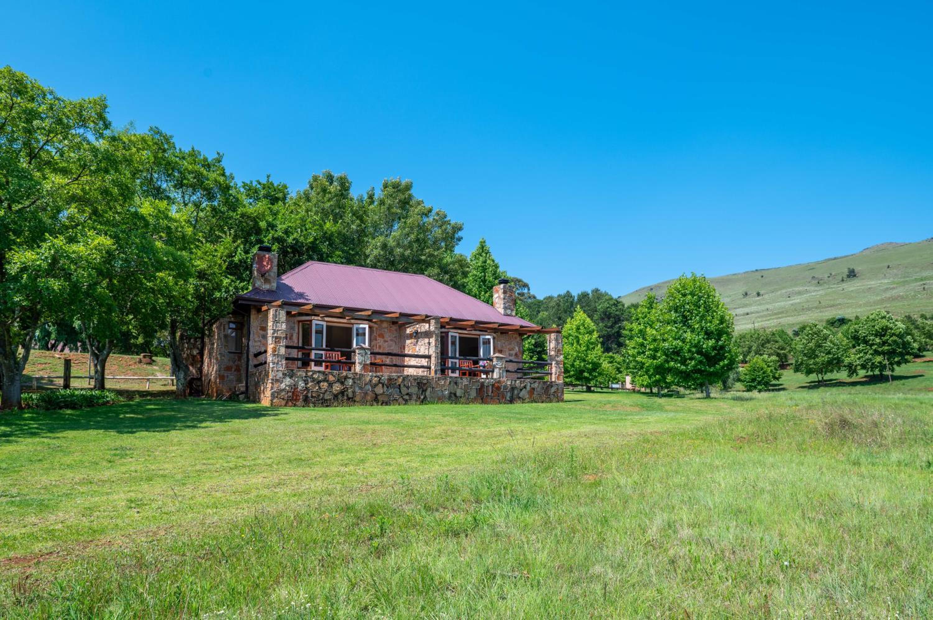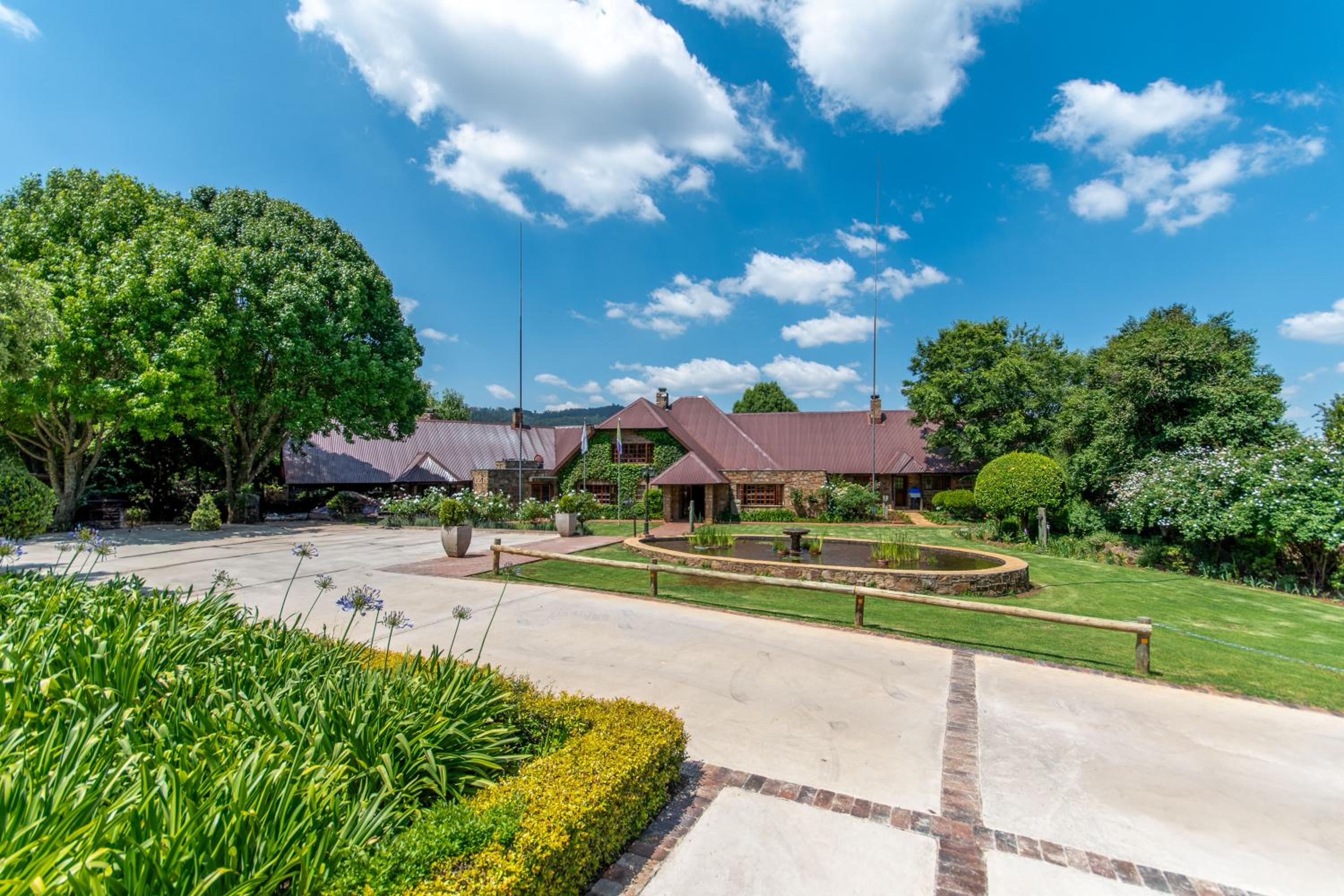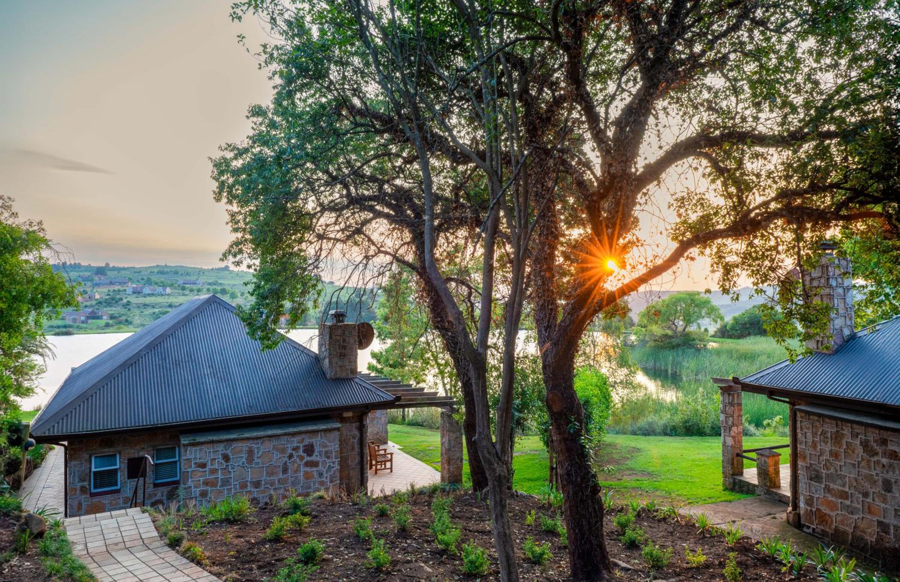 Nestled in the scenic Mpumalanga hills near Dullstroom, Walkersons Hotel & Spa offers a charming escape with cozy fireplaces and traditional thatched roofs.