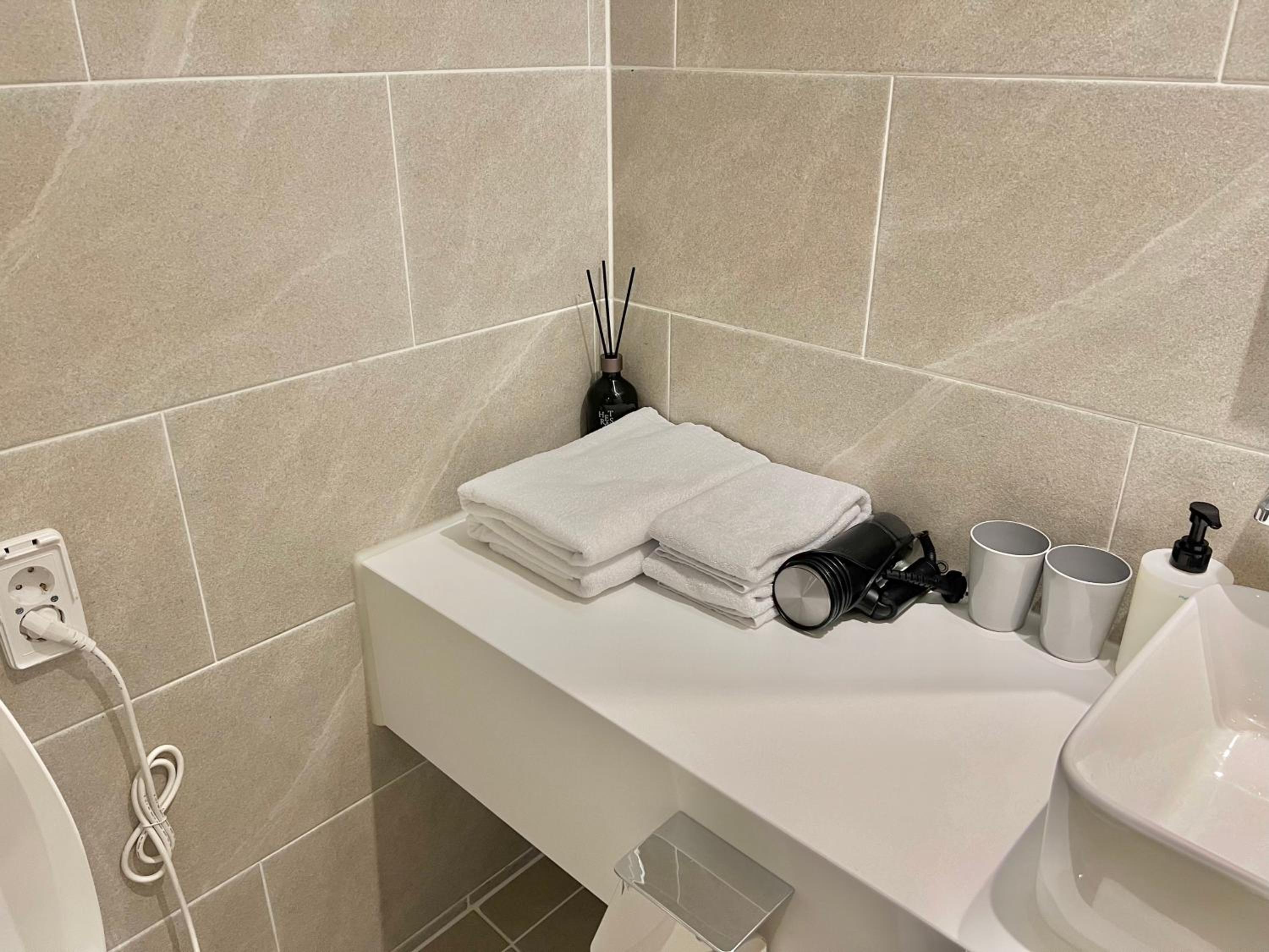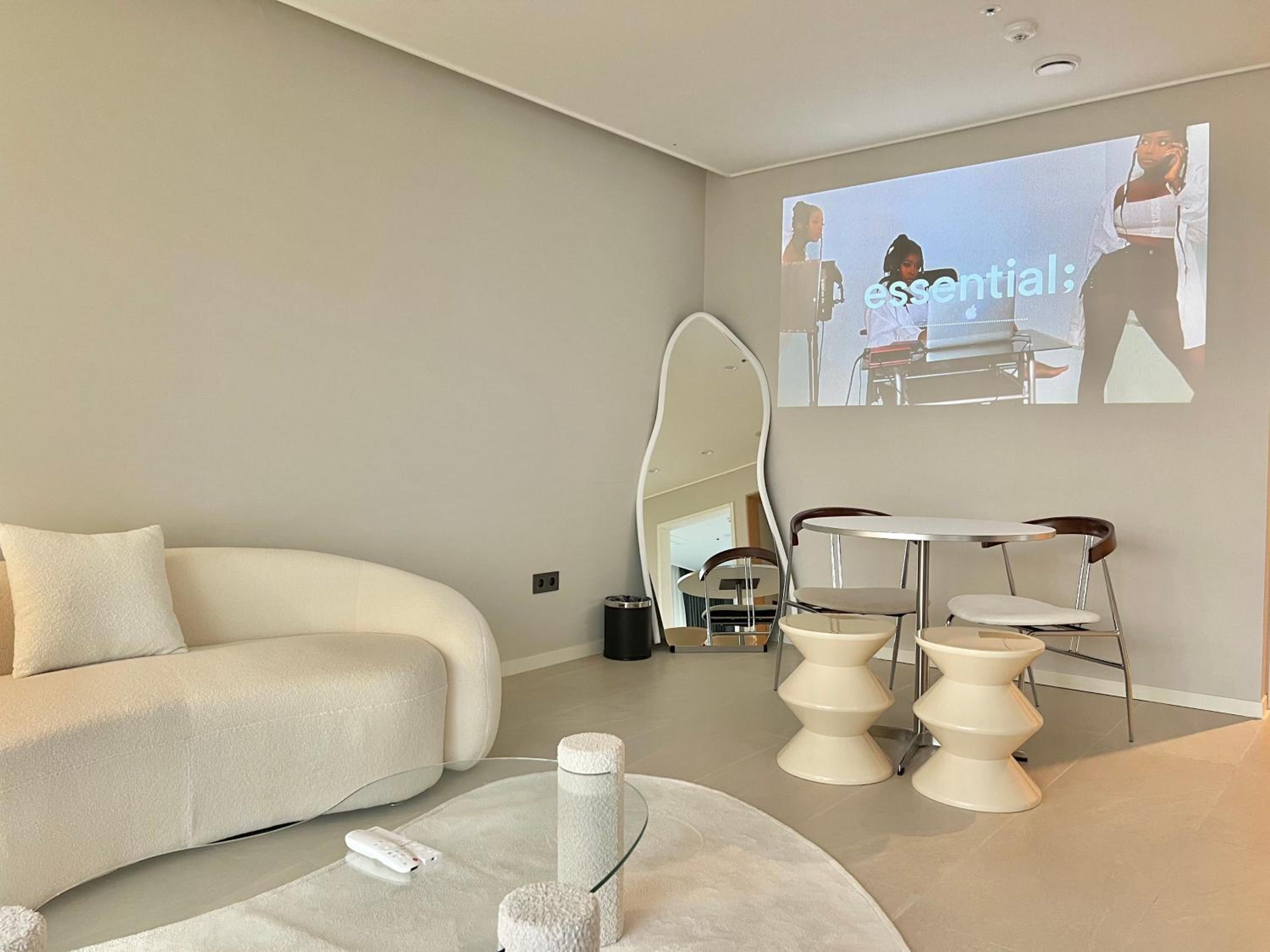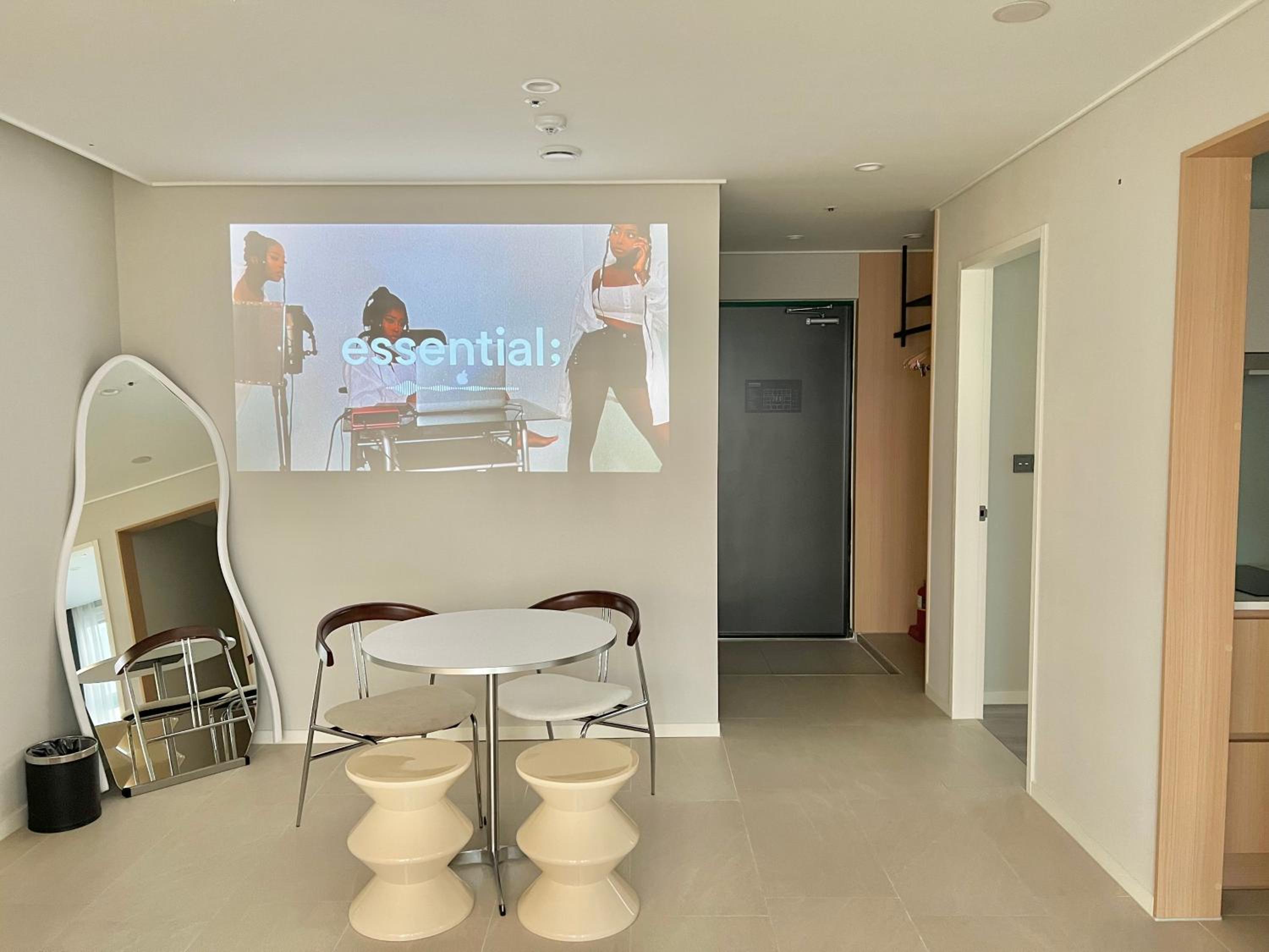 The projector was a bit hard to use and we would have appreciated slippers in the room.