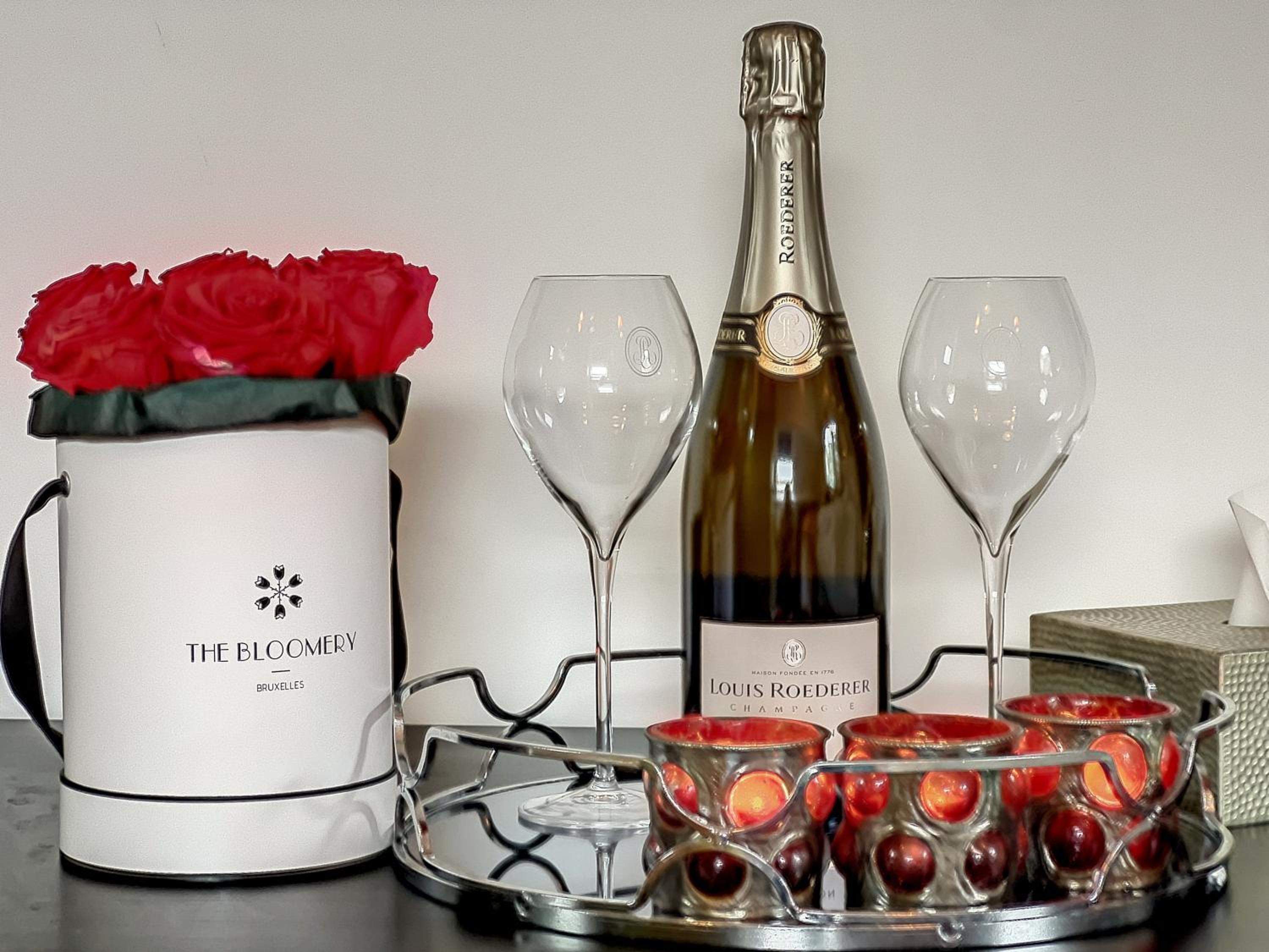 Start your day off right with a delectable breakfast spread including freshly baked pastries, bubbly champagne, and mouth-watering pancakes, all served with a view of the tranquil garden.
