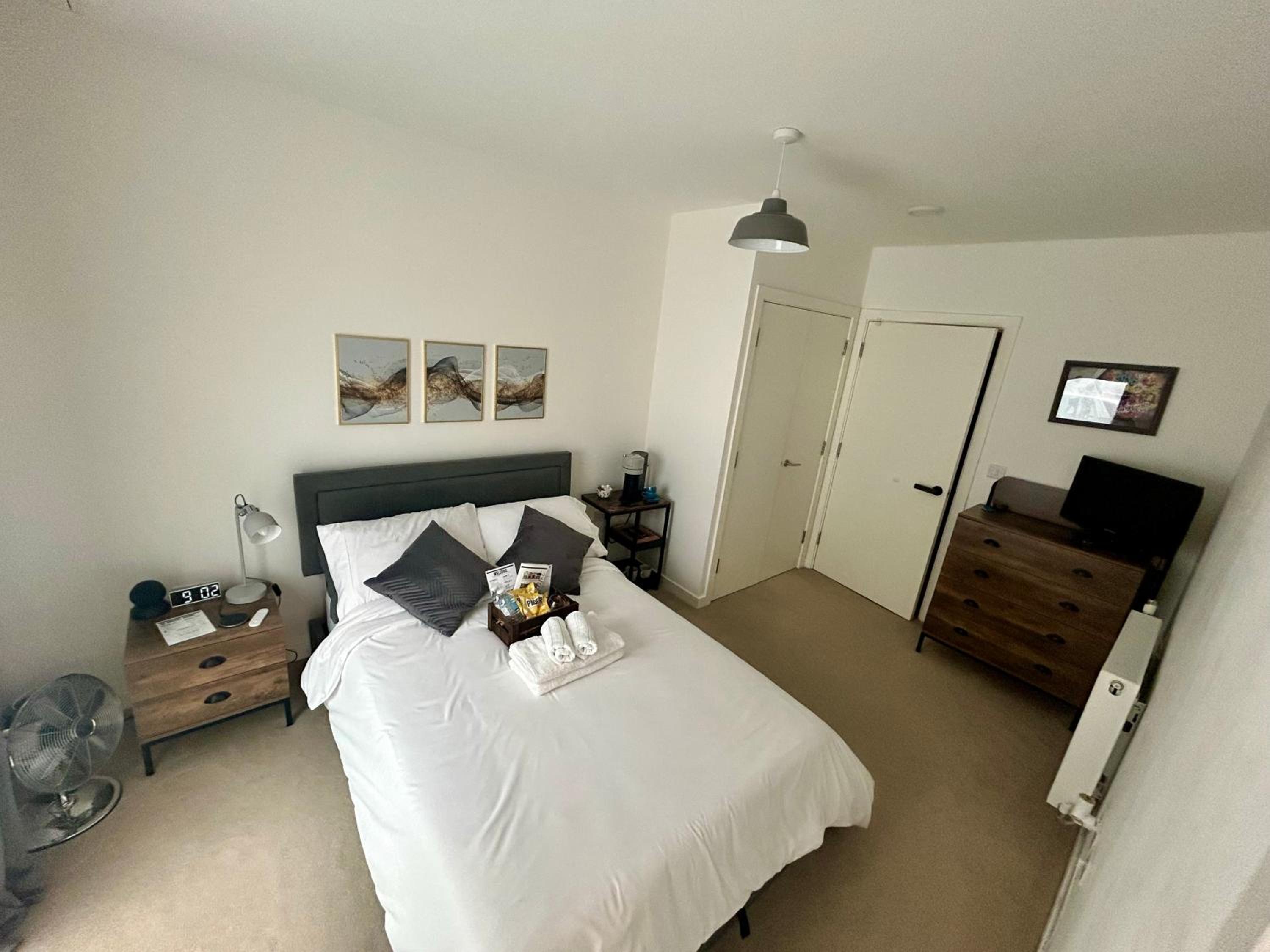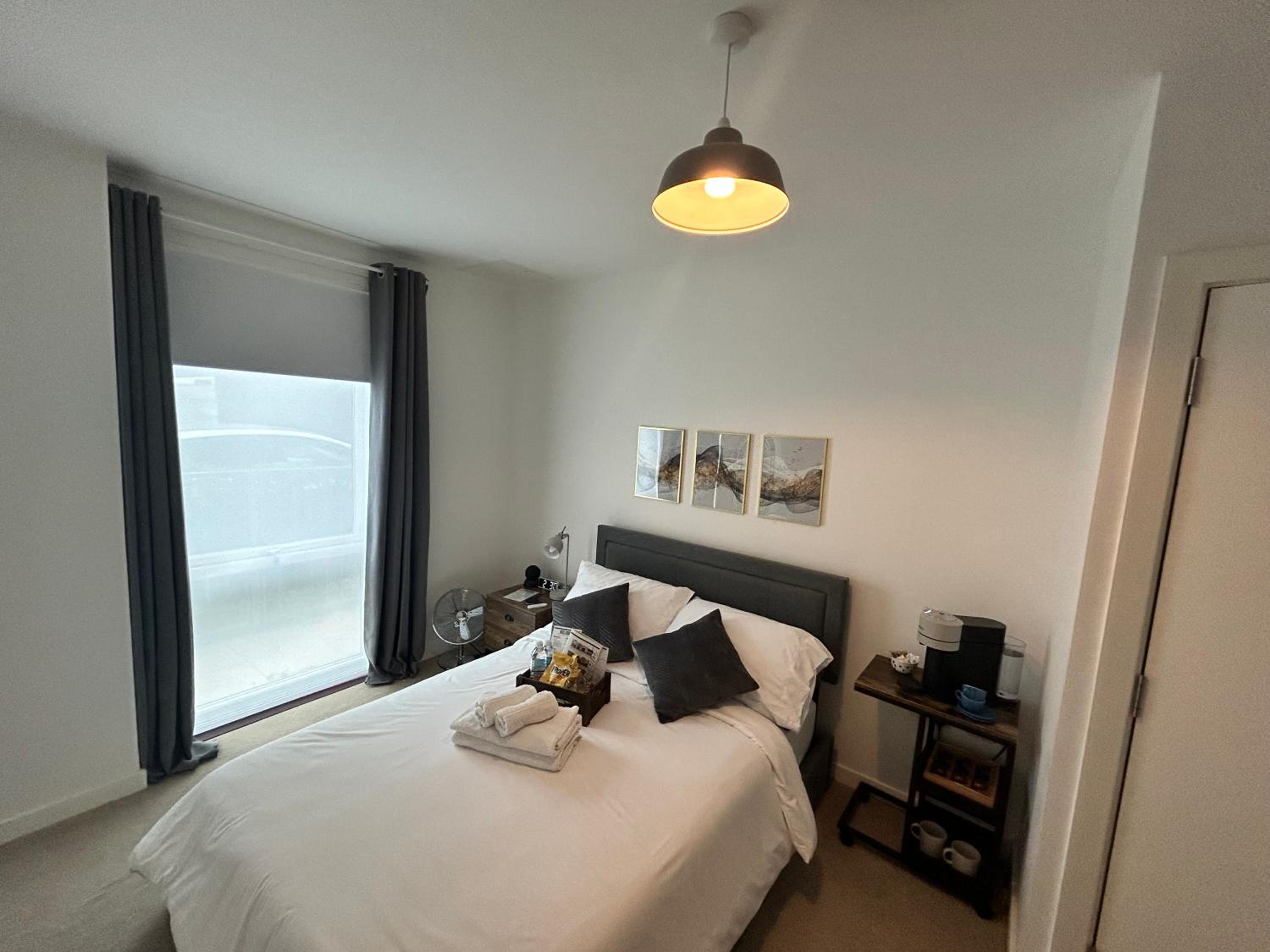 Experience a stay at My Apartment Brixton offering a modern double room with a private bathroom, equipped with a flat-screen TV, kitchen with essential appliances, and complimentary toiletries.
