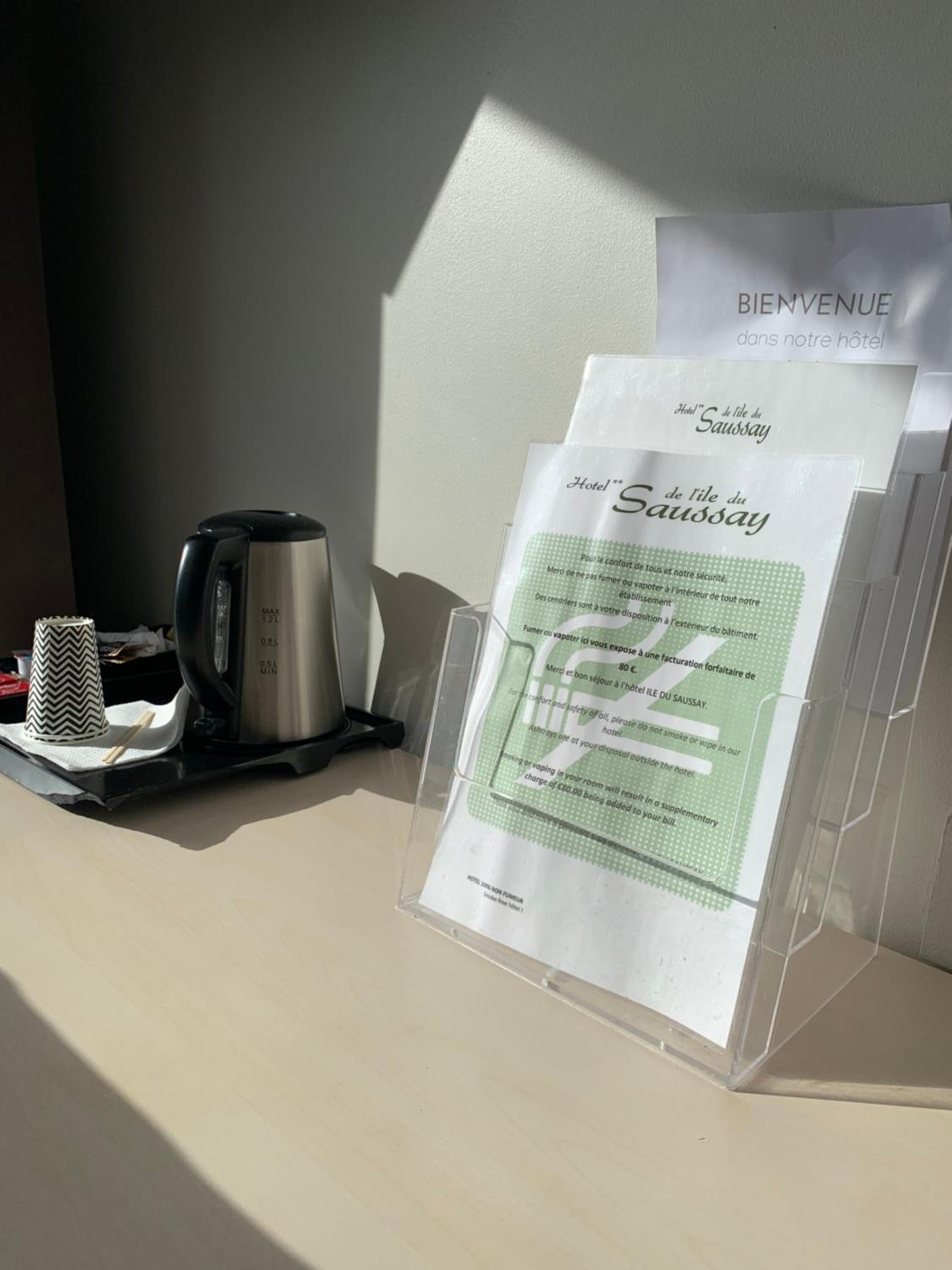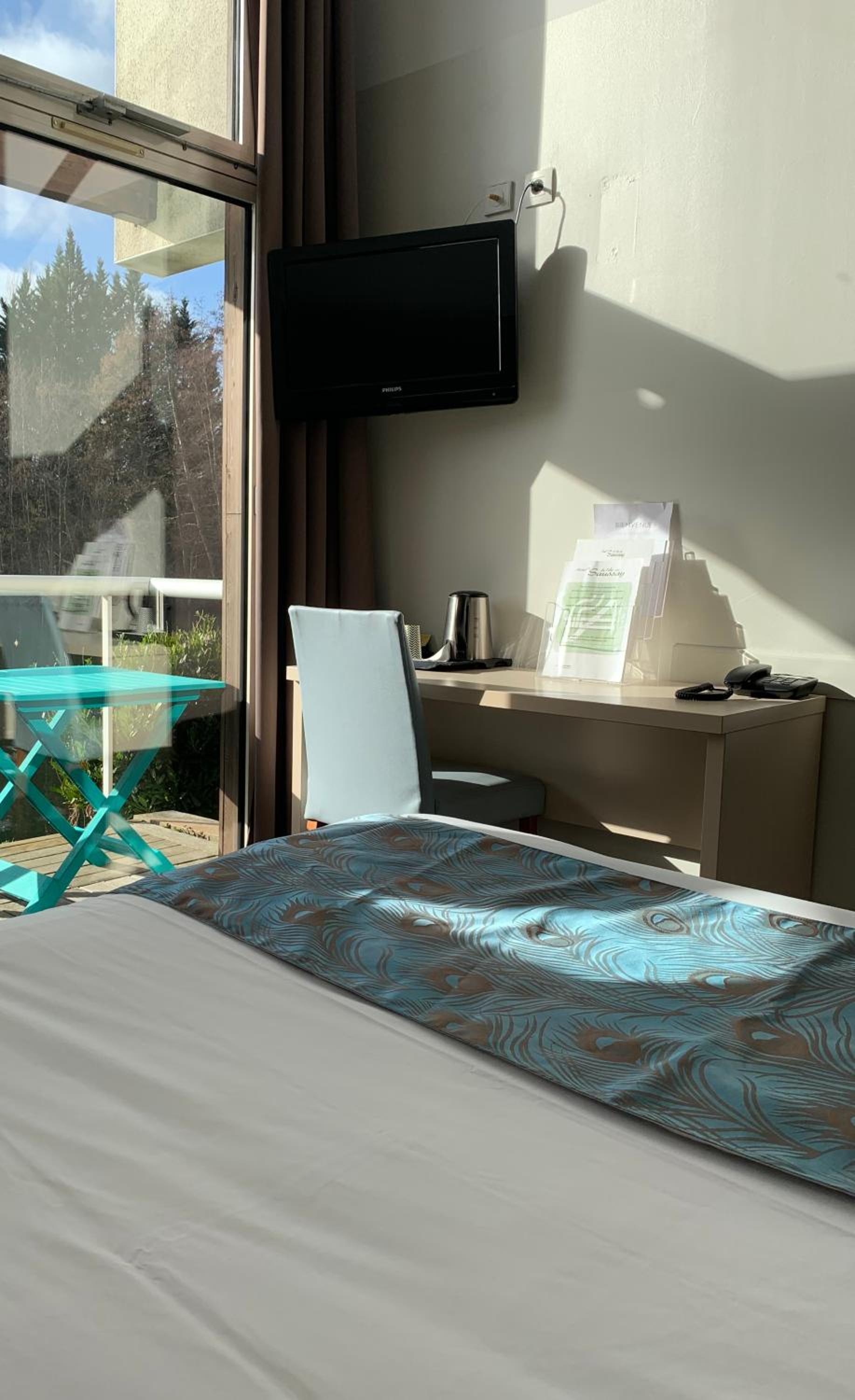 Each guest room at The Saussay features organic toiletries, a TV, free Wi-Fi, and a balcony for a touch of outdoor relaxation.
