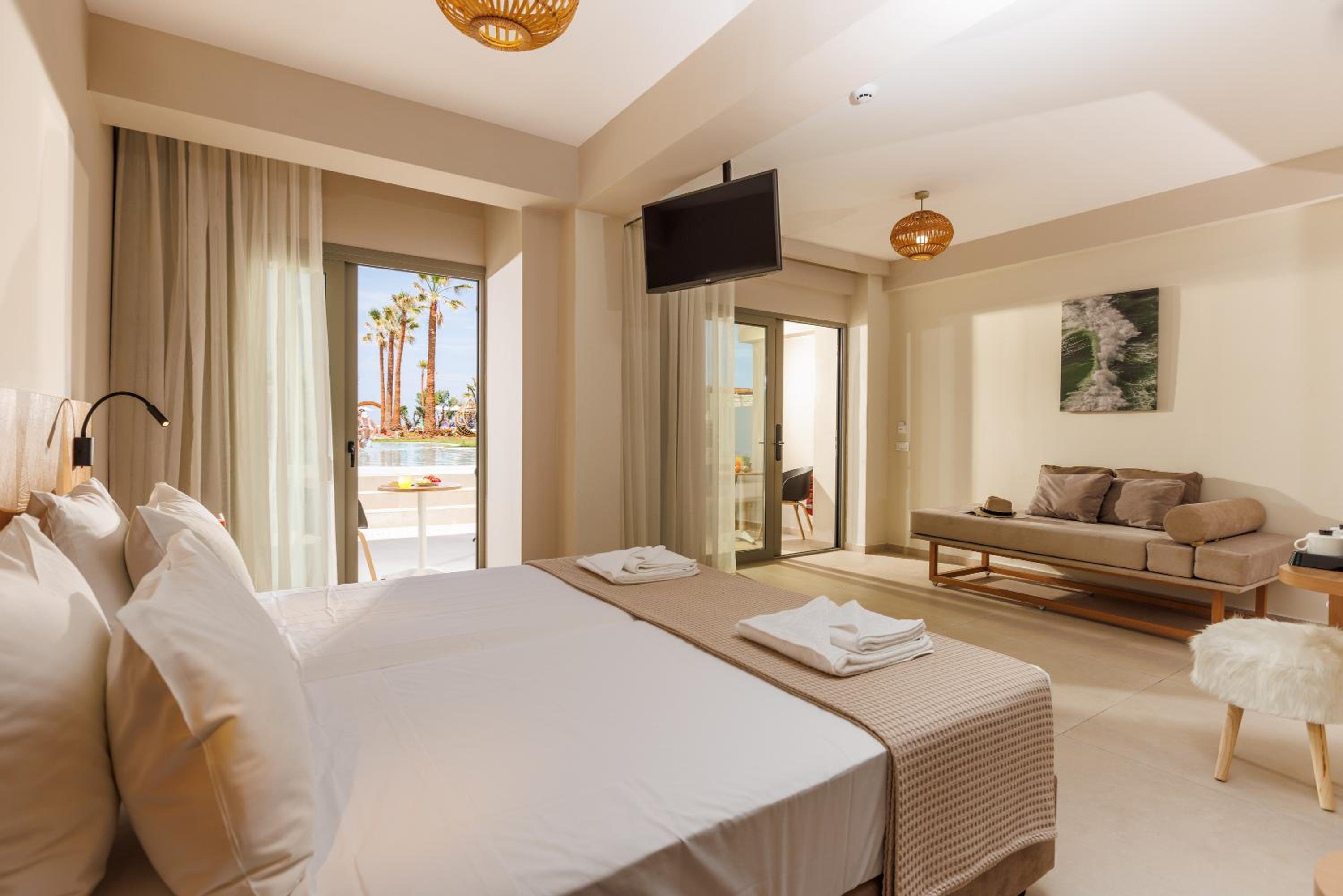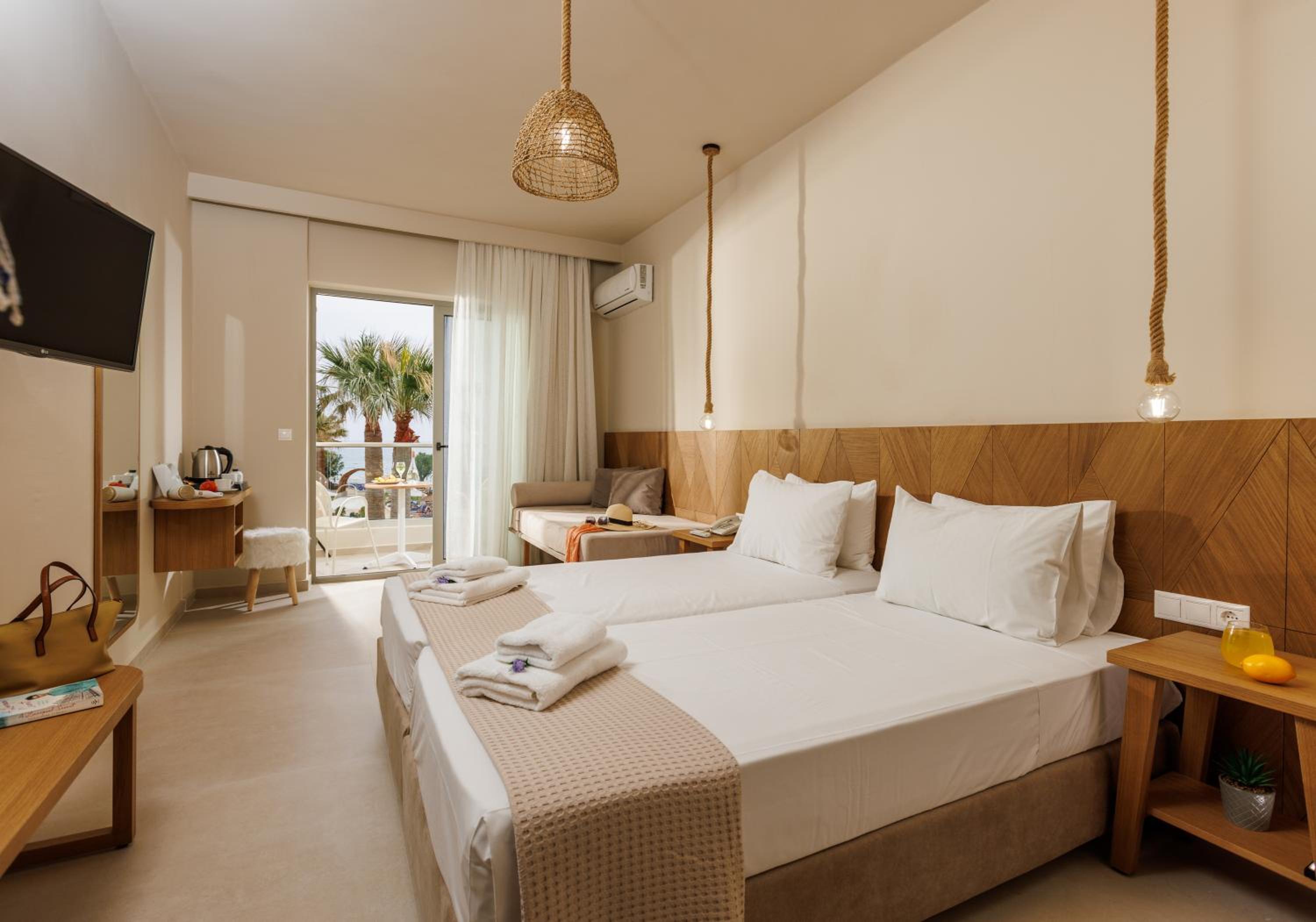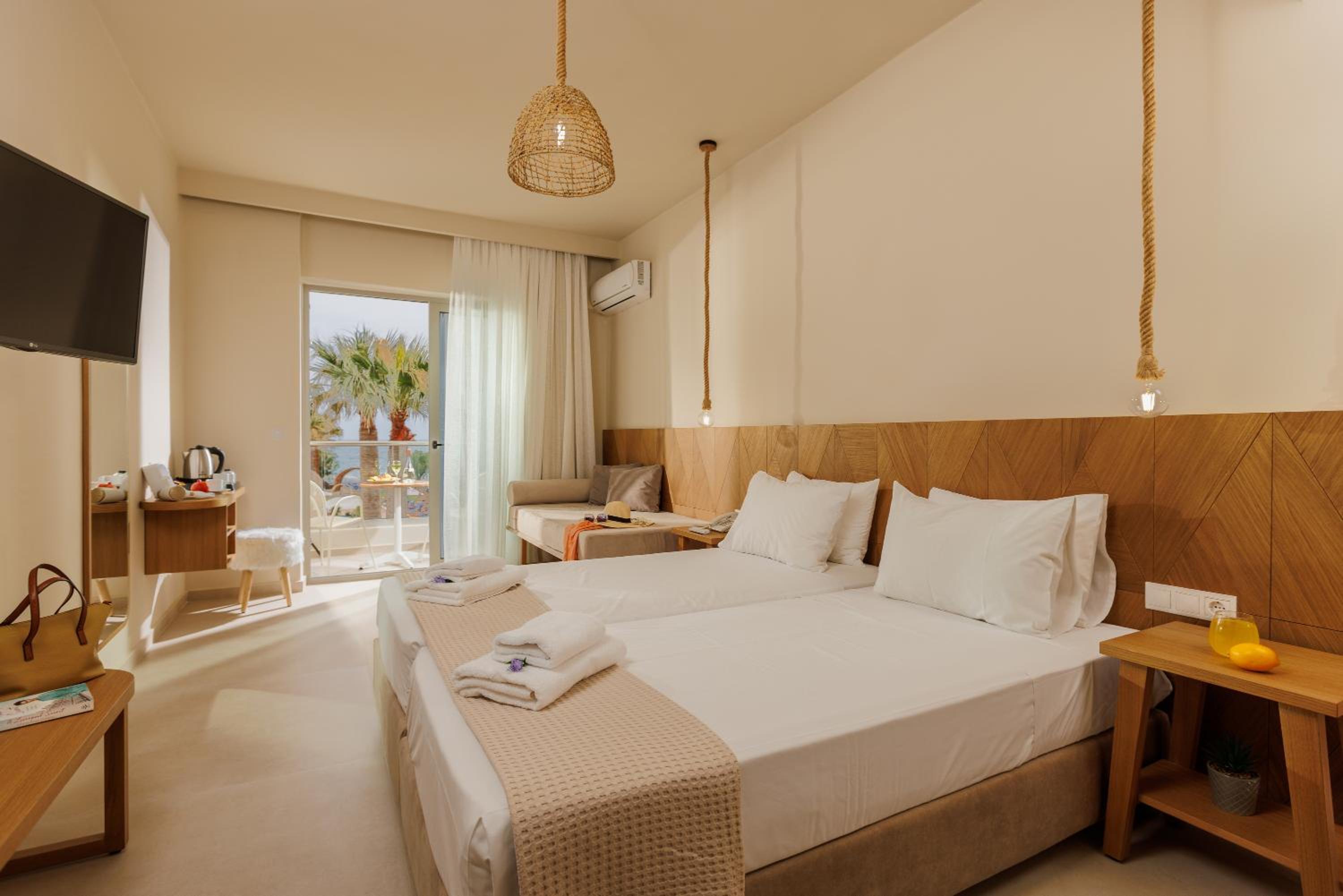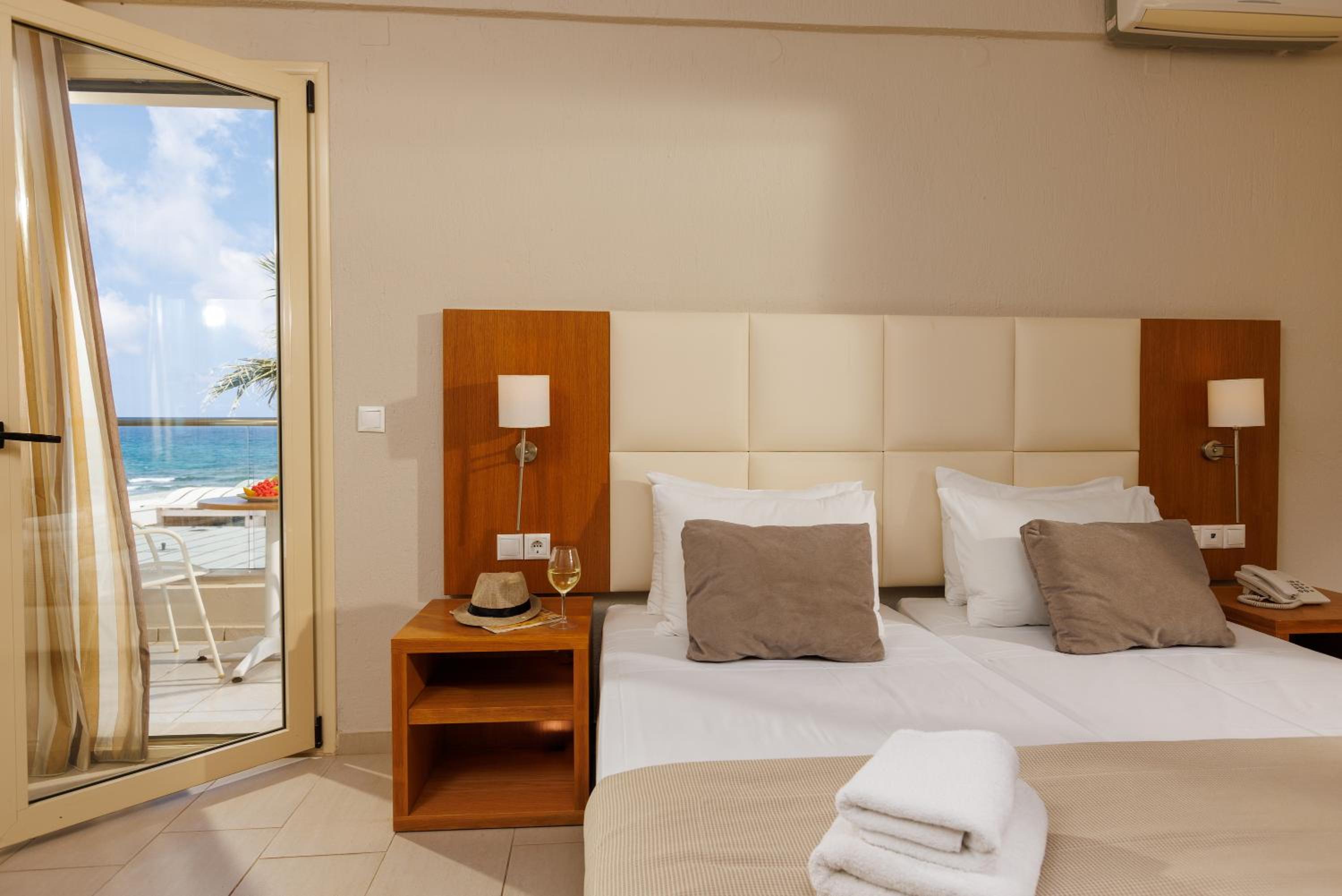 Experience elegance at Malia Bay, located within 1 km of the Minoan Palace. The bright rooms with balconies offer views of the sea, pool, or garden. Enjoy the 2 pools and direct beach access, perfect for relaxation.