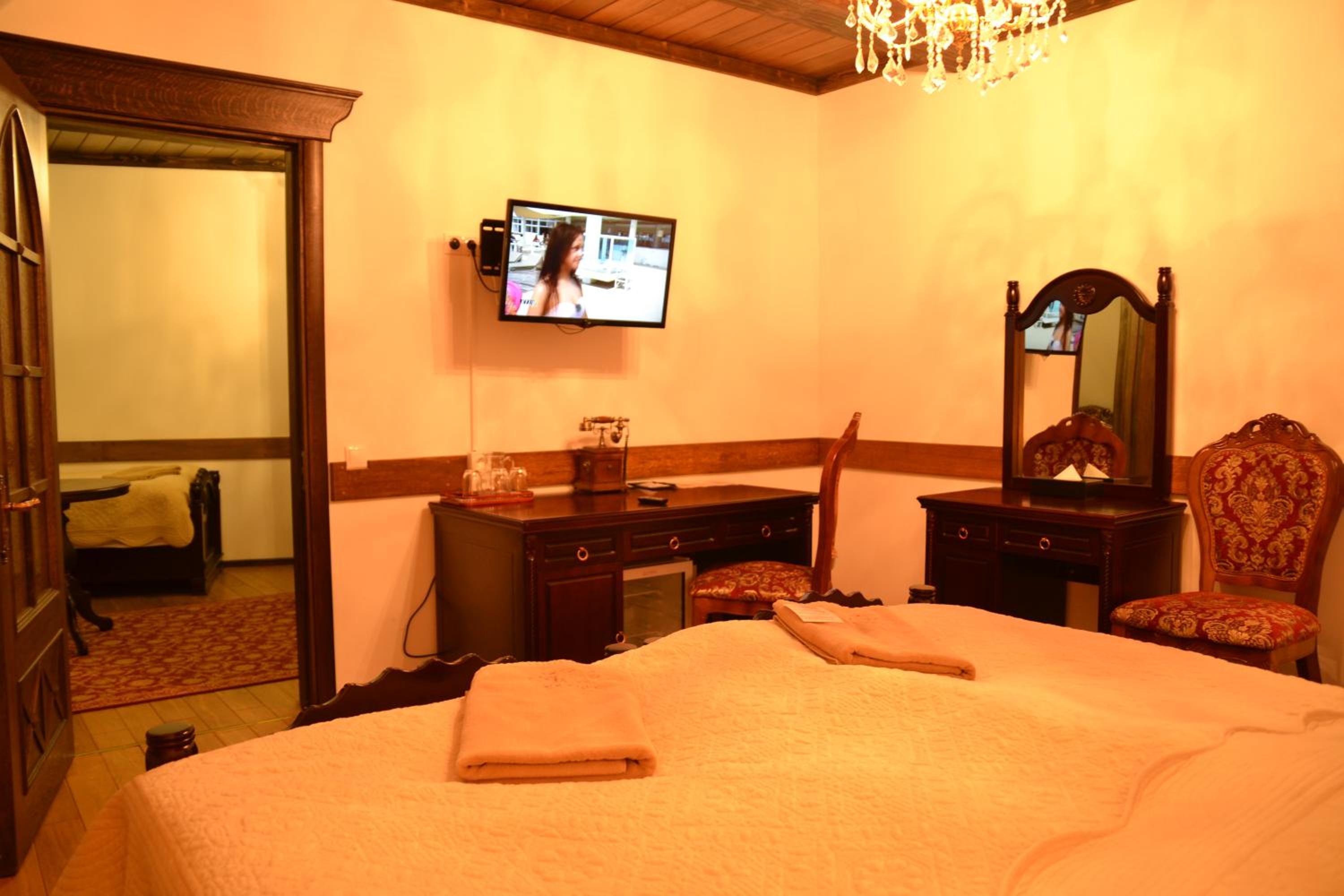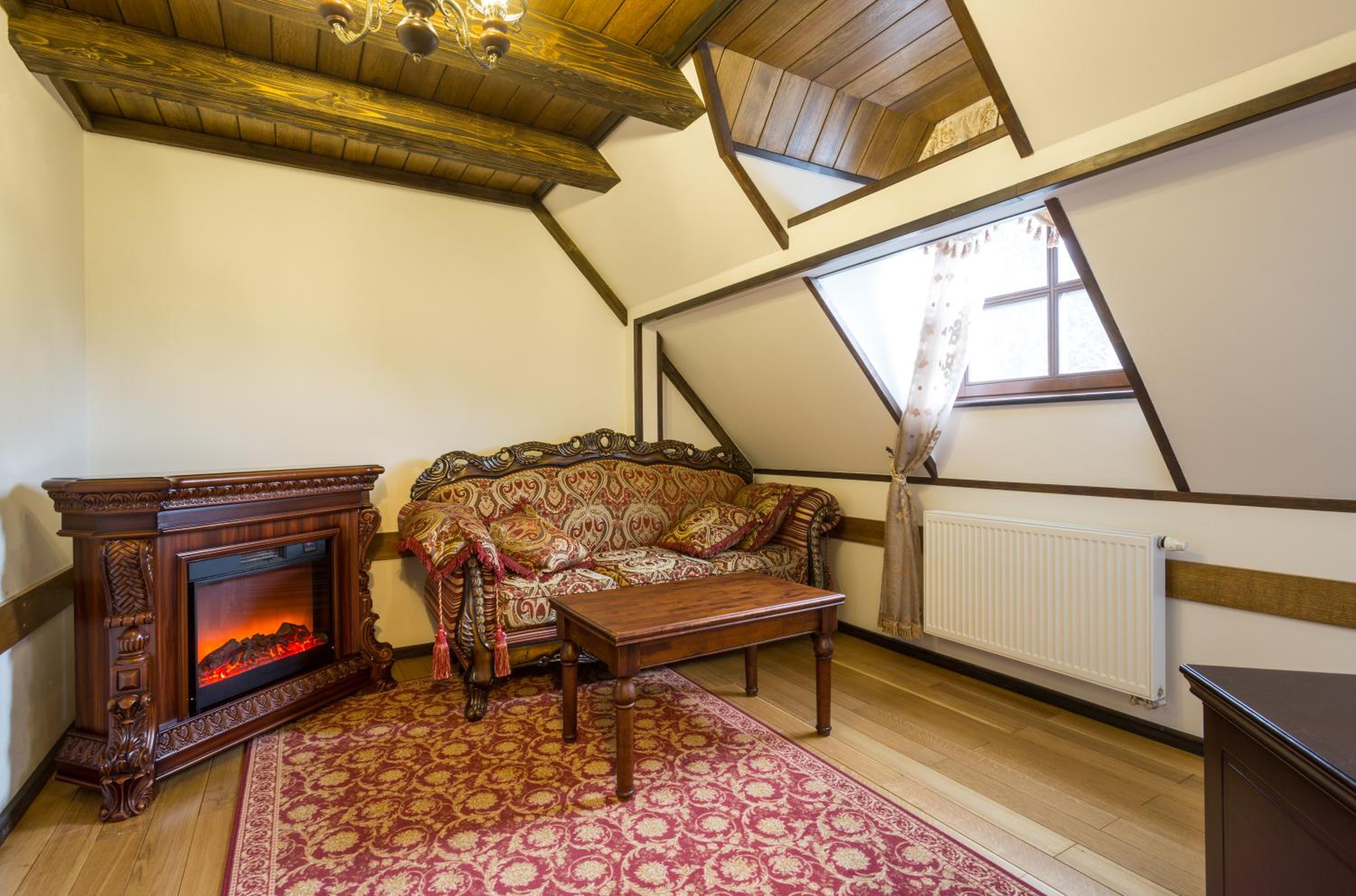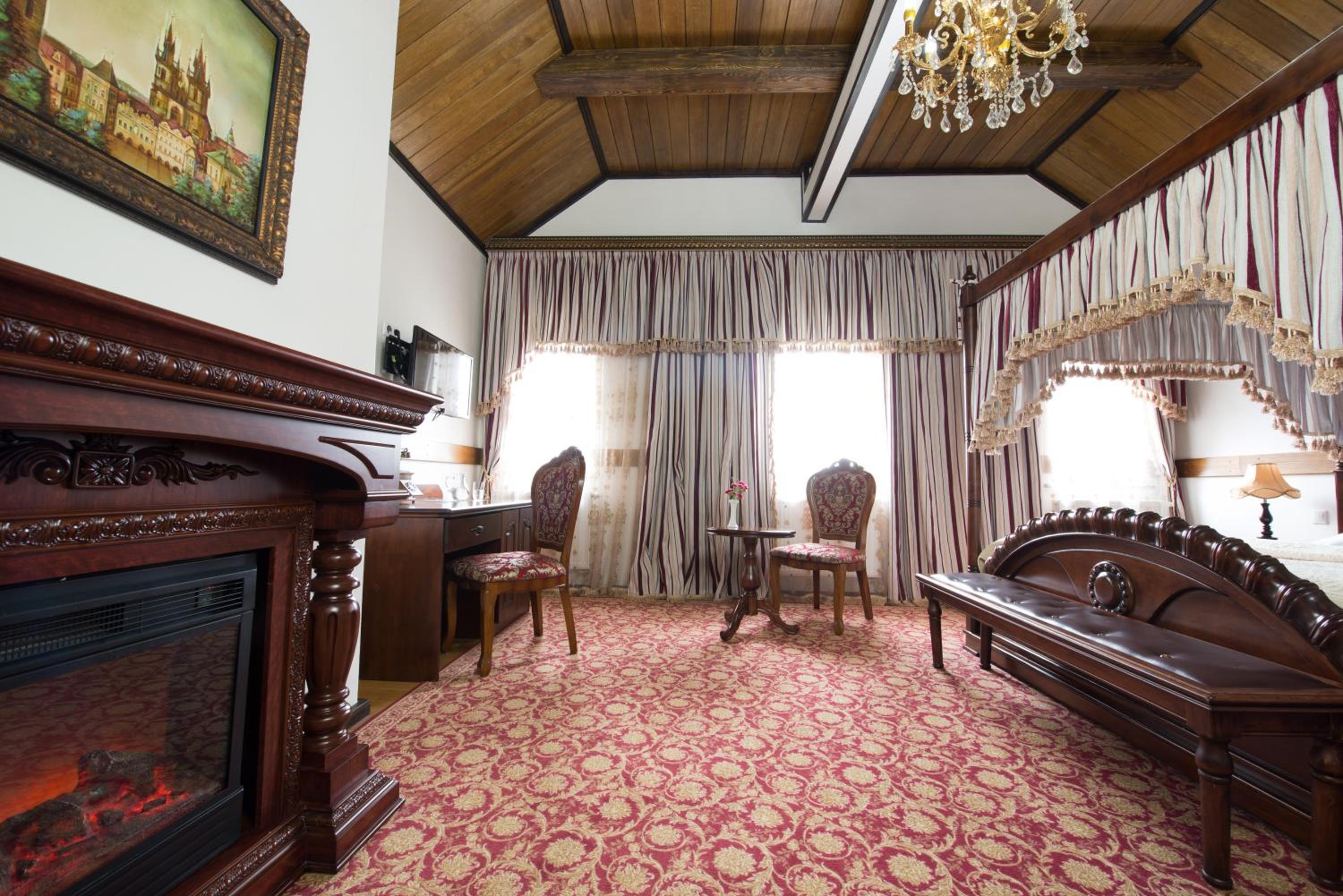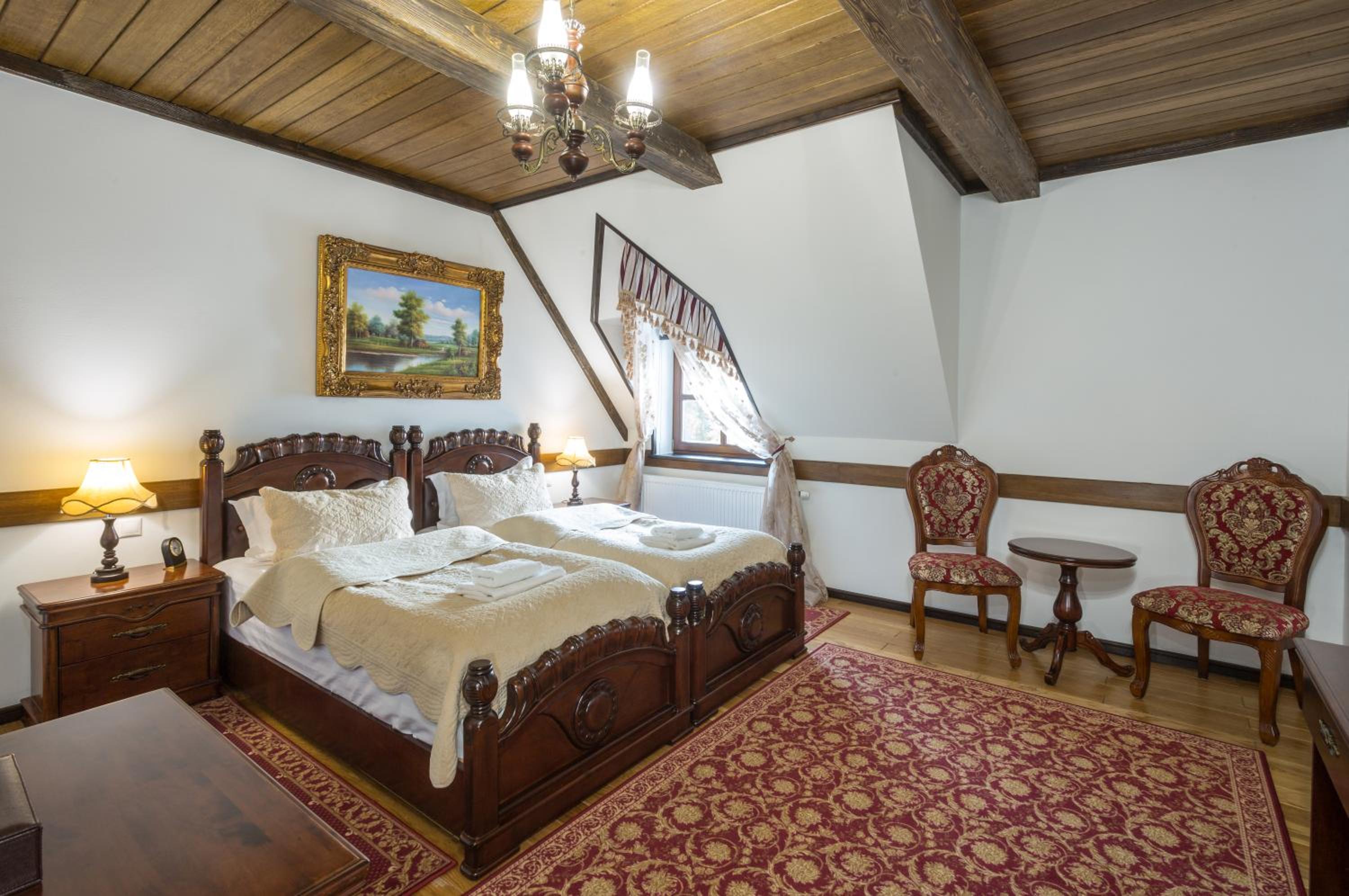 - Очень красивый замок, внутри атмосферно. Номер просторный, с классным паркетом. Сначала было жарко, но батареи легко отрегулировали. В номере достаточно места: три разных стола, несколько кресел, тумбочки.