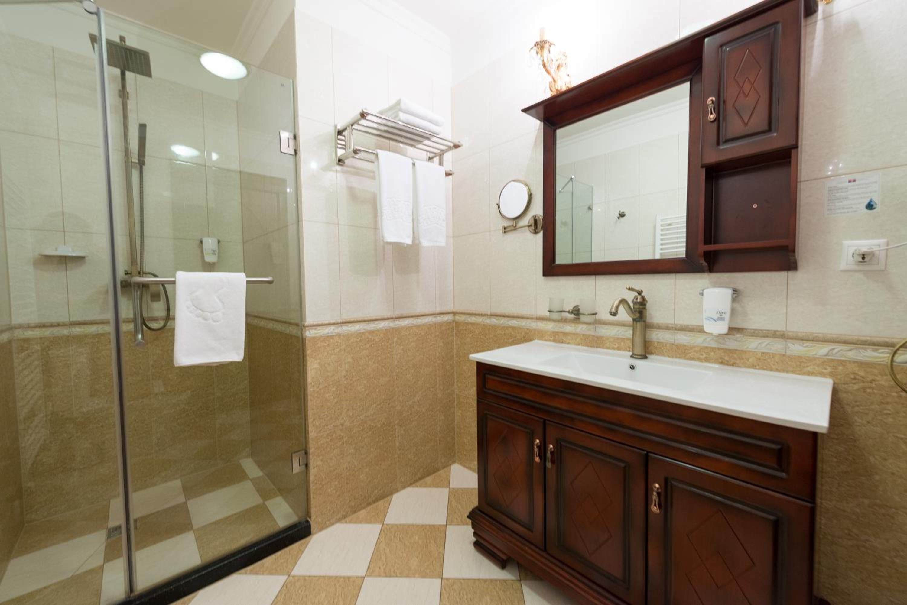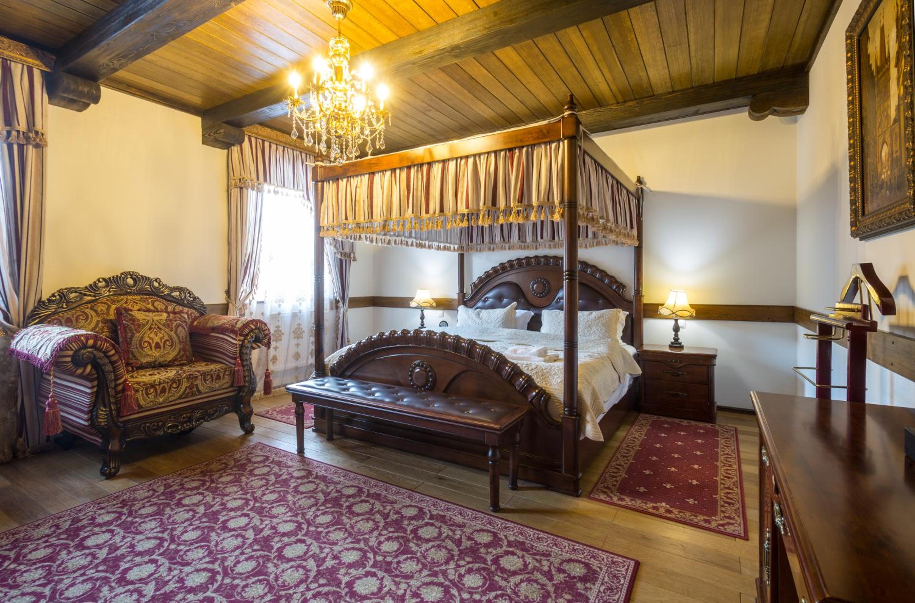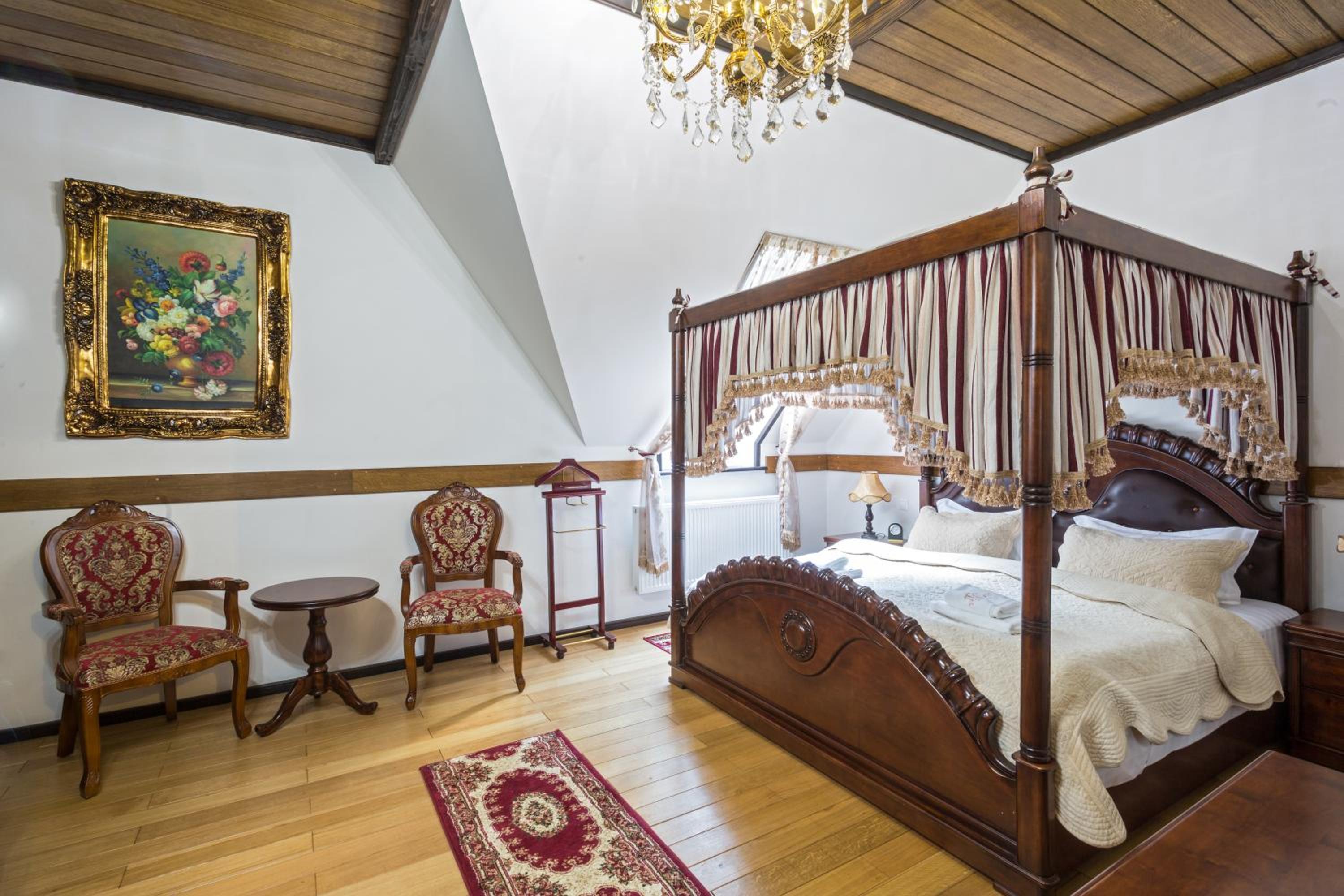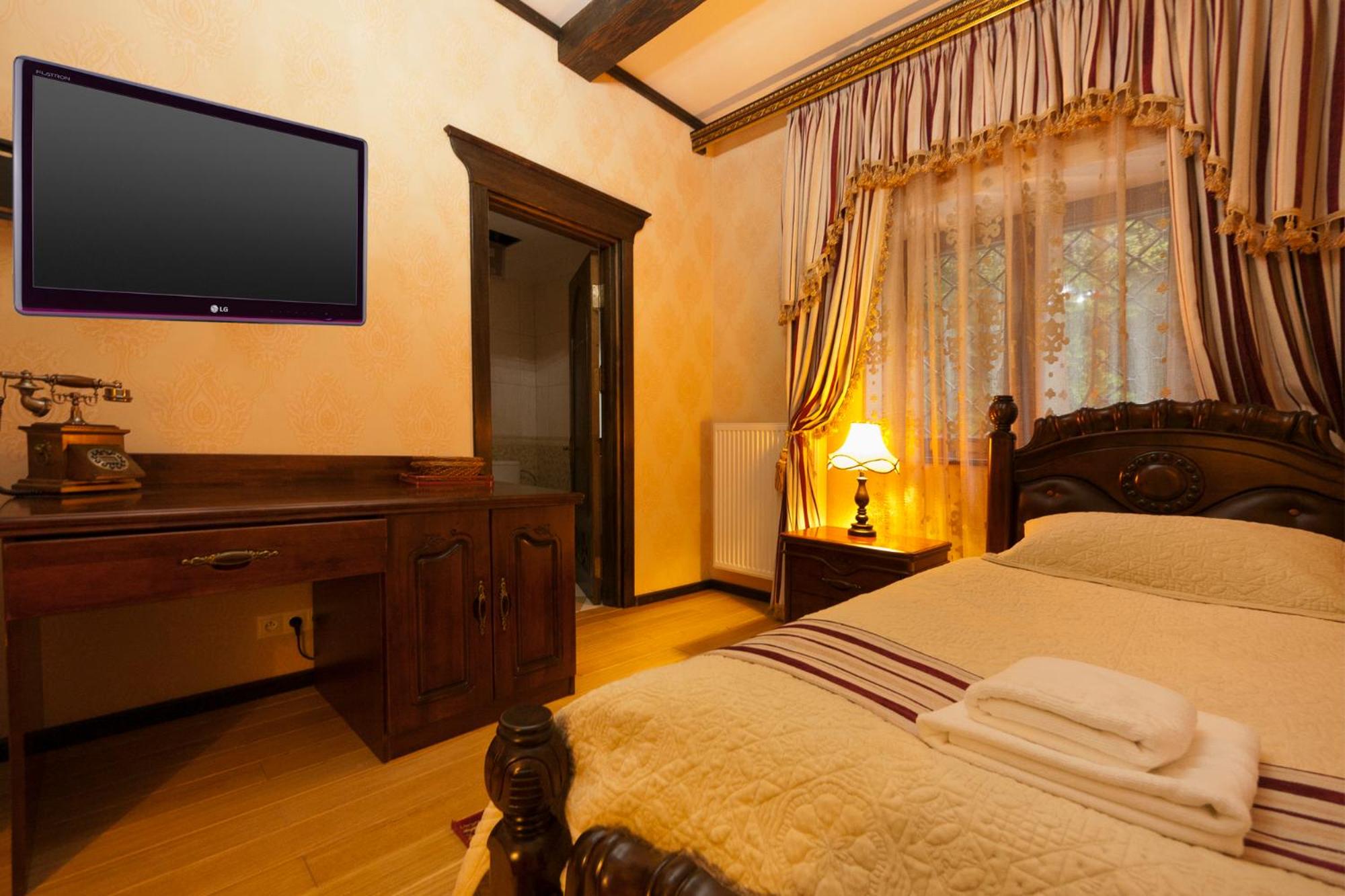 - Очень красивый замок, внутри атмосферно. Номер просторный, с классным паркетом. Сначала было жарко, но батареи легко отрегулировали. В номере достаточно места: три разных стола, несколько кресел, тумбочки.