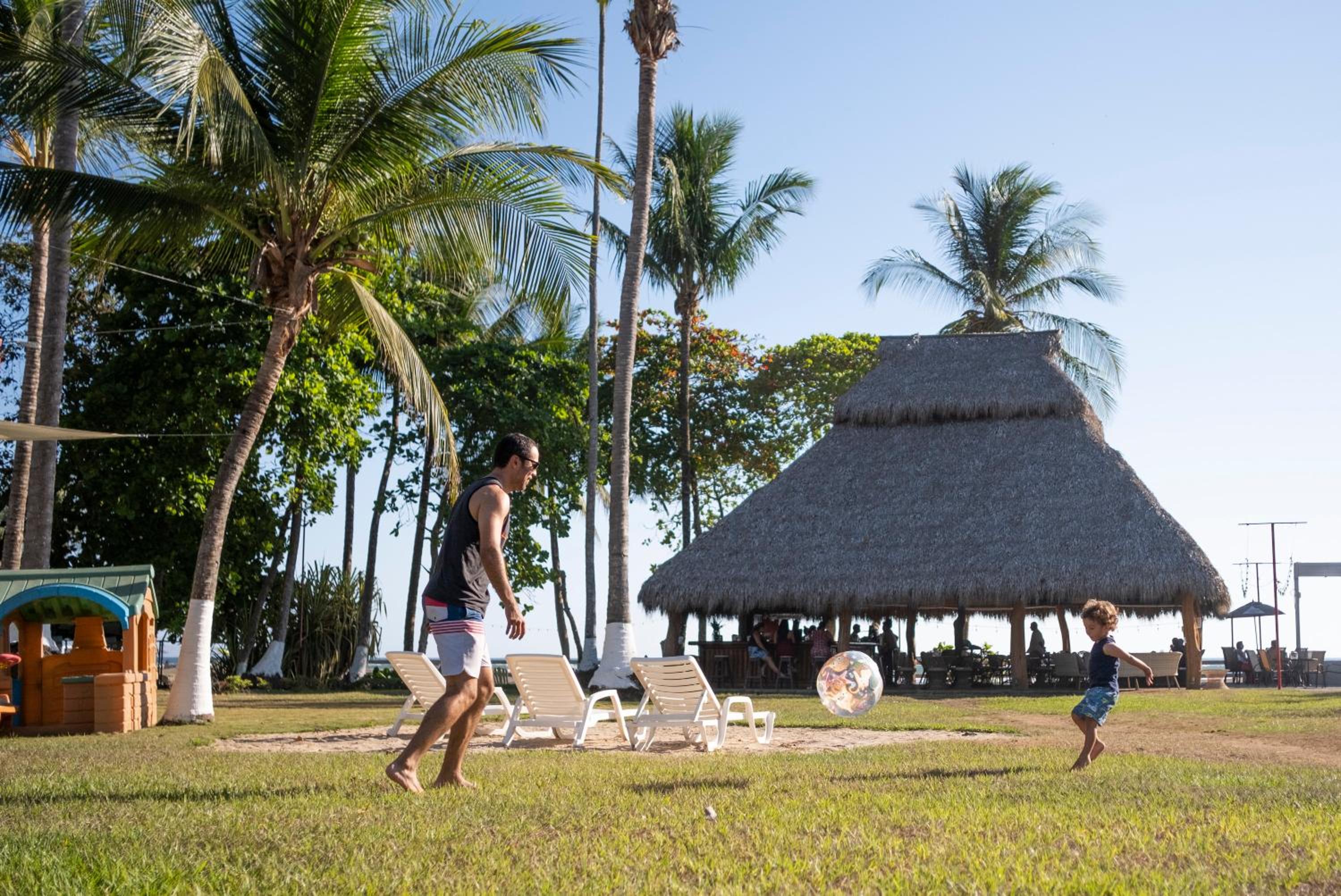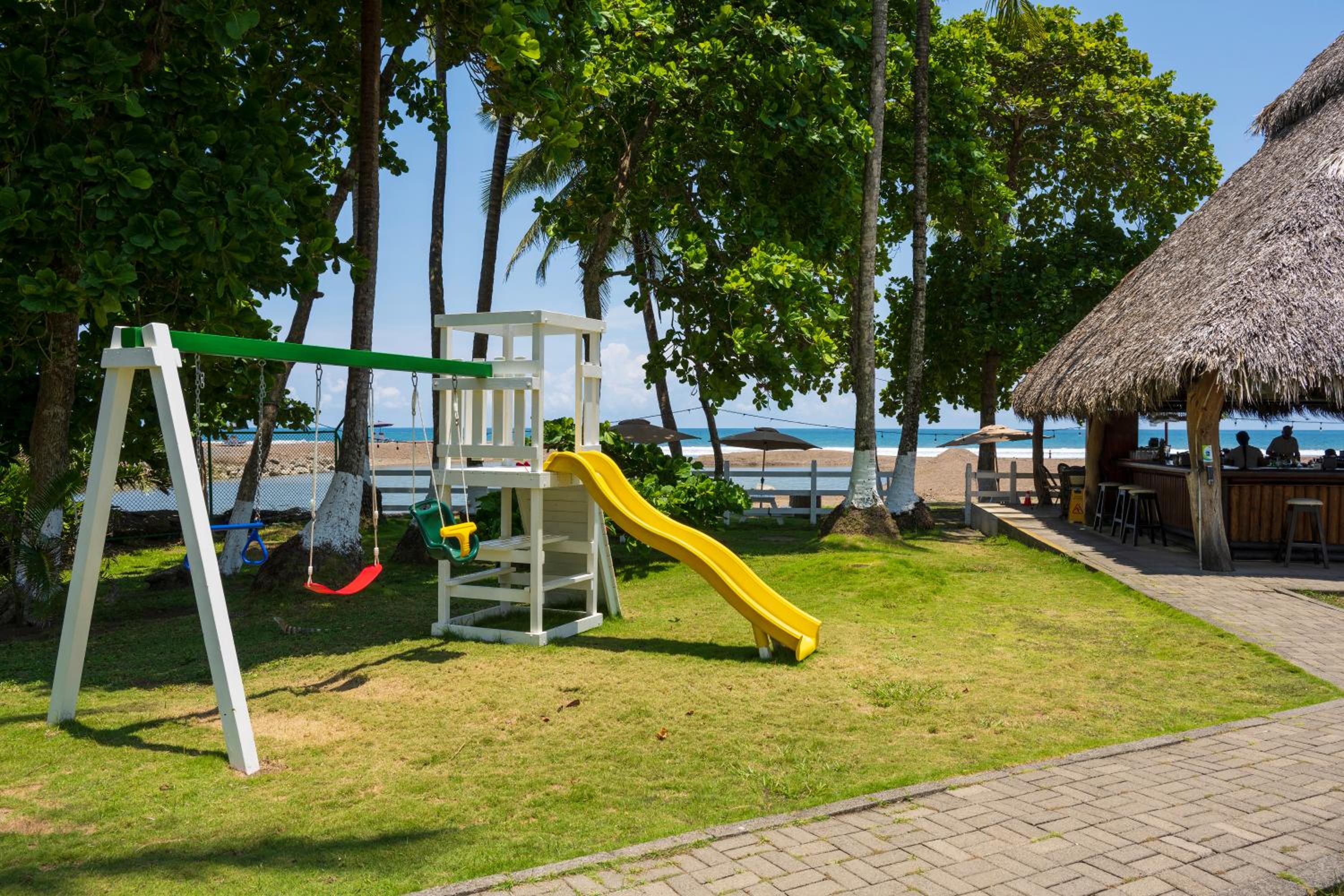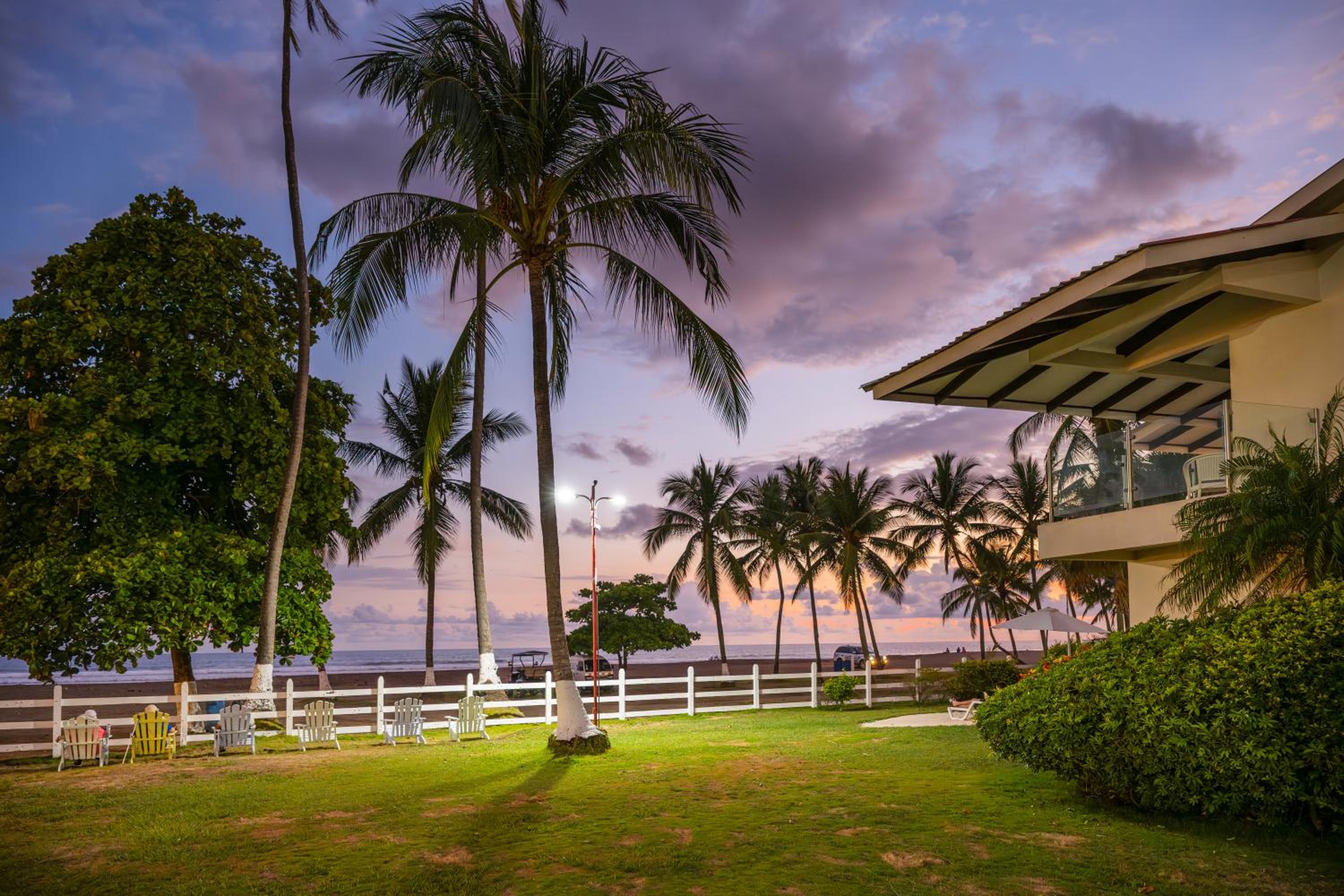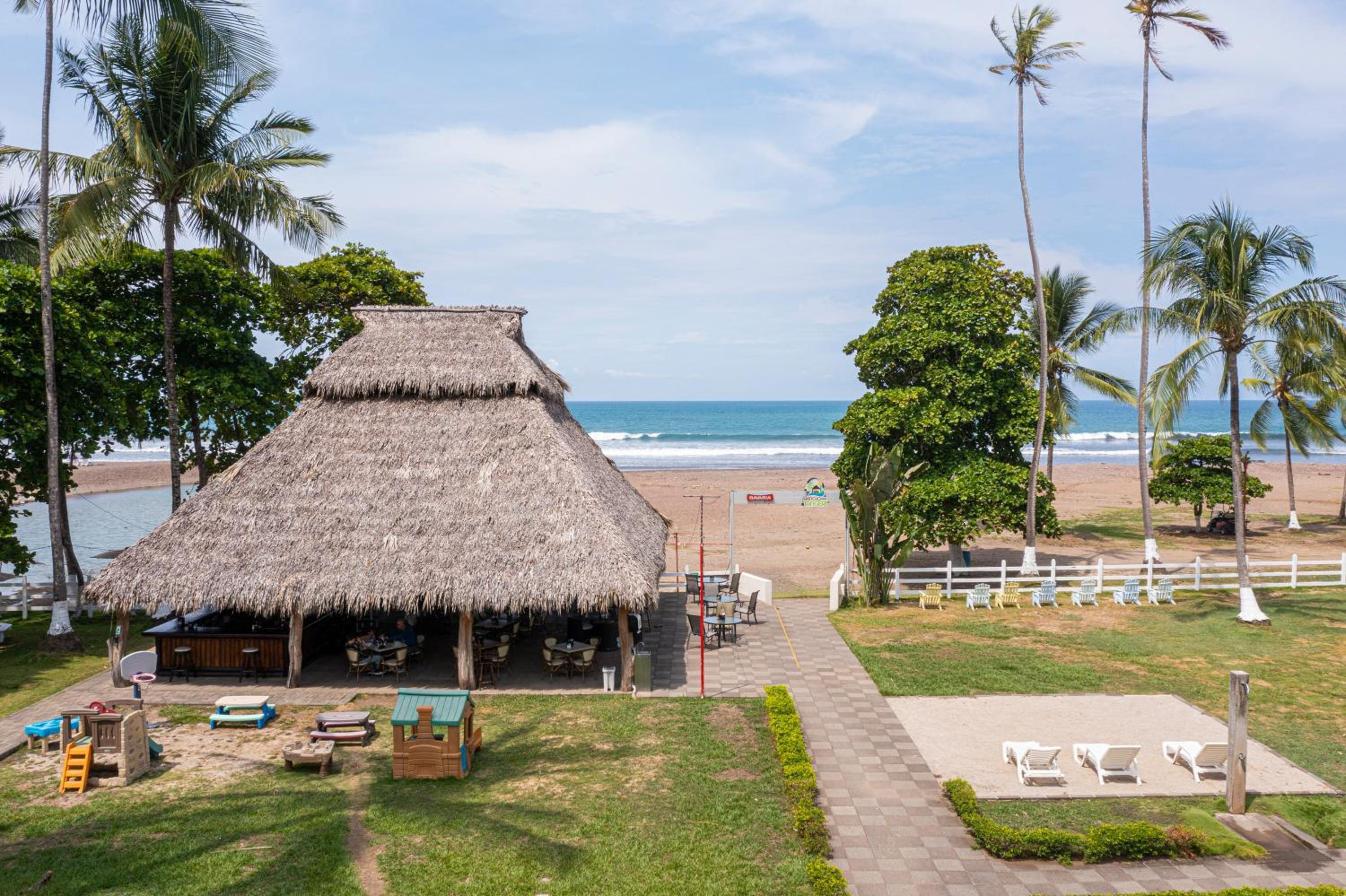 the staff is amazing!! the breakfast is great. The location is amazing, right on the beach and you also if you walk out of the hotel, you are in the Main Street with bar/restaurants and shops. You don't hear any noise from the Main Street. They have 3 pools, the restaurant is very good and has a nice atmosphere under a thatched roof. The beach is gorgeous and the little river next to the hotel is a great place to watch birds, there are large iguana's and little squirrels in the trees. If you do any activities the activity companies pick you up from the hotel, no need for a car in Jaco