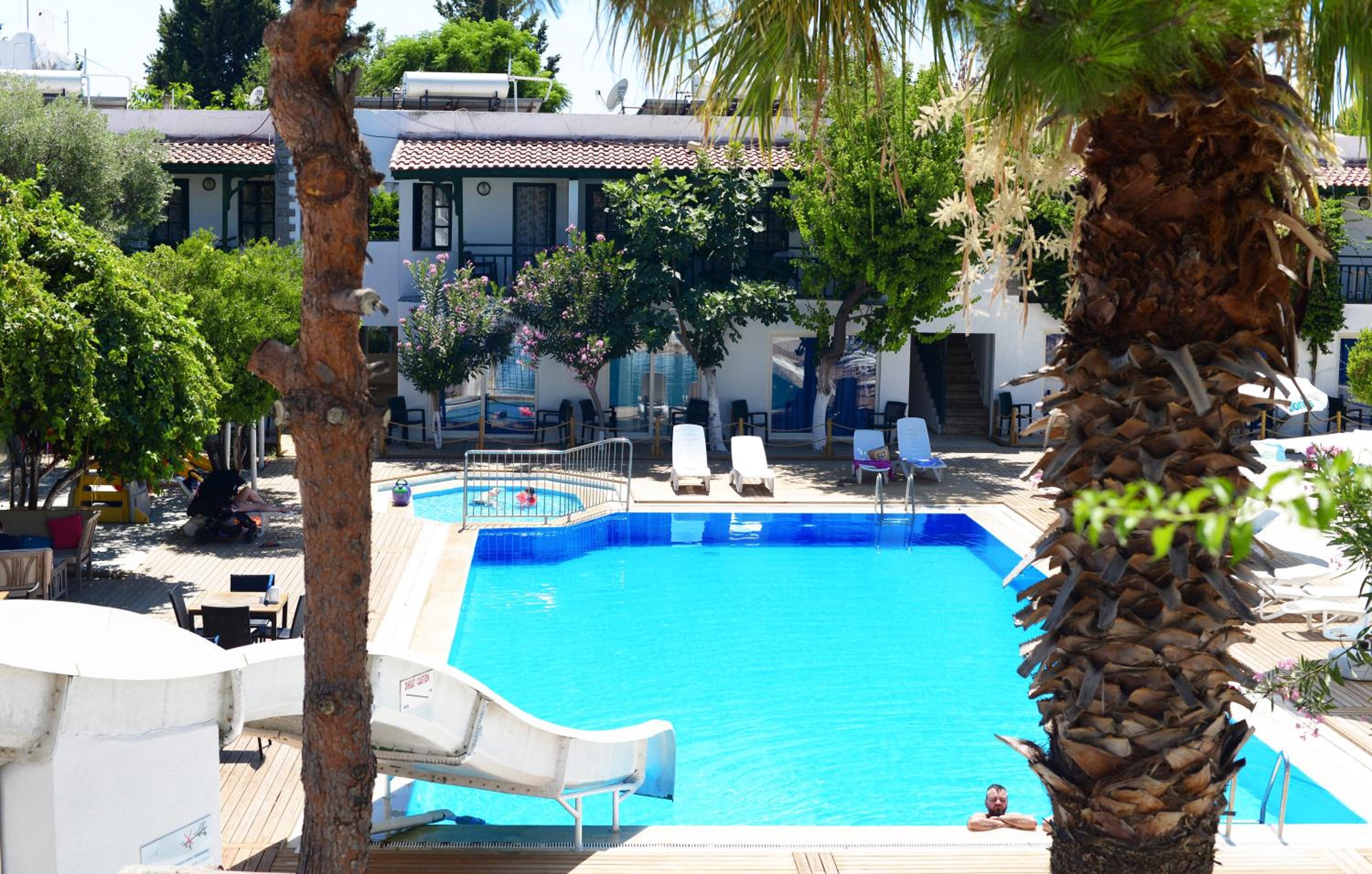 Otelin coğrafi durumu tartışılamaz, Bodrum'da her tarafa yürüme mesafesinde,kaldığımız odada bazı sorunlar vardı,söyledik giderdiler ama sorun kiraya verilen odaların eksikliğini müşteriler gelmeden gidermek.Temizlik konusunda diyecek hiç bir şey yok mükemmel,çalışanlar işlerini gereğince yapıyorlar.Odalrda buz dolabı ve kasa yok, resepsiyonda da kasa yok dediler,bu biraz sıkıntı yarattı,istedik ufak bir buzdolabı getirdiler,sarmaşıklar altında veya havuz kenarında kahvaltı yapmak hoştu doğrusu,bu meyanda kediler bizi hiç yalnız bırakmıyordu, birlikte kahvaltı yapıyorduk,harikaydılar,burada bütün personel arkadaşlara teşekkürler, kaldığımız 11 gün boyunca güzel bir tatilimiz oldu, tavsiye ederim